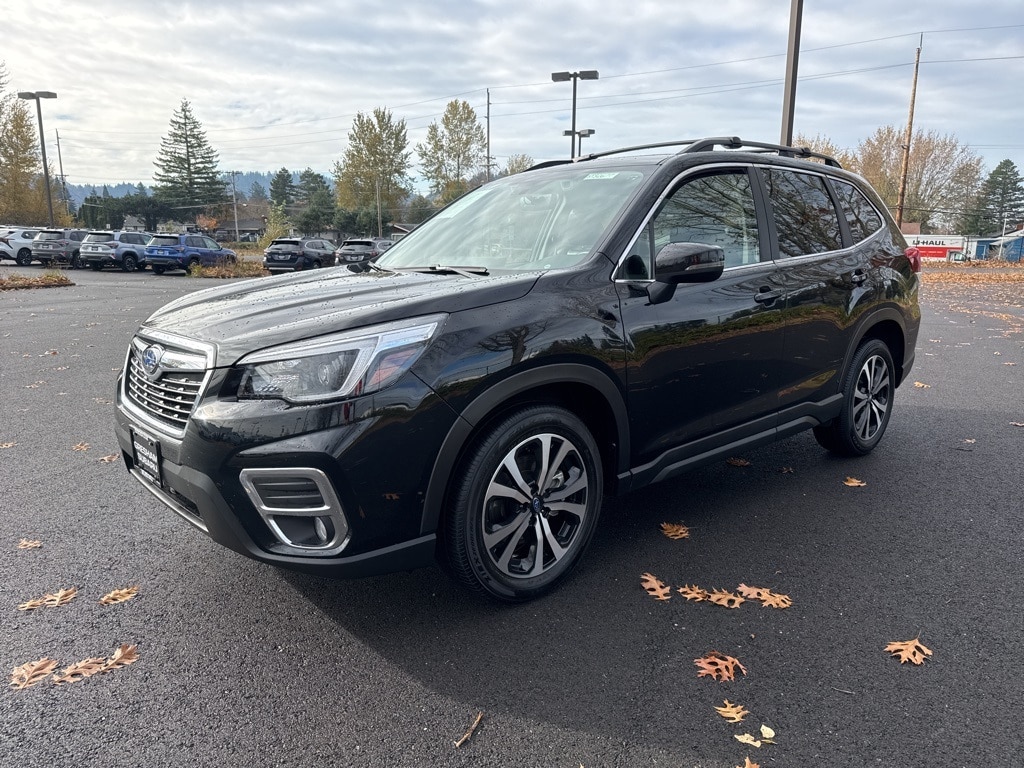 Priced below KBB Fair Purchase Price! Odometer is 25851 miles below market average! Certified. Subaru Certified Pre-Owned Certified, 3.70 Axle Ratio, 4-Wheel Disc Brakes, 6 Speakers, ABS brakes, Air Conditioning, Alloy wheels, AM/FM radio: SiriusXM, Auto High-beam Headlights, Automatic temperature control, Brake assist, Bumpers: body-color, CD player, Driver door bin, Driver vanity mirror, Dual front impact airbags, Dual front side impact airbags, Electronic Stability Control, Emergency communication system: STARLINK Safety and Security (Subscription Required), Exterior Parking Camera Rear, Four wheel independent suspension, Front anti-roll bar, Front Bucket Seats, Front Center Armrest, Front dual zone A/C, Front fog lights, Front reading lights, Fully automatic headlights, Heated door mirrors, Heated Front Bucket Seats, Heated front seats, Illuminated entry, Knee airbag, Leather Shift Knob, Low tire pressure warning, Occupant sensing airbag, Outside temperature display, Overhead airbag, Overhead console, Paddle-Shift Control Switches, Panic alarm, Passenger door bin, Passenger vanity mirror, Perforated Leather-Trimmed Upholstery, Power door mirrors, Power driver seat, Power Liftgate, Power moonroof: Panoramic, Power steering, Power windows, Radio data system, Radio: Subaru Starlink 8.0" Multimedia Plus System, Rear anti-roll bar, Rear seat center armrest, Rear window defroster, Rear window wiper, Remote keyless entry, Roof rack: rails only, Security system, Speed control, Speed-sensing steering, Split folding rear seat, Spoiler, STARLINK/Apple CarPlay/Android Auto, Steering wheel mounted audio controls, Tachometer, Telescoping steering wheel, Tilt steering wheel, Traction control, Trip computer, Turn signal indicator mirrors, Variably intermittent wipers, Wheels: 18" x 7.0J Black Machine Finish Alum Alloy. 2021 Subaru Forester Limited 4D Sport Utility 2.5L 4-Cylinder DOHC 16V VVT Lineartronic CVT AWD Crystal Black Silica Subaru Certified Pre-Owned Details:
