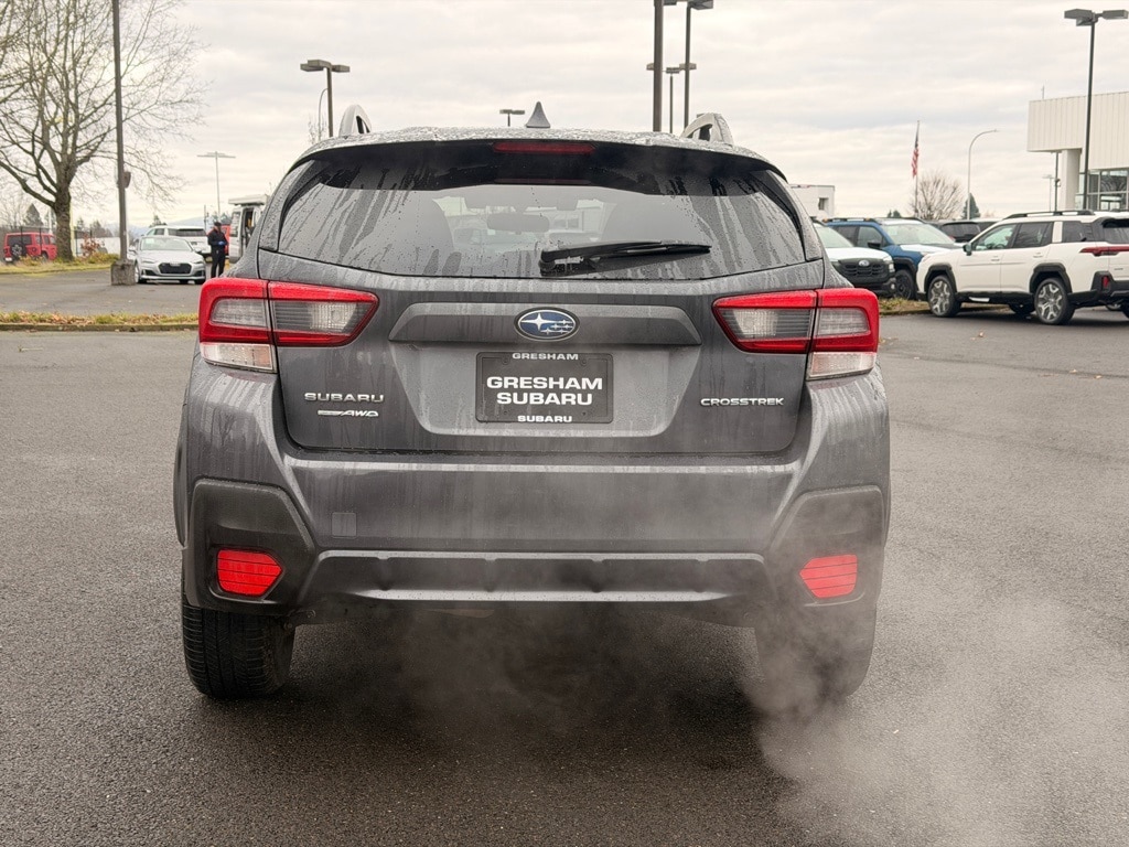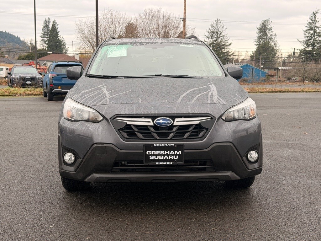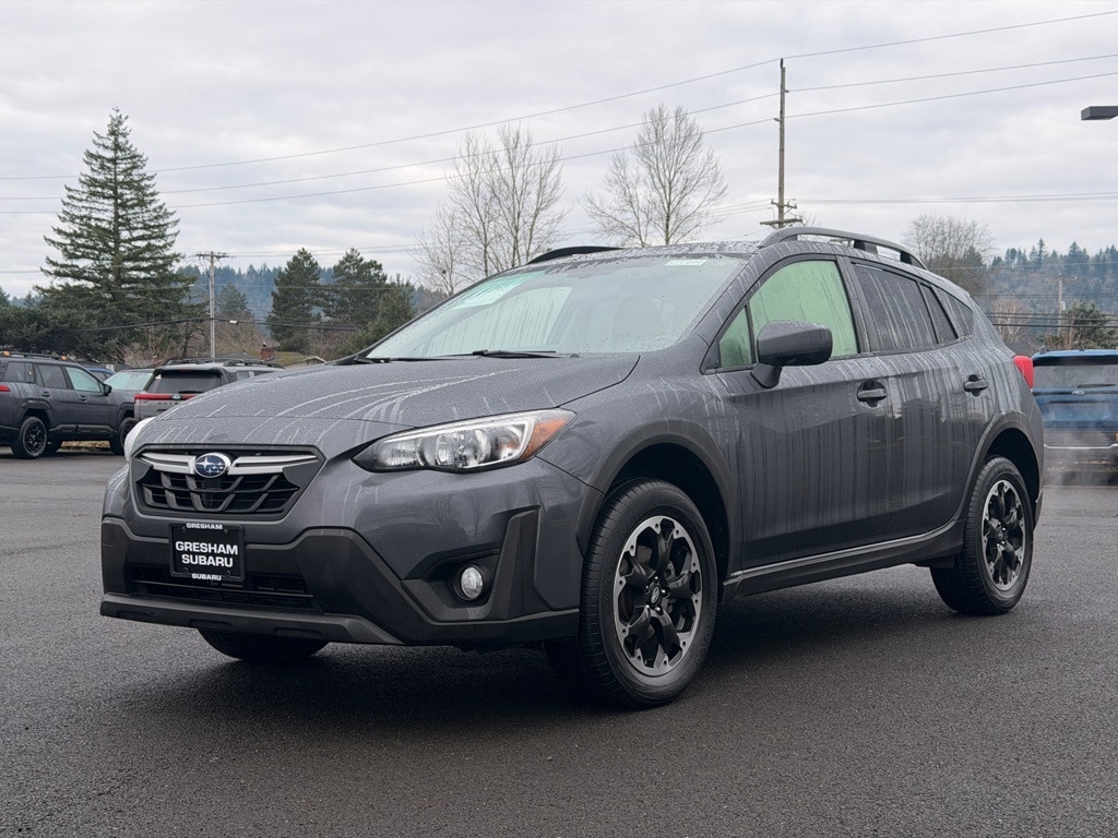 6-Way Power Driver's Seat, Blind Spot Detection w/Rear Cross-Traffic Alert, EyeSight System, Keyless Access w/Push-Button Start, Moonroof & BSD w/RCTA & Power Driver Seat, Power Moonroof, 3.90 Axle Ratio, 4-Wheel Disc Brakes, 6 Speakers, ABS brakes, Air Conditioning, Alloy wheels, AM/FM radio: SiriusXM, Anti-whiplash front head restraints, Automatic temperature control, Brake assist, Bumpers: body-color, CD player, Cloth Upholstery, Driver door bin, Driver vanity mirror, Dual front impact airbags, Dual front side impact airbags, Electronic Stability Control, Emergency communication system: STARLINK Safety and Security (Subscription Required), Exterior Parking Camera Rear, Four wheel independent suspension, Front anti-roll bar, Front Bucket Seats, Front Center Armrest, Front fog lights, Front reading lights, Fully automatic headlights, Heated door mirrors, Heated Front Bucket Seats, Heated front seats, Illuminated entry, Knee airbag, Leather Shift Knob, Low tire pressure warning, Occupant sensing airbag, Outside temperature display, Overhead airbag, Overhead console, Panic alarm, Passenger door bin, Passenger vanity mirror, Power door mirrors, Power steering, Power windows, Radio data system, Radio: Subaru STARLINK 6.5" Multimedia Plus System, Rear anti-roll bar, Rear window defroster, Rear window wiper, Remote keyless entry, Security system, Speed control, Speed-sensing steering, Split folding rear seat, Spoiler, STARLINK/Apple CarPlay/Android Auto, Steering wheel mounted audio controls, Tachometer, Telescoping steering wheel, Tilt steering wheel, Traction control, Trip computer, Variably intermittent wipers, Wheels: 17" x 7.0J Alum Alloy Blk w/Machine Finish, 6-Way Power Driver's Seat, Blind Spot Detection w/Rear Cross-Traffic Alert, EyeSight System, Keyless Access w/Push-Button Start, Moonroof & BSD w/RCTA & Power Driver Seat, Power Moonroof. 2023 Subaru Crosstrek Premium 4D Sport Utility 2.0L 4-Cylinder DOHC 16V Lineartronic CVT AWD Magnetite Gray Metallic Subaru Certified Pre-Owned Details: