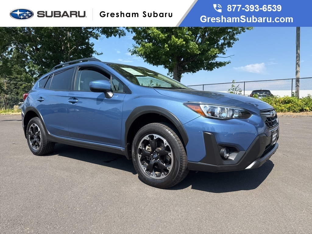 New Low Price! CARFAX One-Owner. Certified. ***ADAPTIVE CRUISE CONTROL***, ***ALL WHEEL DRIVE (AWD)***, ***EYESIGHT***, ***HEATED SEATS***, ***LOCAL TRADE***, **BLUETOOTH***, *MP3*, *REARVIEW BACK UP CAMERA*, Subaru Certified Pre-Owned Certified, 3.90 Axle Ratio, 4-Wheel Disc Brakes, 6 Speakers, ABS brakes, Air Conditioning, Alloy wheels, AM/FM radio: SiriusXM, Anti-whiplash front head restraints, Automatic temperature control, Brake assist, Bumpers: body-color, CD player, Cloth Upholstery, Driver door bin, Driver vanity mirror, Dual front impact airbags, Dual front side impact airbags, Electronic Stability Control, Emergency communication system: STARLINK Safety and Security (Subscription Required), Exterior Parking Camera Rear, Four wheel independent suspension, Front anti-roll bar, Front Bucket Seats, Front Center Armrest, Front fog lights, Front reading lights, Fully automatic headlights, Heated door mirrors, Heated Front Bucket Seats, Heated front seats, Illuminated entry, Knee airbag, Leather Shift Knob, Low tire pressure warning, Occupant sensing airbag, Outside temperature display, Overhead airbag, Overhead console, Panic alarm, Passenger door bin, Passenger vanity mirror, Power door mirrors, Power steering, Power windows, Radio data system, Radio: Subaru STARLINK 6.5" Multimedia Plus System, Rear anti-roll bar, Rear window defroster, Rear window wiper, Remote keyless entry, Security system, Speed control, Speed-sensing steering, Split folding rear seat, Spoiler, STARLINK/Apple CarPlay/Android Auto, Steering wheel mounted audio controls, Tachometer, Telescoping steering wheel, Tilt steering wheel, Traction control, Trip computer, Variably intermittent wipers, Wheels: 17" x 7.0J Alum Alloy Blk w/Machine Finish. 2023 Subaru Crosstrek Premium 4D Sport Utility 2.0L 4-Cylinder DOHC 16V Lineartronic CVT AWD Horizon Blue Pearl Subaru Certified Pre-Owned Details: