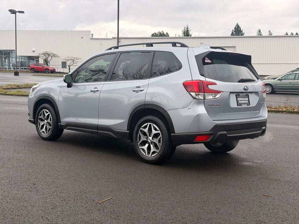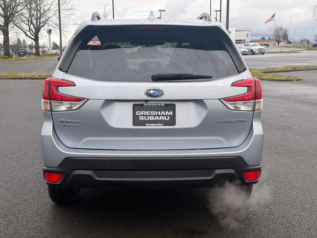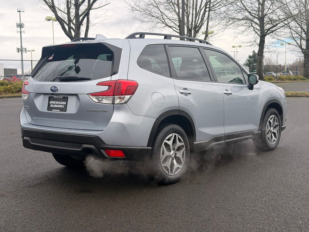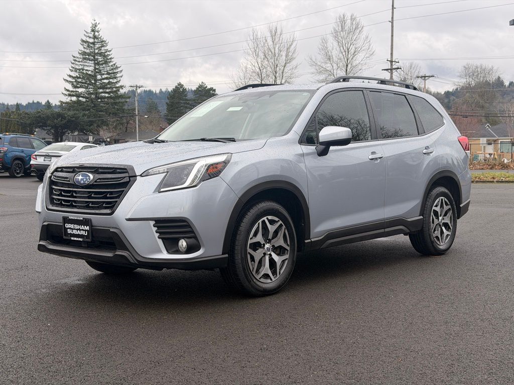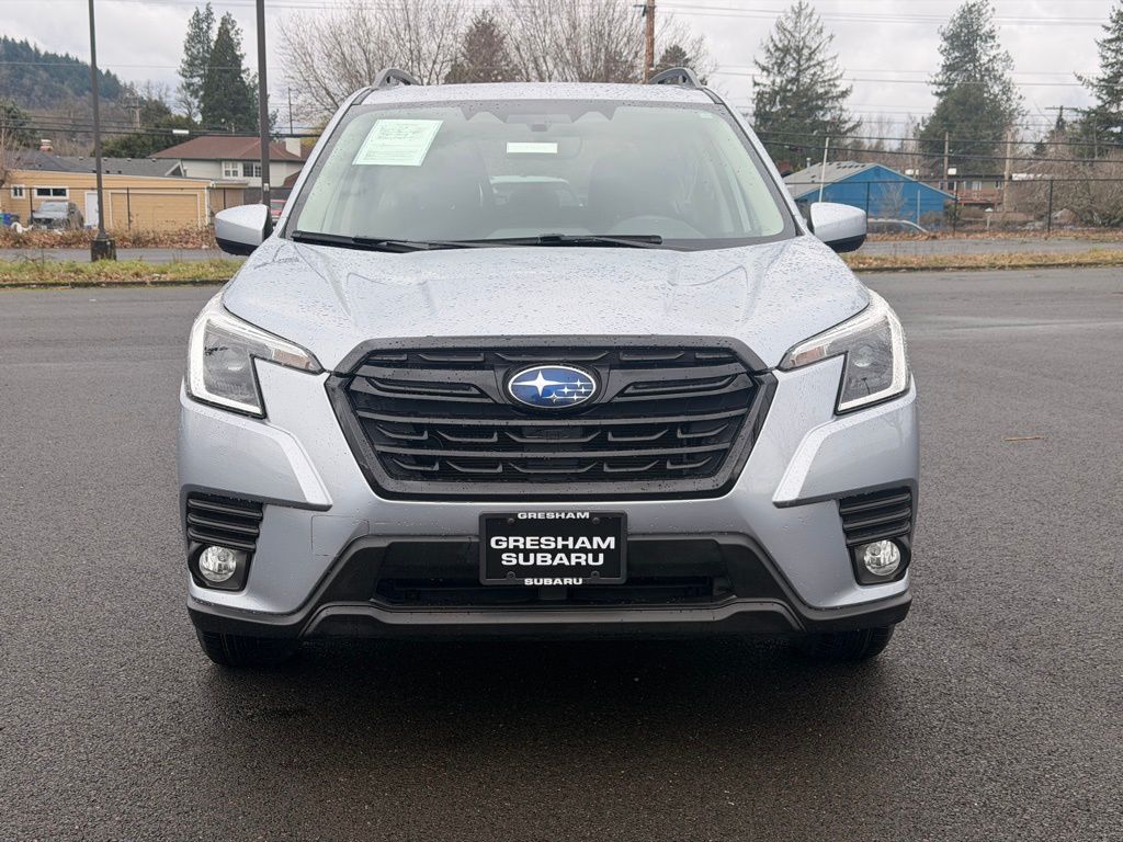 Blind Spot Detection w/RCTA & Power Rear Gate, Blind-Spot Detection (BSD), Driver's Seatback Divided Pocket, Dual USB Charge Ports, EyeSight System, Multi-Function High Grade Display, Power Rear Gate, 3.70 Axle Ratio, 4-Wheel Disc Brakes, 6 Speakers, ABS brakes, Air Conditioning, Alloy wheels, AM/FM radio: SiriusXM, Anti-whiplash front head restraints, Auto High-beam Headlights, Automatic temperature control, Brake assist, Bumpers: body-color, CD player, Driver door bin, Driver vanity mirror, Dual front impact airbags, Dual front side impact airbags, Electronic Stability Control, Emergency communication system: STARLINK Safety and Security (Subscription Required), Exterior Parking Camera Rear, Four wheel independent suspension, Front anti-roll bar, Front Bucket Seats, Front Center Armrest, Front fog lights, Front reading lights, Fully automatic headlights, Heated door mirrors, Heated Front Bucket Seats, Heated front seats, Illuminated entry, Knee airbag, Low tire pressure warning, Occupant sensing airbag, Outside temperature display, Overhead airbag, Overhead console, Panic alarm, Passenger door bin, Passenger vanity mirror, Power door mirrors, Power driver seat, Power moonroof: Panoramic, Power steering, Power windows, Premium Cloth Upholstery, Radio data system, Radio: Subaru Starlink 6.5" Multimedia Plus System, Rear anti-roll bar, Rear seat center armrest, Rear window defroster, Rear window wiper, Remote keyless entry, Roof rack: rails only, Security system, Speed control, Speed-sensing steering, Split folding rear seat, Spoiler, STARLINK/Apple CarPlay/Android Auto, Steering wheel mounted audio controls, Tachometer, Telescoping steering wheel, Tilt steering wheel, Traction control, Trip computer, Variably intermittent wipers, Wheels: 17" x 7.0 J Black Machine Finish Alloy, Blind Spot Detection w/RCTA & Power Rear Gate, Blind-Spot Detection (BSD), Driver's Seatback Divided Pocket, Dual USB Charge Ports, EyeSight System, Multi-Function High Grade Display, Power Rear Gate. 2023 Subaru Forester Premium 4D Sport Utility 2.5L 4-Cylinder DOHC 16V Lineartronic CVT AWD Ice Silver Metallic Subaru Certified Pre-Owned Details: