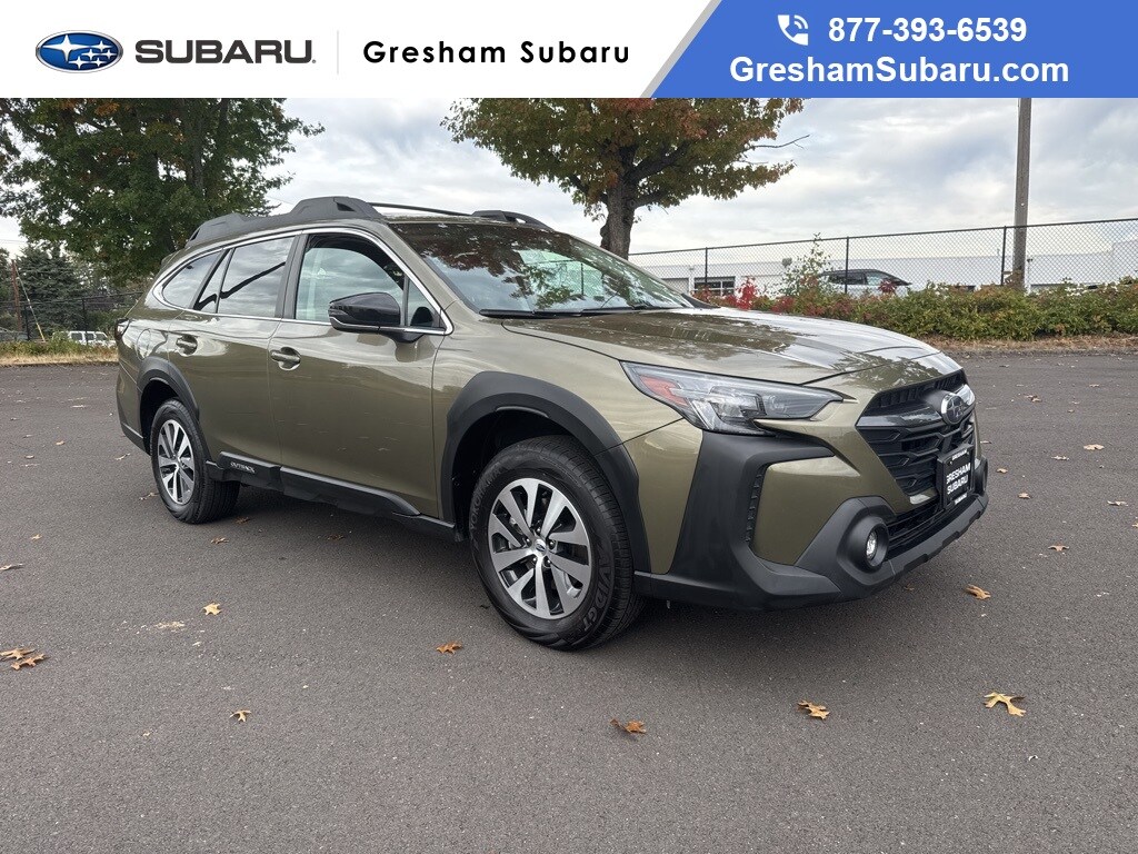Blind Spot Detection (BSD), BSD & RCTA & Keyless Access & Push Button Start, Hands-Free Power Rear Gate, Keyless Access w/Push Button Start, Power Moonroof, Radio: Subaru STARLINK 11.6" Multimedia Nav System, Rear Cross Traffic Alert (RCTA), 3.90 Axle Ratio, 4-Wheel Disc Brakes, 6 Speakers, ABS brakes, Air Conditioning, All-Weather Floor Liners, Alloy wheels, AM/FM radio: SiriusXM, Auto High-beam Headlights, Automatic temperature control, Brake assist, Bumpers: body-color, Cloth Upholstery, Driver door bin, Driver vanity mirror, Dual front impact airbags, Dual front side impact airbags, Electronic Stability Control, Emergency communication system: STARLINK Safety Plus (3-year free trial), Exterior Parking Camera Rear, Four wheel independent suspension, Front anti-roll bar, Front Bucket Seats, Front Center Armrest w/Storage, Front dual zone A/C, Front fog lights, Front reading lights, Fully automatic headlights, Heated door mirrors, Heated Front Bucket Seats, Heated front seats, Illuminated entry, Knee airbag, Leather Shift Knob, Leather steering wheel, Low tire pressure warning, Occupant sensing airbag, Outside temperature display, Overhead airbag, Overhead console, Panic alarm, Passenger door bin, Passenger vanity mirror, Power door mirrors, Power driver seat, Power steering, Power windows, Radio: Subaru STARLINK 11.6" Multimedia Plus Sys, Rear anti-roll bar, Rear Bumper Cover, Rear seat center armrest, Rear window defroster, Rear window wiper, Remote keyless entry, Roof rack, Security system, Speed control, Speed-sensing steering, Split folding rear seat, Spoiler, Steering wheel mounted audio controls, Steering Wheel Paddle Shift Control Switches, Tachometer, Telescoping steering wheel, Tilt steering wheel, Traction control, Trip computer, Turn signal indicator mirrors, Variably intermittent wipers, Wheels: 17" x 7J Black Aluminum Alloy, Blind Spot Detection (BSD), BSD & RCTA & Keyless Access & Push Button Start, Hands-Free Power Rear Gate, Keyless Access w/Push Button Start, Power Moonroof, Radio: Subaru STARLINK 11.6" Multimedia Nav System, Rear Cross Traffic Alert (RCTA). 2023 Subaru Outback Premium 4D Sport Utility 2.5L 4-Cylinder DOHC 16V CVT Lineartronic AWD Green Metallic Subaru Certified Pre-Owned Details: