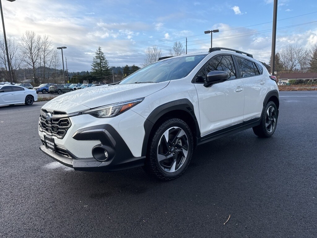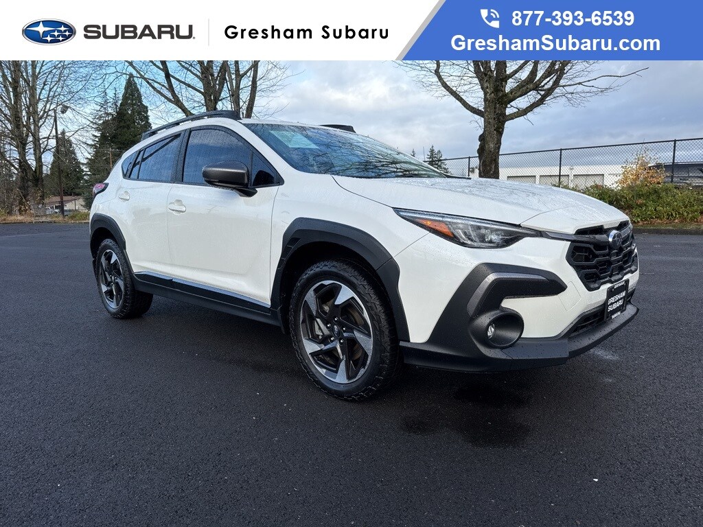 Recent Arrival! CARFAX One-Owner. Certified. Subaru Certified Pre-Owned Certified, 3.70 Axle Ratio, 4-Wheel Disc Brakes, 6 Speakers, ABS brakes, Air Conditioning, Alloy wheels, AM/FM radio: SiriusXM, Anti-whiplash front head restraints, Auto High-beam Headlights, Automatic temperature control, Brake assist, Bumpers: body-color, Driver door bin, Driver vanity mirror, Dual front impact airbags, Dual front side impact airbags, Electronic Stability Control, Emergency communication system: STARLINK Safety and Security (Subscription Required), Exterior Parking Camera Rear, Four wheel independent suspension, Front anti-roll bar, Front Bucket Seats, Front Center Armrest, Front dual zone A/C, Front fog lights, Front reading lights, Fully automatic headlights, Heated door mirrors, Heated Front Bucket Seats, Heated front seats, Illuminated entry, Knee airbag, Leather Shift Knob, Leather-Trimmed Upholstery, Low tire pressure warning, Occupant sensing airbag, Outside temperature display, Overhead airbag, Overhead console, Panic alarm, Passenger door bin, Passenger vanity mirror, Power door mirrors, Power driver seat, Power steering, Power windows, Radio data system, Radio: Subaru STARLINK 11.6" Multimedia Plus Sys, Rear anti-roll bar, Rear seat center armrest, Rear window defroster, Rear window wiper, Remote keyless entry, Security system, Speed control, Speed-sensing steering, Split folding rear seat, Spoiler, STARLINK/Apple CarPlay/Android Auto, Steering wheel mounted audio controls, Tachometer, Telescoping steering wheel, Tilt steering wheel, Traction control, Trip computer, Turn signal indicator mirrors, Variably intermittent wipers, Wheels: 18" x 7.0J Dark Gray Aluminum Alloy. 2024 Subaru Crosstrek Limited 4D Sport Utility 2.5L 4-Cylinder DOHC 16V Lineartronic CVT AWD Crystal White Pearl Subaru Certified Pre-Owned Details: