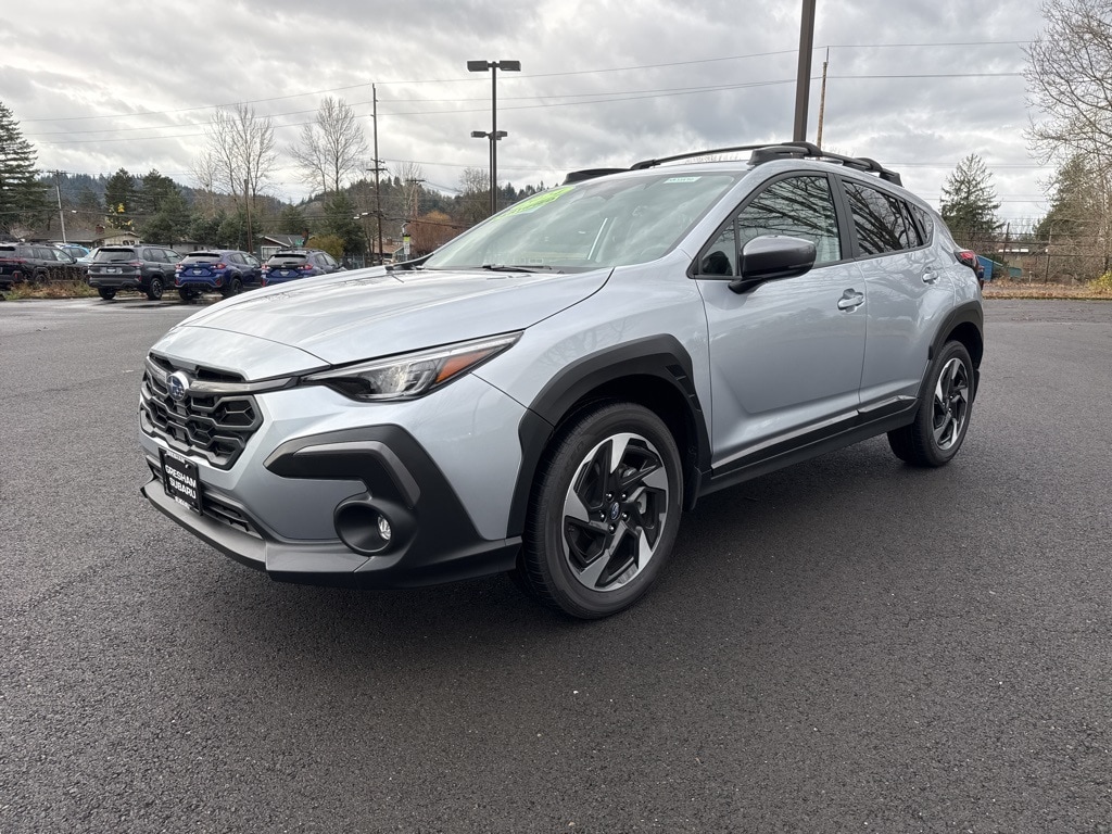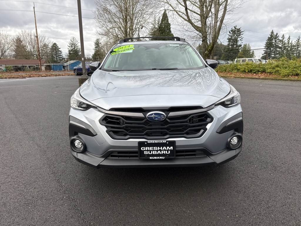 Recent Arrival! Odometer is 10638 miles below market average! CARFAX One-Owner. Certified. Subaru Certified Pre-Owned Certified, Active Cruise Control, All-Weather Floor Liners, Auto-Dimming Exterior Mirror w/Approach Light, Auto-Dimming Mirror w/Compass & HomeLink, Automatic temperature control, harman/kardon Audio & Power Moonroof & Navigation, harman/kardon Surround Sound Speaker System, LED Upgrade, Navigation System, Popular Package #3A, Power Moonroof, Radio: Subaru STARLINK 11.6" Multimedia Nav System, Rear Bumper Cover, Rear Seatback Protector, 3.70 Axle Ratio, 4-Wheel Disc Brakes, 6 Speakers, ABS brakes, Aero Crossbar Set, Air Conditioning, Alloy wheels, AM/FM radio: SiriusXM, Anti-whiplash front head restraints, Auto High-beam Headlights, Brake assist, Bumpers: body-color, Driver door bin, Driver vanity mirror, Dual front impact airbags, Dual front side impact airbags, Electronic Stability Control, Emergency communication system: STARLINK Safety and Security (Subscription Required), Exterior Parking Camera Rear, Four wheel independent suspension, Front anti-roll bar, Front Bucket Seats, Front Center Armrest, Front dual zone A/C, Front fog lights, Front reading lights, Fully automatic headlights, Heated door mirrors, Heated Front Bucket Seats, Heated front seats, Illuminated entry, Knee airbag, Leather Shift Knob, Leather-Trimmed Upholstery, Low tire pressure warning, Occupant sensing airbag, Outside temperature display, Overhead airbag, Overhead console, Panic alarm, Passenger door bin, Passenger vanity mirror, Power door mirrors, Power driver seat, Power steering, Power windows, Radio data system, Radio: Subaru STARLINK 11.6" Multimedia Plus Sys, Rear anti-roll bar, Rear seat center armrest, Rear window defroster, Rear window wiper, Remote keyless entry, Security system, Speed control, Speed-sensing steering, Splash Guards, Split folding rear seat, Spoiler, STARLINK/Apple CarPlay/Android Auto, Steering wheel mounted audio controls, Tachometer, Telescoping steering wheel, Tilt steering wheel, Traction control, Trip computer, Turn signal indicator mirrors, Variably intermittent wipers, Wheels: 18" x 7.0J Dark Gray Aluminum Alloy, Active Cruise Control, All-Weather Floor Liners, Auto-Dimming Exterior Mirror w/Approach Light, Auto-Dimming Mirror w/Compass & HomeLink, Automatic temperature control, harman/kardon Audio & Power Moonroof & Navigation, harman/kardon Surround Sound Speaker System, LED Upgrade, Navigation System, Popular Package #3A, Power Moonroof, Radio: Subaru STARLINK 11.6" Multimedia Nav System, Rear Bumper Cover, Rear Seatback Protector. 2024 Subaru Crosstrek Limited 4D Sport Utility 2.5L 4-Cylinder DOHC 16V Lineartronic CVT AWD Ice Silver Metallic Subaru Certified Pre-Owned Details: