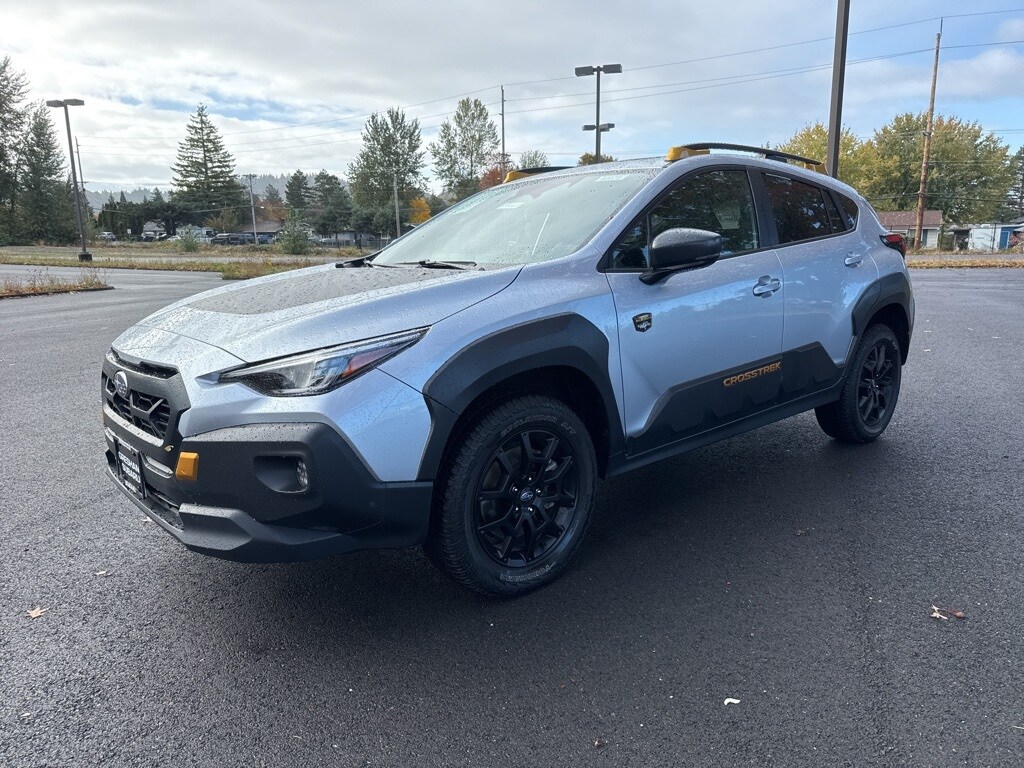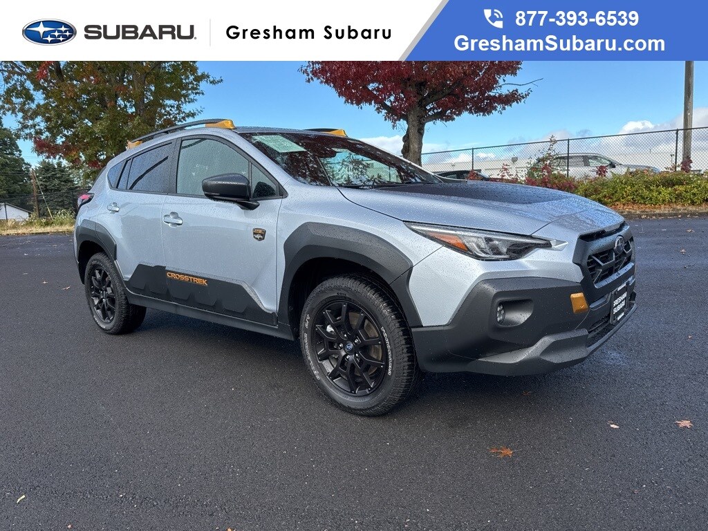 Recent Arrival! Odometer is 2036 miles below market average! CARFAX One-Owner. Certified. Subaru Certified Pre-Owned Certified, 4-Wheel Disc Brakes, 4.11 Axle Ratio, 6 Speakers, ABS brakes, Air Conditioning, Alloy wheels, AM/FM radio: SiriusXM, Anti-whiplash front head restraints, Auto High-beam Headlights, Automatic temperature control, Brake assist, Bumpers: body-color, Driver door bin, Driver vanity mirror, Dual front impact airbags, Dual front side impact airbags, Electronic Stability Control, Emergency communication system: STARLINK Safety and Security (Subscription Required), Exterior Parking Camera Rear, Four wheel independent suspension, Front anti-roll bar, Front Bucket Seats, Front Center Armrest, Front dual zone A/C, Front fog lights, Front reading lights, Fully automatic headlights, Heated door mirrors, Heated Front Bucket Seats, Heated front seats, Illuminated entry, Knee airbag, Leather Shift Knob, Low tire pressure warning, Occupant sensing airbag, Outside temperature display, Overhead airbag, Overhead console, Panic alarm, Passenger door bin, Passenger vanity mirror, Power door mirrors, Power steering, Power windows, Radio data system, Radio: Subaru STARLINK 11.6" Multimedia Plus Sys, Rear anti-roll bar, Rear seat center armrest, Rear window defroster, Rear window wiper, Remote keyless entry, Security system, Speed control, Speed-sensing steering, Split folding rear seat, Spoiler, STARLINK/Apple CarPlay/Android Auto, Steering wheel mounted audio controls, Tachometer, Telescoping steering wheel, Tilt steering wheel, Traction control, Trip computer, Turn signal indicator mirrors, Variably intermittent wipers, Wheels: 17" x 7.0J Matte Black Aluminum Alloy, Wilderness StarTex Upholstery. 2024 Subaru Crosstrek Wilderness 4D Sport Utility 2.5L 4-Cylinder DOHC 16V Lineartronic CVT AWD Ice Silver Metallic Subaru Certified Pre-Owned Details: