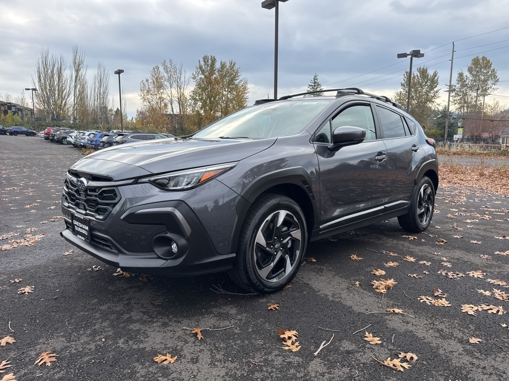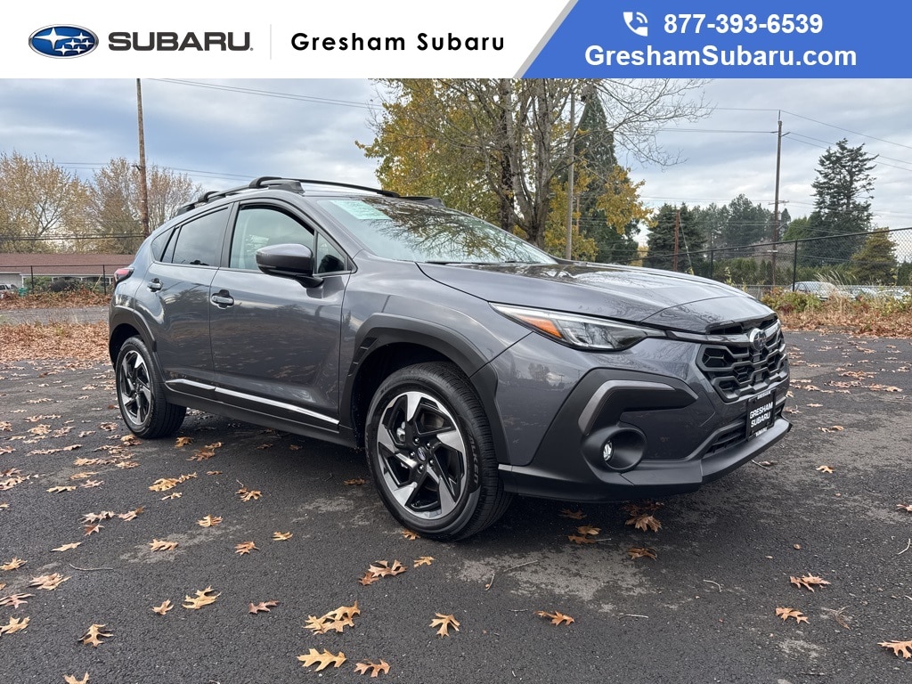 Recent Arrival! CARFAX One-Owner. Certified. Subaru Certified Pre-Owned Certified, 3.70 Axle Ratio, 4-Wheel Disc Brakes, 6 Speakers, ABS brakes, Air Conditioning, Alloy wheels, AM/FM radio: SiriusXM, Anti-whiplash front head restraints, Auto High-beam Headlights, Automatic temperature control, Brake assist, Bumpers: body-color, Driver door bin, Driver vanity mirror, Dual front impact airbags, Dual front side impact airbags, Electronic Stability Control, Emergency communication system: STARLINK Safety and Security (Subscription Required), Exterior Parking Camera Rear, Four wheel independent suspension, Front anti-roll bar, Front Bucket Seats, Front Center Armrest, Front dual zone A/C, Front fog lights, Front reading lights, Fully automatic headlights, Heated door mirrors, Heated Front Bucket Seats, Heated front seats, Illuminated entry, Knee airbag, Leather Shift Knob, Leather-Trimmed Upholstery, Low tire pressure warning, Occupant sensing airbag, Outside temperature display, Overhead airbag, Overhead console, Panic alarm, Passenger door bin, Passenger vanity mirror, Power door mirrors, Power driver seat, Power steering, Power windows, Radio data system, Radio: Subaru STARLINK 11.6" Multimedia Plus Sys, Rear anti-roll bar, Rear seat center armrest, Rear window defroster, Rear window wiper, Remote keyless entry, Security system, Speed control, Speed-sensing steering, Split folding rear seat, Spoiler, STARLINK/Apple CarPlay/Android Auto, Steering wheel mounted audio controls, Tachometer, Telescoping steering wheel, Tilt steering wheel, Traction control, Trip computer, Turn signal indicator mirrors, Variably intermittent wipers, Wheels: 18" x 7.0J Dark Gray Aluminum Alloy. 2024 Subaru Crosstrek Limited 4D Sport Utility 2.5L 4-Cylinder DOHC 16V Lineartronic CVT AWD Magnetite Gray Metallic Subaru Certified Pre-Owned Details: