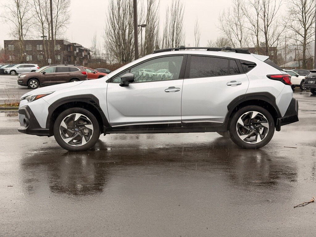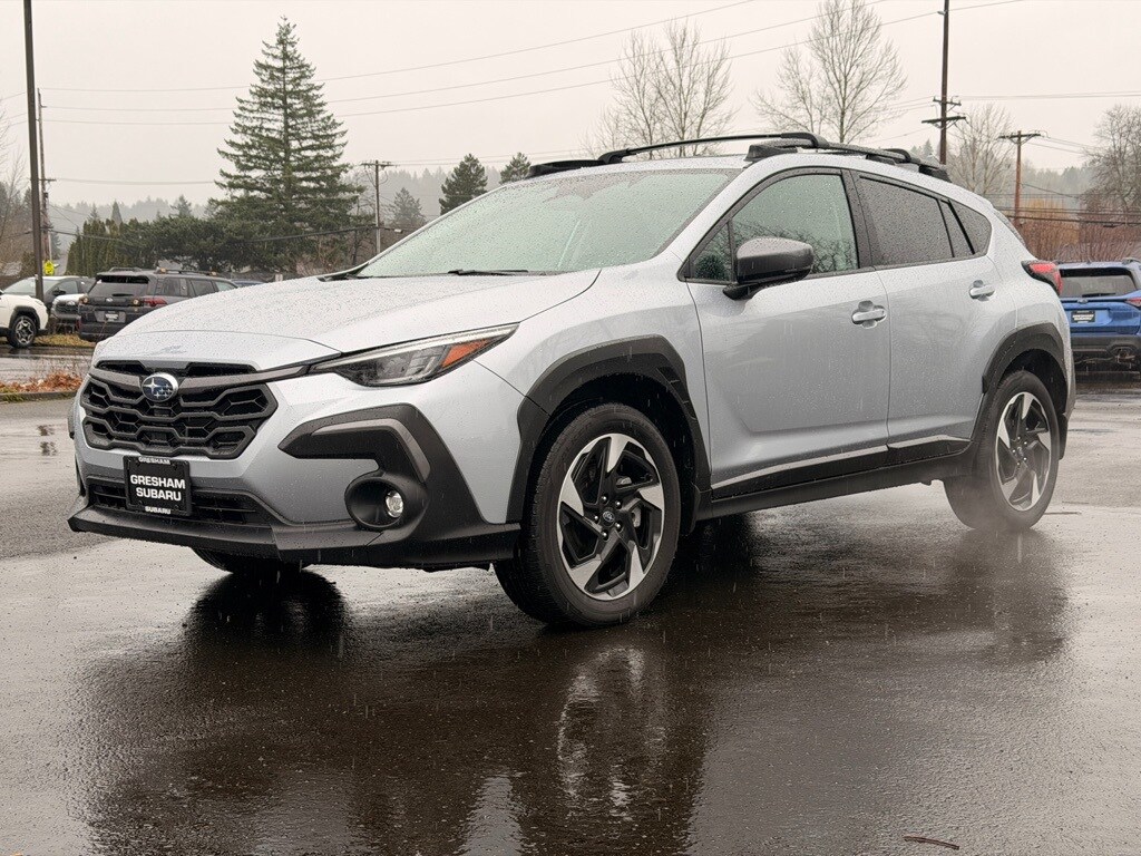 All-Weather Floor Liners, Auto-Dimming Exterior Mirror w/Approach Light, Auto-Dimming Mirror w/Compass & HomeLink, harman/kardon Audio & Power Moonroof & Navigation, harman/kardon Surround Sound Speaker System, LED Upgrade, Popular Package #3A, Power Moonroof, Radio: Subaru STARLINK 11.6" Multimedia Nav System, Rear Bumper Cover, Rear Seatback Protector, 3.70 Axle Ratio, 4-Wheel Disc Brakes, 6 Speakers, ABS brakes, Air Conditioning, Alloy wheels, AM/FM radio: SiriusXM, Anti-whiplash front head restraints, Auto High-beam Headlights, Automatic temperature control, Brake assist, Bumpers: body-color, Driver door bin, Driver vanity mirror, Dual front impact airbags, Dual front side impact airbags, Electronic Stability Control, Emergency communication system: STARLINK Safety and Security (Subscription Required), Exterior Parking Camera Rear, Four wheel independent suspension, Front anti-roll bar, Front Bucket Seats, Front Center Armrest, Front dual zone A/C, Front fog lights, Front reading lights, Fully automatic headlights, Heated door mirrors, Heated Front Bucket Seats, Heated front seats, Illuminated entry, Knee airbag, Leather Shift Knob, Leather-Trimmed Upholstery, Low tire pressure warning, Occupant sensing airbag, Outside temperature display, Overhead airbag, Overhead console, Panic alarm, Passenger door bin, Passenger vanity mirror, Power door mirrors, Power driver seat, Power steering, Power windows, Radio data system, Radio: Subaru STARLINK 11.6" Multimedia Plus Sys, Rear anti-roll bar, Rear seat center armrest, Rear window defroster, Rear window wiper, Remote keyless entry, Security system, Speed control, Speed-sensing steering, Split folding rear seat, Spoiler, STARLINK/Apple CarPlay/Android Auto, Steering wheel mounted audio controls, Tachometer, Telescoping steering wheel, Tilt steering wheel, Traction control, Trip computer, Turn signal indicator mirrors, Variably intermittent wipers, Wheels: 18" x 7.0J Dark Gray Aluminum Alloy, All-Weather Floor Liners, Auto-Dimming Exterior Mirror w/Approach Light, Auto-Dimming Mirror w/Compass & HomeLink, harman/kardon Audio & Power Moonroof & Navigation, harman/kardon Surround Sound Speaker System, LED Upgrade, Popular Package #3A, Power Moonroof, Radio: Subaru STARLINK 11.6" Multimedia Nav System, Rear Bumper Cover, Rear Seatback Protector. 2024 Subaru Crosstrek Limited 4D Sport Utility 2.5L 4-Cylinder DOHC 16V Lineartronic CVT AWD Silver Subaru Certified Pre-Owned Details: