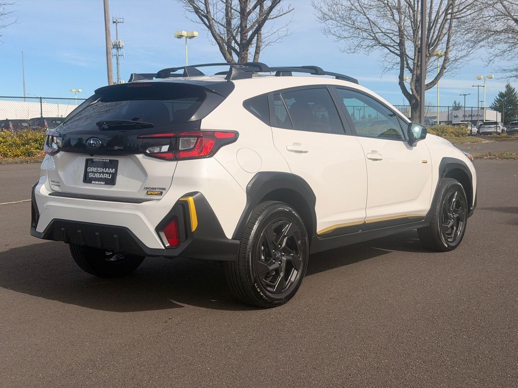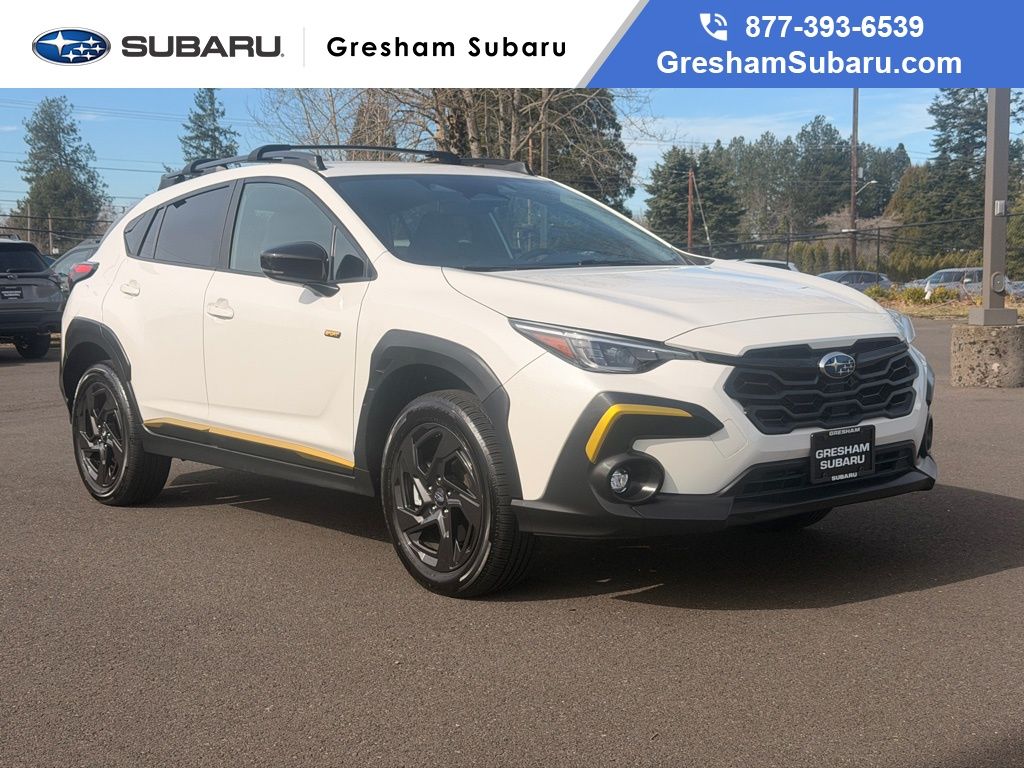 Odometer is 3938 miles below market average! CARFAX One-Owner. Certified. Subaru Certified Pre-Owned Certified, 3.70 Axle Ratio, 4-Wheel Disc Brakes, 6 Speakers, ABS brakes, Air Conditioning, Alloy wheels, AM/FM radio: SiriusXM, Anti-whiplash front head restraints, Auto High-beam Headlights, Automatic temperature control, Brake assist, Bumpers: body-color, Driver door bin, Driver vanity mirror, Dual front impact airbags, Dual front side impact airbags, Electronic Stability Control, Emergency communication system: STARLINK Safety and Security (Subscription Required), Exterior Parking Camera Rear, Four wheel independent suspension, Front anti-roll bar, Front Bucket Seats, Front Center Armrest, Front dual zone A/C, Front fog lights, Front reading lights, Fully automatic headlights, Heated door mirrors, Heated Front Bucket Seats, Heated front seats, Illuminated entry, Knee airbag, Leather Shift Knob, Low tire pressure warning, Occupant sensing airbag, Outside temperature display, Overhead airbag, Overhead console, Panic alarm, Passenger door bin, Passenger vanity mirror, Power door mirrors, Power steering, Power windows, Radio data system, Radio: Subaru STARLINK 11.6" Multimedia Plus Sys, Rear anti-roll bar, Rear seat center armrest, Rear window defroster, Rear window wiper, Remote keyless entry, Security system, Speed control, Speed-sensing steering, Split folding rear seat, Spoiler, Sport Cloth Upholstery, STARLINK/Apple CarPlay/Android Auto, Steering wheel mounted audio controls, Tachometer, Telescoping steering wheel, Tilt steering wheel, Traction control, Trip computer, Turn signal indicator mirrors, Variably intermittent wipers, Wheels: 18" x 7.0J Dark Gray Aluminum Alloy. 2024 Subaru Crosstrek Sport 4D Sport Utility 2.5L 4-Cylinder DOHC 16V Lineartronic CVT AWD Crystal White Pearl Subaru Certified Pre-Owned Details: