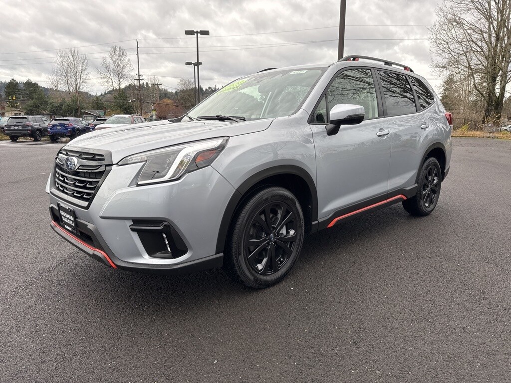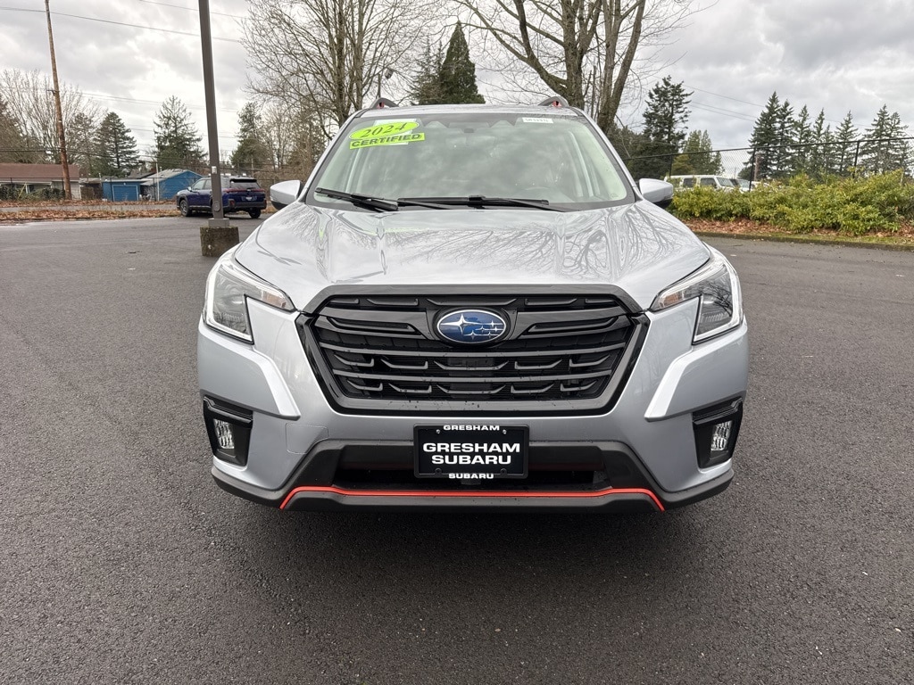 Recent Arrival! Odometer is 16448 miles below market average! Certified. Subaru Certified Pre-Owned Certified, 8" Audio w/harman/kardon & RAB & Power Rear Gate, Active Cruise Control, Automatic temperature control, harman/kardon 9-Speaker Audio System, Power moonroof: Panoramic, Power Rear Gate, Radio: Subaru STARLINK 8.0" Multimedia Plus System, Reverse Automatic Braking System (RAB), 3.70 Axle Ratio, 4-Wheel Disc Brakes, 6 Speakers, ABS brakes, Air Conditioning, Alloy wheels, AM/FM radio: SiriusXM, Anti-whiplash front head restraints, Auto High-beam Headlights, Auto-Dimming Exterior Mirror w/Approach Light, Auto-Dimming Mirror w/Compass & HomeLink, Brake assist, Bumpers: body-color, Door Scuff Protector - Front, Driver door bin, Driver vanity mirror, Dual front impact airbags, Dual front side impact airbags, Electronic Stability Control, Emergency communication system: STARLINK Safety and Security (Subscription Required), Exterior Parking Camera Rear, Four wheel independent suspension, Front anti-roll bar, Front Bucket Seats, Front Center Armrest, Front fog lights, Front reading lights, Fully automatic headlights, Heated door mirrors, Heated Front Bucket Seats, Heated front seats, Illuminated entry, Knee airbag, Leather Shift Knob, Leather steering wheel, LED Upgrade, Low tire pressure warning, Occupant sensing airbag, Outside temperature display, Overhead airbag, Overhead console, Panic alarm, Passenger door bin, Passenger vanity mirror, Power door mirrors, Power driver seat, Power steering, Power windows, Radio data system, Radio: Subaru STARLINK 6.5" Multimedia Plus System, Rear anti-roll bar, Rear seat center armrest, Rear window defroster, Rear window wiper, Remote keyless entry, Roof rack: rails only, Security system, Speed control, Speed-sensing steering, Split folding rear seat, Spoiler, Sport Cloth Upholstery, STARLINK/Apple CarPlay/Android Auto, Steering wheel mounted audio controls, Tachometer, Telescoping steering wheel, Tilt steering wheel, Traction control, Trip computer, Turn signal indicator mirrors, Variably intermittent wipers, Wheels: 18" x 7.0 J Black Finish Aluminum-Alloy, 8" Audio w/harman/kardon & RAB & Power Rear Gate, Active Cruise Control, Automatic temperature control, harman/kardon 9-Speaker Audio System, Power moonroof: Panoramic, Power Rear Gate, Radio: Subaru STARLINK 8.0" Multimedia Plus System, Reverse Automatic Braking System (RAB). 2024 Subaru Forester Sport 4D Sport Utility 2.5L 4-Cylinder DOHC 16V Lineartronic CVT AWD Ice Silver Metallic Subaru Certified Pre-Owned Details:
