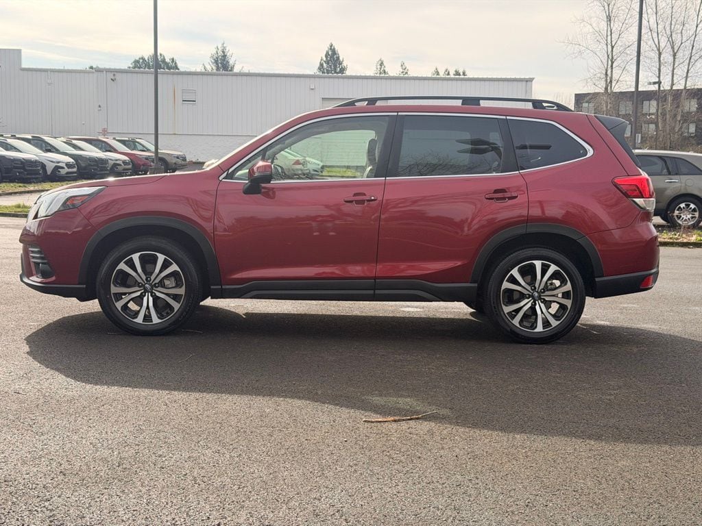 Odometer is 17406 miles below market average! CARFAX One-Owner. Certified. Subaru Certified Pre-Owned Certified, 3.70 Axle Ratio, 4-Wheel Disc Brakes, 6 Speakers, ABS brakes, Air Conditioning, Alloy wheels, AM/FM radio: SiriusXM, Anti-whiplash front head restraints, Auto High-beam Headlights, Automatic temperature control, Brake assist, Bumpers: body-color, Driver door bin, Driver vanity mirror, Dual front impact airbags, Dual front side impact airbags, Electronic Stability Control, Emergency communication system: STARLINK Safety and Security (Subscription Required), Exterior Parking Camera Rear, Four wheel independent suspension, Front anti-roll bar, Front Bucket Seats, Front Center Armrest, Front dual zone A/C, Front fog lights, Front reading lights, Fully automatic headlights, Heated door mirrors, Heated Front Bucket Seats, Heated front seats, Illuminated entry, Knee airbag, Leather Shift Knob, Leather steering wheel, Low tire pressure warning, Occupant sensing airbag, Outside temperature display, Overhead airbag, Overhead console, Panic alarm, Passenger door bin, Passenger vanity mirror, Perforated Leather-Trimmed Upholstery, Power door mirrors, Power driver seat, Power Liftgate, Power moonroof: Panoramic, Power steering, Power windows, Radio data system, Radio: Subaru STARLINK 8.0" Multimedia Plus System, Rear anti-roll bar, Rear seat center armrest, Rear window defroster, Rear window wiper, Remote keyless entry, Roof rack: rails only, Security system, Speed control, Speed-sensing steering, Split folding rear seat, Spoiler, STARLINK/Apple CarPlay/Android Auto, Steering wheel mounted audio controls, Tachometer, Telescoping steering wheel, Tilt steering wheel, Traction control, Trip computer, Turn signal indicator mirrors, Variably intermittent wipers, Wheels: 18" x 7.0 J Black Machine Finish Alloy. 2024 Subaru Forester Limited 4D Sport Utility 2.5L 4-Cylinder DOHC 16V Lineartronic CVT AWD Crimson Red Pearl Subaru Certified Pre-Owned Details: