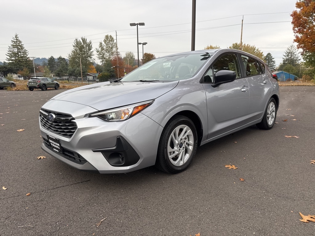 Recent Arrival! CARFAX One-Owner. Certified. Subaru Certified Pre-Owned Certified, 4 Speakers, 4-Wheel Disc Brakes, ABS brakes, Air Conditioning, AM/FM radio: SiriusXM, Anti-whiplash front head restraints, Auto High-beam Headlights, Automatic temperature control, Brake assist, Bumpers: body-color, Cloth Upholstery, Driver door bin, Driver vanity mirror, Dual front impact airbags, Dual front side impact airbags, Electronic Stability Control, Exterior Parking Camera Rear, Four wheel independent suspension, Front anti-roll bar, Front Bucket Seats, Front Center Armrest, Front dual zone A/C, Front reading lights, Fully automatic headlights, Illuminated entry, Knee airbag, Low tire pressure warning, Occupant sensing airbag, Outside temperature display, Overhead airbag, Overhead console, Panic alarm, Passenger door bin, Passenger vanity mirror, Power door mirrors, Power steering, Power windows, Radio data system, Radio: Subaru Dual 7" Multimedia System, Rear window defroster, Rear window wiper, Remote keyless entry, Security system, Speed control, Speed-sensing steering, Split folding rear seat, Spoiler, Steering wheel mounted audio controls, Tachometer, Telescoping steering wheel, Tilt steering wheel, Traction control, Trip computer, Variably intermittent wipers, Wheels: 16" x 6.0" 1/2J Steel w/Full Cap. 2025 Subaru Impreza 4D Hatchback 2.0L DOHC CVT Lineartronic AWD Ice Silver Metallic Subaru Certified Pre-Owned Details: