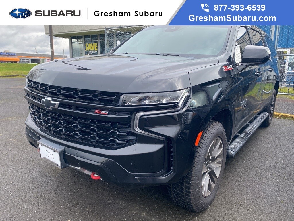 Recent Arrival! 10-Way Power Driver & Passenger Seat Adjusters, 1st & 2nd Row Color-Keyed Carpeted Floor Mats, 2-Speed Active Electronic AutoTrac Transfer Case, 2nd Row Manual Bucket Seats, 3.23 Rear Axle Ratio, 3rd row seats: split-bench, 4-Wheel Disc Brakes, 9 Speakers, ABS brakes, Air Conditioning, Alloy wheels, AM/FM radio: SiriusXM with 360L, Apple CarPlay/Android Auto, Auto High-beam Headlights, Auto-Dimming Inside Rear-View Mirror, Auto-dimming Rear-View mirror, Automatic temperature control, Black Tubular Assist Steps, Bose 9-Speaker Stereo Audio System Feature, Brake assist, Bright Front & Rear Door Sill Plates, Bumpers: body-color, Color-Keyed Carpeting Floor Covering, Compass, Delay-off headlights, Driver & Front Outboard Passenger Airbags, Driver door bin, Driver vanity mirror, Dual front impact airbags, Dual front side impact airbags, Dual-Pane Power Panoramic Sunroof, Electronic Stability Control, Emergency communication system: OnStar and Chevrolet connected services capable, Enhanced Driver Information Center, Floor Console w/Storage Area, Four wheel independent suspension, Front anti-roll bar, Front Bucket Seats, Front Center Armrest, Front dual zone A/C, Front High-Approach Angle Fascia, Front reading lights, Fully automatic headlights, Garage door transmitter, Hands-Free Rear Power Programmable Liftgate, Heated door mirrors, Heated Driver & Front Passenger Seats, Heated front seats, Heavy-Duty Air Filter, Hill Descent Control, Illuminated entry, Infotainment Display, Leather-Appointed Seating, LED Daytime Running Lamps, License Plate Front Mounting Package, Low tire pressure warning, Memory seat, Memory Settings For Driver, Navigation System, Occupant sensing airbag, Outside temperature display, Overhead airbag, Overhead console, Panic alarm, Passenger door bin, Passenger vanity mirror, Power door mirrors, Power driver seat, Power Liftgate, Power passenger seat, Power steering, Power windows, Preferred Equipment Group 2Z7, Premium audio system: Chevrolet Infotainment 3 Premium, Premium Smooth Ride Suspension, Radio: Chevrolet Infotainment 3 Premium System, Rain sensing wipers, Rear air conditioning, Rear anti-roll bar, Rear reading lights, Rear seat center armrest, Rear window defroster, Rear window wiper, Red Recovery Hooks, Remote keyless entry, Remote Start, Roof rack: rails only, Security system, SiriusXM Radio w/360L, Speed control, Speed-sensing steering, Split folding rear seat, Spoiler, Steering wheel mounted audio controls, Tachometer, Telescoping steering wheel, Tilt steering wheel, Traction control, Trip computer, Universal Home Remote, Variably intermittent wipers, Voltmeter, Wheels: 20" x 9" Machined Aluminum, Wireless Charging, Wrapped Steering Wheel. 2023 Chevrolet Suburban Z71 4D Sport Utility EcoTec3 5.3L V8 10-Speed Automatic with Overdrive 4WD Black Clean CARFAX.