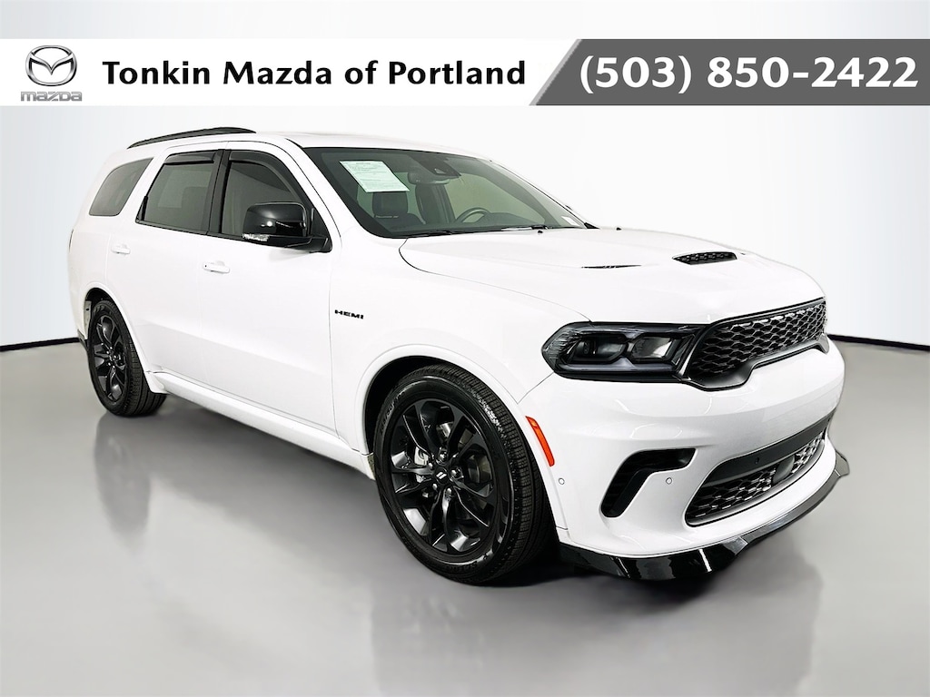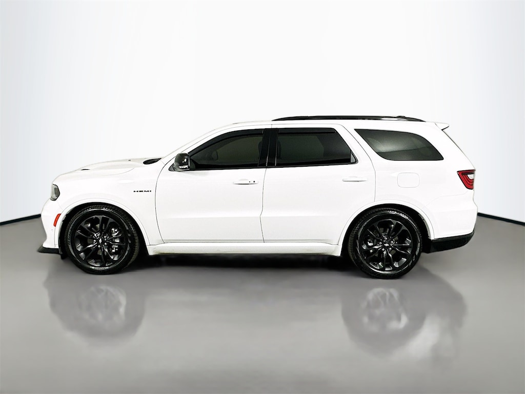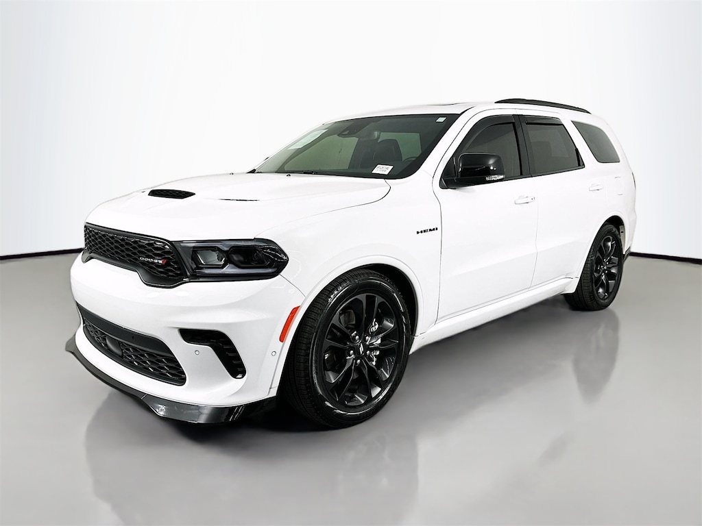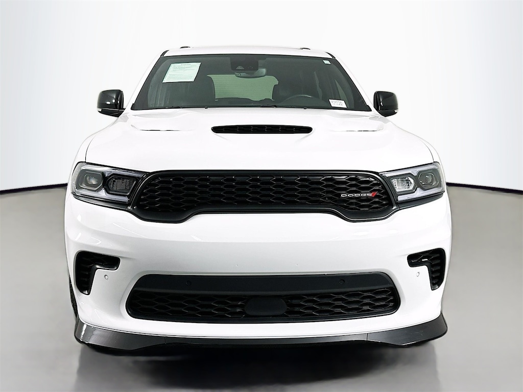CARFAX One-Owner. Clean CARFAX. White Knuckle Clearcoat 2025 Dodge Durango R/T Plus 4D Sport Utility HEMI 5.7L V8 Multi Displacement VVT 8-Speed Automatic AWD AWD, 115V Auxiliary Power Outlet, 2nd Row Fold/Tumble Captain Chairs, 2nd Row Mini Console w/Cupholders, 2nd Row Seat Mounted Inboard Armrests, 3rd Row Floor Mat & Mini Console, 3rd row seats, 4-Wheel Disc Brakes, 6-Passenger Seating, 7 & 4 Pin Wiring Harness, 9 Speakers, ABS brakes, Adaptive Cruise Control w/Stop, Air Conditioning, AM/FM radio: SiriusXM w/360L, Android Auto, Apple CarPlay, Apple CarPlay/Android Auto, Auto High Beam Headlamp Control, Auto-Dimming Exterior Driver Mirror, Auto-dimming Rear-View mirror, Auto-leveling suspension, Automatic temperature control, Back Up Camera, Black Roof Rails, Blacktop Package, Blind Spot, Blind Spot w/Trailer Detection, BlueTooth, Brake assist, Bumpers: body-color, Class IV Receiver Hitch, Cloth Bucket Seats w/Shift Insert, Compass, Delay-off headlights, Driver door bin, Driver vanity mirror, Dual front impact airbags, Dual front side impact airbags, Dual Remote USB Port - Charge Only, Electronic Stability Control, Emergency communication system: Dodge Connect, Exterior Mirrors w/Heating Element, Exterior Mirrors w/Memory, Exterior Mirrors w/Supplemental Signals, Floor Console w/Leather Armrest, Four wheel independent suspension, Front anti-roll bar, Front Bucket Seats, Front Center Armrest w/Storage, Front dual zone A/C, Front License Plate Bracket, Front reading lights, Full Speed Forward Collision Warning Plus, Fully automatic headlights, Garage door transmitter, Gloss Black Badges, Gloss Black Exterior Mirrors, Heated door mirrors, Heated front seats, Heated Seats, Heated Second Row Seats, Heated steering wheel, Illuminated entry, Integrated Roof Rail Crossbars, Keyless Entry, Knee airbag, Leather, Leather steering wheel, Leather Trimmed Bucket Seats, Leather Wrapped Door Panels, LED Auxiliary Low Beam & Turn Signal, Low tire pressure warning, Navigation System, Occupant sensing airbag, Outside temperature display, Overhead airbag, Overhead console, Panic alarm, ParkView Rear Back-Up Camera, Passenger door bin, Passenger vanity mirror, Power 6x9 Multi-Function Foldaway Mirrors, Power 8-Way Driver Memory 8-Way Passenger Seats, Power door mirrors, Power driver seat, Power Driver/Passenger 4-Way Lumbar Adjust, Power Liftgate, Power steering, Power Sunroof, Power Tilt & Telescopic Steering Column, Power windows, Quick Order Package 22T R/T Plus, Radio data system, Radio: Uconnect 5 Nav w/10.1" Display, Radio/Driver Seat/Mirrors Memory, Rear air conditioning, Rear anti-roll bar, Rear Load Leveling Suspension, Rear reading lights, Rear seat center armrest, Rear window defroster, Red Accent Stitching, Remote keyless entry, Satin Black Dodge Tail Lamp Badge, Security system, Speed control, Speed-sensing steering, Split folding rear seat, Spoiler, Sport steering wheel, Steering wheel mounted audio controls, Tachometer, Telescoping steering wheel, Tilt steering wheel, Traction control, Trailer Brake Control, Trip computer, Ventilated Front Seats, Voltmeter, Wheels: 20" x 8.0" Black Noise Aluminum.