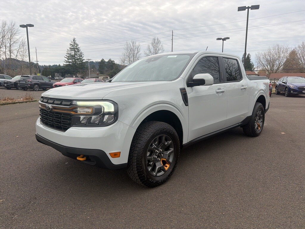 Priced below KBB Fair Purchase Price! CARFAX One-Owner. 3.63 Axle Ratio, 4-Wheel Disc Brakes, 4G LTE Wi-Fi Hotspot Removal, 6 Speakers, ABS brakes, Advanced 4WD w/Twin Clutch Rear Drive Unit, Air Conditioning, Alloy wheels, AM/FM radio, Apple CarPlay/Android Auto, Auto High-beam Headlights, Automatic temperature control, Black Chrome Headlamps, Black Chrome Taillamps, Brake assist, Bumpers: body-color, Compass, Delay-off headlights, Driver door bin, Driver vanity mirror, Dual front impact airbags, Dual front side impact airbags, Electronic Stability Control, Equipment Group 500A Standard, Exterior Parking Camera Rear, Fender Vent w/Tremor Orange Accents, Four wheel independent suspension, Front All Weather Floor Mats, Front anti-roll bar, Front Bucket Seats, Front Bumper w/Improved Approach Angle, Front Center Armrest, Front License Plate Bracket, Front reading lights, Front Tow Hooks w/Tremor Orange Painted Accent, Fully automatic headlights, Heavy-Duty Transmission Cooler, Illuminated entry, Knee airbag, Low tire pressure warning, Occupant sensing airbag, Off-Road Screen in Cluster, Off-Road Tuned Suspension, Outside temperature display, Overhead airbag, Overhead console, Panic alarm, Passenger door bin, Passenger vanity mirror, Power door mirrors, Power steering, Power windows, Radio data system, Radio: AM/FM Stereo w/6 Speakers, Rear anti-roll bar, Rear seat center armrest, Rear step bumper, Remote keyless entry, Security system, Speed control, Speed-sensing steering, Spray-In Bedliner, Steering wheel mounted audio controls, Tachometer, Telescoping steering wheel, Tilt steering wheel, Tonneau Pickup Box Cover - Soft Folding, Traction control, Trail Control, Trailer Hitch Receiver w/4-Pin Connector, Tremor Box Decals & Badges, Tremor Instrument Panel & Floor Console Accents, Tremor Off-Road Package, Trip computer, Unique Front & Rear Ford Logos, Unique Style Upper Grille w/Tremor Orange Accents, Wheels: 17" Machined-Face Tarnished Dark Aluminum. 2023 Ford Maverick Lariat 4D Crew Cab EcoBoost 2.0L I4 GTDi DOHC Turbocharged VCT 8-Speed Automatic AWD Avalanche Clean CARFAX.