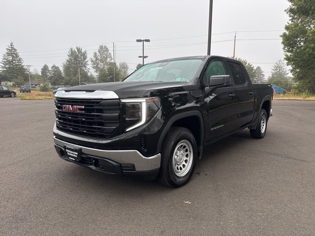 8-Speed Automatic, 4WD, Jet Black w/Vinyl Seat Trim, Convenience Package, Cruise Control, Deep-Tinted Glass, Electric Rear-Window Defogger, EZ Lift Power Lock & Release Tailgate, Heated Power-Adjustable Outside Mirrors, Hitch Guidance, LED Cargo Area Lighting, Pro Value Package, Trailering Package, 2 Charge/Data USB Ports, 3.42 Rear Axle Ratio, 4-Way Manual Driver Seat Adjuster, 4-Way Manual Passenger Seat Adjuster, 4-Wheel Disc Brakes, 6 Speakers, 6-Speaker Audio System Feature, ABS brakes, Air Conditioning, AM/FM radio, Apple CarPlay/Android Auto, Auto High-beam Headlights, Automatic Emergency Braking, Black Manual Outside Mirrors, Brake assist, Buckle to Drive, Bumpers: chrome, Chrome Header w/Flat Black Grille Insert Bars, Delay-off headlights, Driver door bin, Dual front impact airbags, Dual front side impact airbags, Electrical Steering Column Lock, Electronic Stability Control, Emergency communication system: OnStar and GMC Connected Services capable, Exterior Parking Camera Rear, Following Distance Indicator, Forward Collision Alert, Front 40/20/40 Split-Bench Seat, Front anti-roll bar, Front Center Armrest w/Storage, Front Frame-Mounted Black Recovery Hooks, Front Pedestrian Braking, Front reading lights, Front wheel independent suspension, Fully automatic headlights, HD Rear Vision Camera, Illuminated entry, IntelliBeam Automatic High Beam On/Off, Lane Keep Assist w/Lane Departure Warning, Low tire pressure warning, Occupant sensing airbag, Outside temperature display, Overhead airbag, Overhead console, Panic alarm, Passenger door bin, Passenger vanity mirror, Power Door Locks, Power Front Windows w/Driver Express Up/Down, Power Front Windows w/Passenger Express Down, Power Rear Windows w/Express Down, Power steering, Power windows, Premium audio system: GMC Infotainment System, Push Button Start, Radio data system, Radio: GMC Infotainment Audio System, Rear reading lights, Rear step bumper, Remote Keyless Entry, Remote keyless entry, Solar Absorbing Tinted Glass, Speed-sensing steering, Split folding rear seat, Standard Suspension Package, Tachometer, Tilt steering wheel, Traction control, Trip computer, Variably intermittent wipers, Vinyl Seat Trim, Voltmeter, Wheels: 17" x 8" Silver Painted Steel, 8-Speed Automatic, 4WD, Jet Black w/Vinyl Seat Trim, Convenience Package, Cruise Control, Deep-Tinted Glass, Electric Rear-Window Defogger, EZ Lift Power Lock & Release Tailgate, Heated Power-Adjustable Outside Mirrors, Hitch Guidance, LED Cargo Area Lighting, Pro Value Package, Trailering Package. 2022 GMC Sierra 1500 Pro 4D Crew Cab 2.7L Turbo 8-Speed Automatic 4WD Black Clean CARFAX.