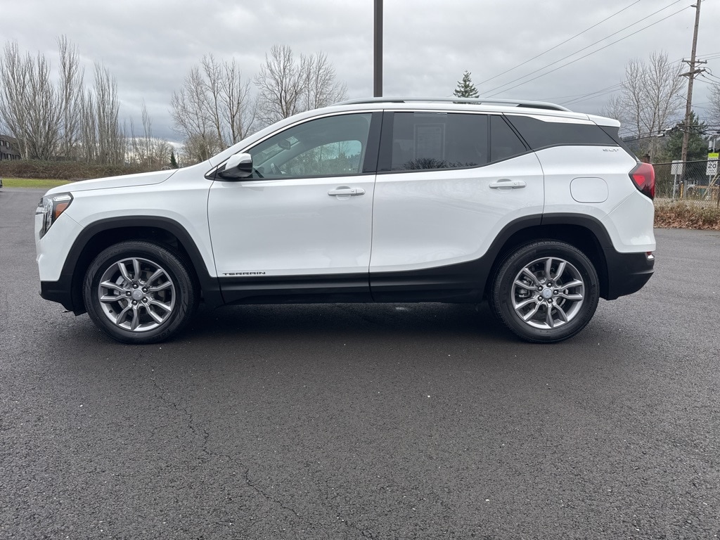 Priced below KBB Fair Purchase Price! CARFAX One-Owner. AWD, 2 USB Data Ports, 2 USB Data Ports w/SD Card Reader, 3.47 Final Drive Axle Ratio, 4-Wheel Disc Brakes, 6 Speakers, 6-Speaker Audio System Feature, 6-Way Power Front Passenger Seat, 8-Way Power Driver Seat Adjuster, ABS brakes, Air Conditioning, Alloy wheels, AM/FM radio: SiriusXM, Auto High-beam Headlights, Auto-dimming Rear-View mirror, Automatic temperature control, Bluetooth® For Phone, Brake assist, Bumpers: body-color, Compass, Delay-off headlights, Deleted 3 Years of Remote Access, Driver & Front Passenger Heated Seats, Driver door bin, Driver vanity mirror, Dual front impact airbags, Dual front side impact airbags, Electronic Stability Control, Emergency communication system: OnStar and GMC connected services capable, Four wheel independent suspension, Front anti-roll bar, Front Bucket Seats, Front Center Armrest, Front dual zone A/C, Front fog lights, Front Passenger 2-Way Power Lumbar, Front reading lights, Fully automatic headlights, Garage door transmitter, Heated door mirrors, Heated front seats, Heated steering wheel, Illuminated entry, License Plate Front Mounting Package, Low tire pressure warning, Memory seat, Occupant sensing airbag, Outside temperature display, Overhead airbag, Overhead console, Panic alarm, Passenger door bin, Passenger vanity mirror, Perforated Leather-Appointed Seat Trim, Power door mirrors, Power Driver Lumbar Control, Power driver seat, Power Liftgate, Power passenger seat, Power steering, Power windows, Preferred Equipment Group 4SA, Radio data system, Radio: GMC Infotainment Audio System w/8" Display, Rear anti-roll bar, Rear seat center armrest, Rear window defroster, Rear window wiper, Remote keyless entry, Roof rack: rails only, Security system, SiriusXM, Speed control, Speed-sensing steering, Split folding rear seat, Spoiler, Steering wheel mounted audio controls, Tachometer, Telescoping steering wheel, Tilt steering wheel, Traction control, Trip computer, Turn signal indicator mirrors, Variably intermittent wipers, Wheels: 18" x 7" Silver Painted Aluminum, Wireless Apple CarPlay/Wireless Android Auto, AWD. 2024 GMC Terrain SLT 4D Sport Utility 1.5L DOHC 9-Speed Automatic AWD Summit White Clean CARFAX.