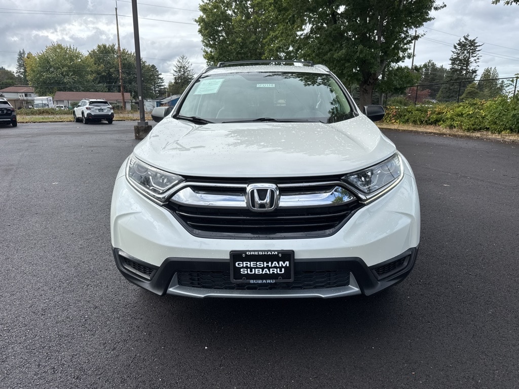 AWD, 17" Alloy Wheels, 4 Speakers, 4-Wheel Disc Brakes, 5.05 Axle Ratio, ABS brakes, Air Conditioning, Alloy wheels, AM/FM radio, Automatic temperature control, Brake assist, Bumpers: body-color, Cloth Seat Trim, Compass, Delay-off headlights, Driver door bin, Driver vanity mirror, Dual front impact airbags, Dual front side impact airbags, Electronic Stability Control, Exterior Parking Camera Rear, Four wheel independent suspension, Front anti-roll bar, Front Bucket Seats, Front Center Armrest, Front reading lights, Illuminated entry, Low tire pressure warning, Occupant sensing airbag, Outside temperature display, Overhead airbag, Overhead console, Panic alarm, Passenger door bin, Passenger vanity mirror, Power door mirrors, Power steering, Power windows, Radio data system, Radio: AM/FM Audio System w/4 Speakers, Rear anti-roll bar, Rear seat center armrest, Rear window defroster, Rear window wiper, Remote keyless entry, Speed control, Speed-sensing steering, Split folding rear seat, Spoiler, Steering wheel mounted audio controls, Tachometer, Telescoping steering wheel, Tilt steering wheel, Traction control, Trip computer, AWD. 2017 Honda CR-V LX 4D Sport Utility 2.4L I4 DOHC 16V i-VTEC CVT AWD White Clean CARFAX.