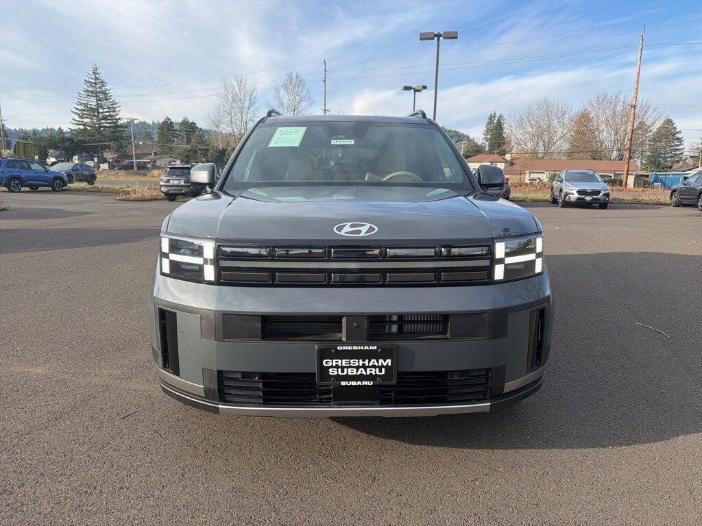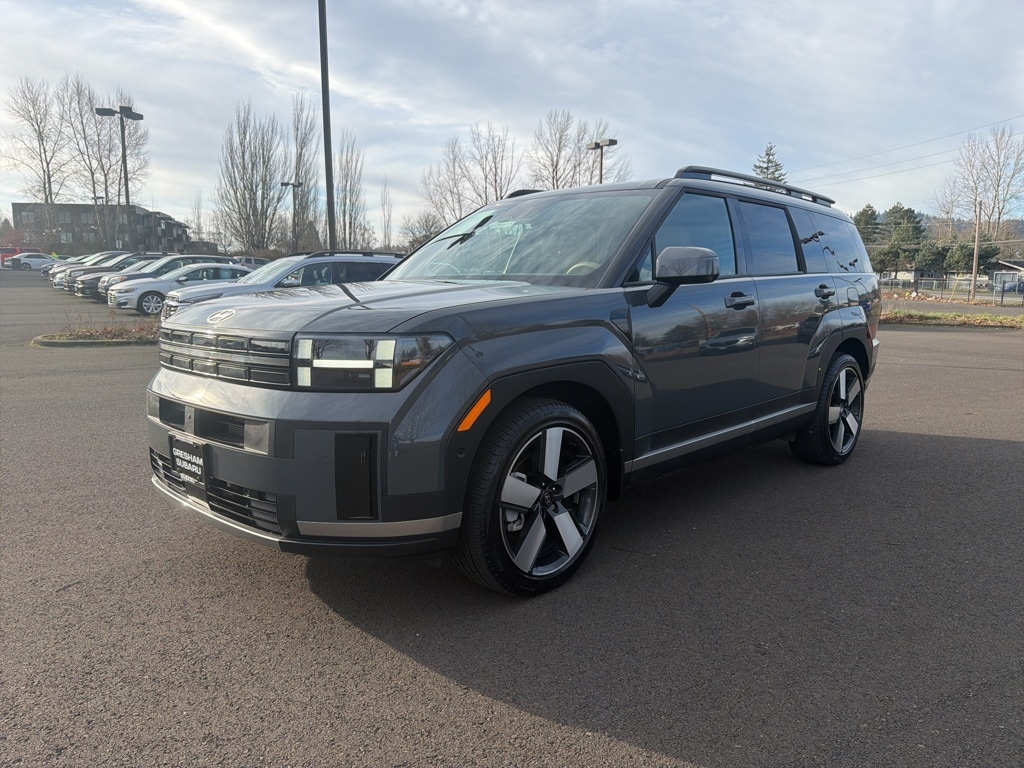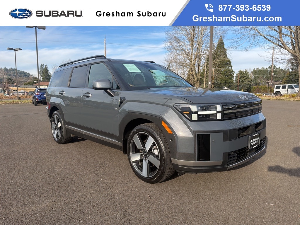 AWD, Pecan Brown Leather, Option Group 01, 12 Speakers, 3rd row seats: bench, 4-Wheel Disc Brakes, ABS brakes, Air Conditioning, Alloy wheels, AM/FM radio: SiriusXM, Apple CarPlay & Android Auto, Auto High-beam Headlights, Auto-dimming Rear-View mirror, Automatic temperature control, Brake assist, Bumpers: body-color, Cargo Cover, Cargo Net, Cargo Tray, Carpeted Floor Mats, Delay-off headlights, Driver door bin, Driver vanity mirror, Dual front impact airbags, Dual front side impact airbags, Electronic Stability Control, Emergency communication system, Exterior Parking Camera Rear, First Aid Kit, Four wheel independent suspension, Front anti-roll bar, Front Bucket Seats, Front Center Armrest, Front dual zone A/C, Front reading lights, Fully automatic headlights, Garage door transmitter: HomeLink, Heated & Ventilated Front Bucket Seats, Heated door mirrors, Heated front seats, Heated rear seats, Heated steering wheel, Illuminated entry, Knee airbag, Leather Seat Trim, Leather steering wheel, Low tire pressure warning, Memory seat, Mudguards, Navigation System, Occupant sensing airbag, Outside temperature display, Overhead airbag, Overhead console, Panic alarm, Passenger door bin, Passenger vanity mirror, Power door mirrors, Power driver seat, Power Liftgate, Power moonroof, Power passenger seat, Power steering, Power windows, Radio: AM/FM/HD Bose Premium Audio System, Rain sensing wipers, Rear anti-roll bar, Rear seat center armrest, Rear side impact airbag, Rear window defroster, Rear window wiper, Remote keyless entry, Roadside Assistance Kit, Security system, Speed control, Speed-sensing steering, Split folding rear seat, Spoiler, Steering wheel mounted audio controls, Tachometer, Telescoping steering wheel, Tilt steering wheel, Traction control, Trip computer, Turn signal indicator mirrors, Variably intermittent wipers, Ventilated front seats, Wheel Locks, Wheels: 20" x 8.5J Alloy, AWD, Pecan Brown Leather, Option Group 01. 2025 Hyundai Santa Fe Limited 4D Sport Utility 2.5L I4 Shiftronic AWD Ecotronic Gray