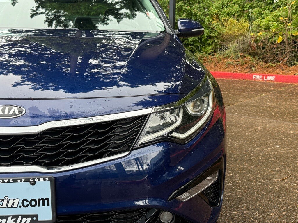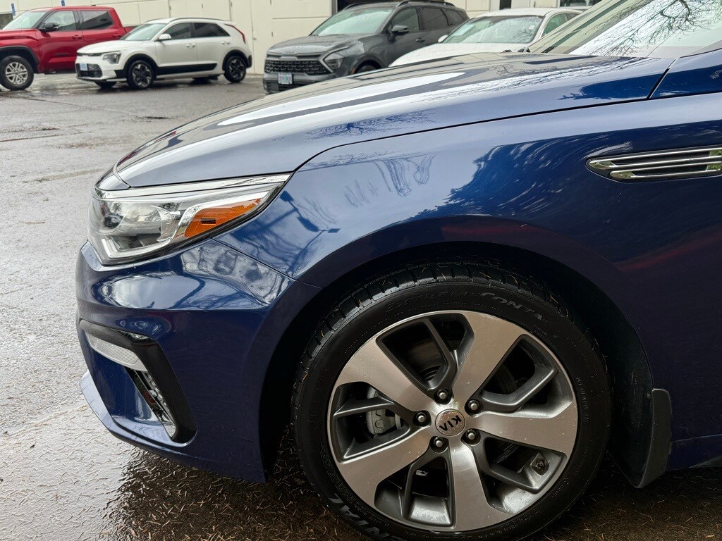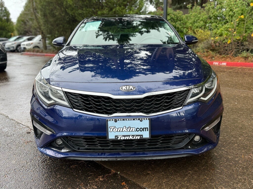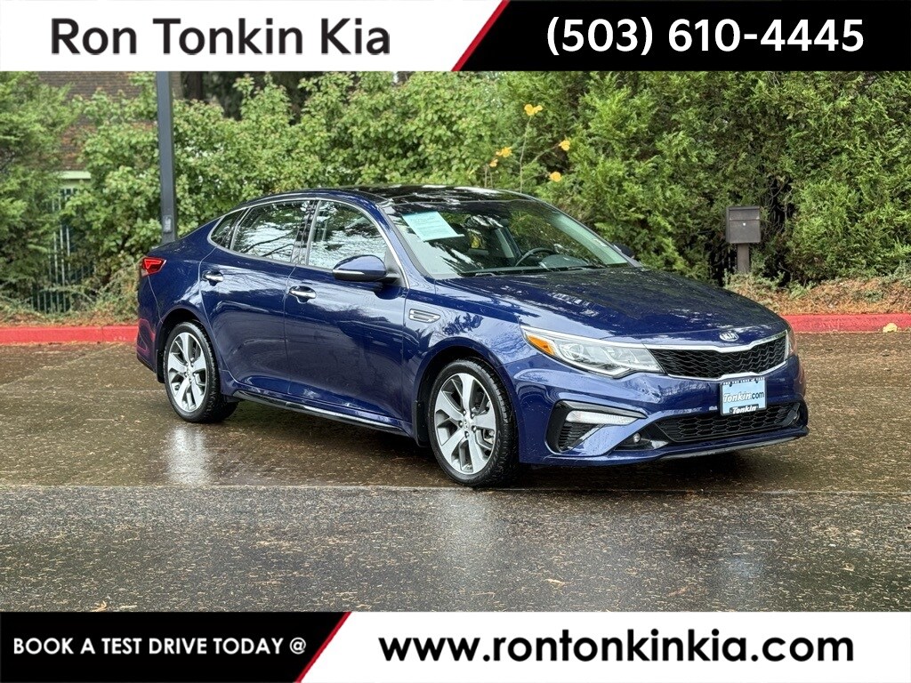 2019 Kia Optima S Horizon Blue 2.4L I4 DGI DOHC 4-Wheel Disc Brakes, 6 Speakers, ABS brakes, Air Conditioning, Alloy wheels, AM/FM radio: SiriusXM, Anti-whiplash front head restraints, Apple CarPlay & Android Auto, Auto High-beam Headlights, Auto-dimming Rear-View mirror, Automatic temperature control, Brake assist, Bumpers: body-color, Carpet Floor Mats, Delay-off headlights, Driver door bin, Driver vanity mirror, Dual front impact airbags, Dual front side impact airbags, Electronic Stability Control, Emergency communication system: UVO eServices, Four wheel independent suspension, Front anti-roll bar, Front Bucket Seats, Front Center Armrest, Front dual zone A/C, Front fog lights, Front reading lights, Fully automatic headlights, Heated door mirrors, Illuminated entry, Knee airbag, Leather steering wheel, LED Overhead Front & Rear Reading Lights, Low tire pressure warning, Occupant sensing airbag, Outside temperature display, Overhead airbag, Overhead console, Panic alarm, Panoramic Sunroof, Passenger door bin, Passenger vanity mirror, Power door mirrors, Power driver seat, Power steering, Power windows, Radio data system, Radio: AM/FM/MP3/SiriusXM Audio System, Rear anti-roll bar, Rear Bumper Applique, Rear seat center armrest, Rear window defroster, Remote keyless entry, S Panoramic Sunroof Package, Security system, Speed control, Speed-sensing steering, Split folding rear seat, Spoiler, Sport Cloth Seat Trim, Steering wheel mounted audio controls, Tachometer, Telescoping steering wheel, Tilt steering wheel, Traction control, Trip computer, Turn signal indicator mirrors, Variably intermittent wipers, Wheels: 7.5J x 18" Machine Finish Alloy.