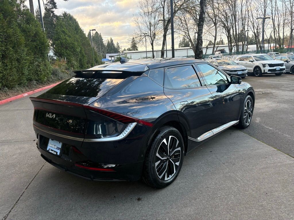 2023 Kia EV6 Wind Gravity Blue Electric Motor 14 Speakers, 4-Wheel Disc Brakes, ABS brakes, Air Conditioning, Alloy wheels, AM/FM radio: SiriusXM, Apple CarPlay & Android Auto, Auto High-beam Headlights, Auto-dimming Rear-View mirror, Automatic temperature control, Axle Ratio: 10.650, Blind-Spot View Monitor, Brake assist, Bumpers: body-color, Cargo Tray w/Luggage Board, Carpet Floor Mats, Delay-off headlights, Driver door bin, Driver vanity mirror, Dual front impact airbags, Dual front side impact airbags, Electronic Stability Control, Emergency communication system, Four wheel independent suspension, Front anti-roll bar, Front Bucket Seats, Front Center Armrest, Front dual zone A/C, Front reading lights, Fully automatic headlights, Heated & Ventilated Front Bucket Seats, Heated door mirrors, Heated front seats, Heated rear seats, Heated steering wheel, Illuminated entry, Knee airbag, Low tire pressure warning, Memory seat, Navigation system: AVN 5.0 Navigation System, Occupant sensing airbag, Outside temperature display, Overhead airbag, Overhead console, Panic alarm, Passenger door bin, Passenger vanity mirror, Power door mirrors, Power driver seat, Power Liftgate, Power passenger seat, Power steering, Power windows, Radio: Meridian Premium Audio System, Rain sensing wipers, Rear anti-roll bar, Rear seat center armrest, Rear window defroster, Remote keyless entry, Remote Smart Parking Assist, Reverse Parking Collision-Avoidance Assist, Security system, Speed control, Speed-sensing steering, Split folding rear seat, Spoiler, Steering wheel mounted audio controls, Surround View Monitor, Telescoping steering wheel, Tilt steering wheel, Traction control, Trip computer, Turn signal indicator mirrors, Variably intermittent wipers, Vegan Leather Seat Trim, Ventilated front seats, Wheels: 7.5J x 19" Black Painted Alloy, Wind Technology Package.