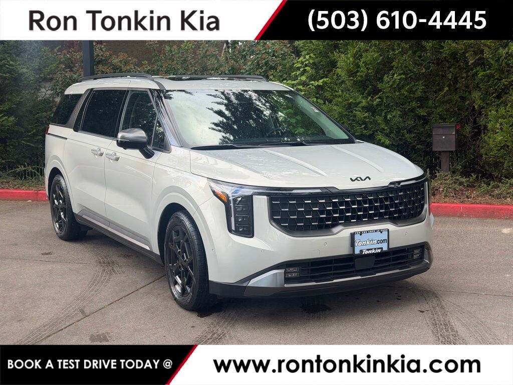2026 Kia Carnival SX Prestige Ivory Silver V6 12 Speakers, 2nd Row Laminated Windows, 3.51 Axle Ratio, 3rd row seats: split-bench, 4-Wheel Disc Brakes, ABS brakes, Air Conditioning, Alloy wheels, AM/FM radio: SiriusXM, Ambient Lighting, Apple CarPlay & Android Auto, Auto High-beam Headlights, Auto-dimming Rear-View mirror, Automatic temperature control, Brake assist, Bumpers: body-color, Cargo Tray, Compass, Delay-off headlights, Driver door bin, Driver vanity mirror, Dual front impact airbags, Dual front side impact airbags, Electronic Stability Control, Emergency communication system, Exterior Parking Camera Rear, Four wheel independent suspension, Front anti-roll bar, Front Bucket Seats, Front Center Armrest, Front dual zone A/C, Front fog lights, Front reading lights, Fully automatic headlights, Garage door transmitter: HomeLink, Heads-Up Display, Heated and Ventilated Front Bucket Seats, Heated door mirrors, Heated front seats, Heated steering wheel, Heated/Ventilated 2nd Row Power Seats, High Glossy Interior Trim, Illuminated entry, Knee airbag, Leather Shift Knob, Leather steering wheel, Low tire pressure warning, Luxury Carpeted Floor Mats, Memory seat, Navigation System, Occupant sensing airbag, Outside temperature display, Overhead airbag, Overhead console, Panic alarm, Passenger door bin, Passenger vanity mirror, Power 2nd-Row Moonroof, Power door mirrors, Power driver seat, Power Liftgate, Power moonroof, Power passenger seat, Power steering, Power windows, Pure Leather Seat Trim, Radio: AM/FM/HD Audio System, Rain sensing wipers, Rear air conditioning, Rear anti-roll bar, Rear reading lights, Rear window defroster, Rear window wiper, Reclining 3rd row seat, Remote keyless entry, Security system, Speed control, Speed-sensing steering, Split folding rear seat, Spoiler, Steering wheel mounted audio controls, SX Prestige Seat Package, Tachometer, Telescoping steering wheel, Tilt steering wheel, Traction control, Trip computer, Turn signal indicator mirrors, Variably intermittent wipers, Ventilated front seats, Wheels: 7.5J x 19" Alloy Dark Edition.
