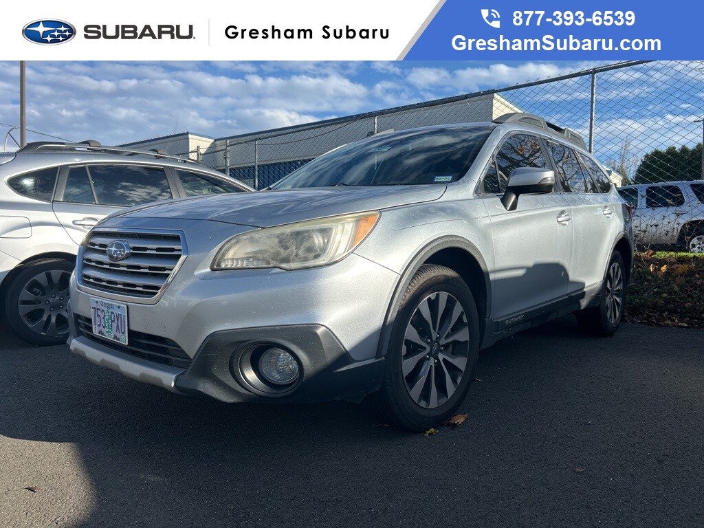 Recent Arrival! CARFAX One-Owner. 12 Speakers, 4-Wheel Disc Brakes, 4.111 Axle Ratio, ABS brakes, Adaptive Cruise Control, Aha Infotainment, Air Conditioning, All Weather Floor Mats, Alloy wheels, AM/FM radio: SiriusXM, Anti-whiplash front head restraints, Auto-Dimming Rear View Compass Mirror w/Homelink, Automatic temperature control, Brake assist, Bumper Cover (Rear), Bumpers: body-color, Cargo Net (Rear), CD player, Driver door bin, Driver vanity mirror, Dual front impact airbags, Dual front side impact airbags, Electronic Stability Control, Exterior Auto Dimming Mirror w/BSD, Exterior Parking Camera Rear, Four wheel independent suspension, Front anti-roll bar, Front Bucket Seats, Front Center Armrest w/Storage, Front dual zone A/C, Front fog lights, Front reading lights, Fully automatic headlights, harman/kardon Surround Sound Speaker System, harman/kardon® Speakers, Heated door mirrors, Heated front seats, Heated rear seats, Heated Reclining Front Bucket Seats, Illuminated Engine Start/Stop Switch, Illuminated entry, Lane Departure Warning System, Leather Shift Knob, Low tire pressure warning, Memory seat, Moonroof Package & Keyless Access & Navi & EyeSight, Navigation System, Occupant sensing airbag, Outside temperature display, Overhead airbag, Overhead console, Panic alarm, Passenger door bin, Passenger vanity mirror, Perforated Leather-Trimmed Upholstery, Pin Code Access, Power door mirrors, Power driver seat, Power Liftgate, Power Moonroof Package, Power passenger seat, Power steering, Power windows, Pre-Collision System, Protection Package #2, Radio data system, Radio: AM/FM Stereo HD Radio & Navigation System, Radio: AM/FM Stereo HD Radio w/Single Disc CD, Rear anti-roll bar, Rear Seat Back Protector, Rear seat center armrest, Rear window defroster, Rear window wiper, Rear-Vision Camera, Remote keyless entry, Remote Transmitter w/Removable Key, Roof rack, Security system, Speed control, Speed-sensing steering, Splash Guards, Split folding rear seat, Spoiler, Steering Responsive Fog Lights (SRF), Steering wheel mounted audio controls, Steering-Wheel Paddle-Shift Control Switches, Tachometer, Telescoping steering wheel, Tilt steering wheel, Traction control, Trip computer, Turn signal indicator mirrors, Variably intermittent wipers, Vehicle Information Display, Wheel Arch Moldings, Wheels: 18" x 7.0" Aluminum Alloy w/Machine Finish, WHOLESALE TO PUBLIC-BUDGET VEHICLE SOLD AS IS. 2015 Subaru Outback 2.5i Limited 4D Sport Utility 2.5L 4-Cylinder DOHC 16V CVT Lineartronic AWD Ice Silver Metallic Clean CARFAX.