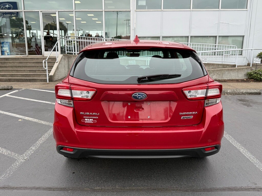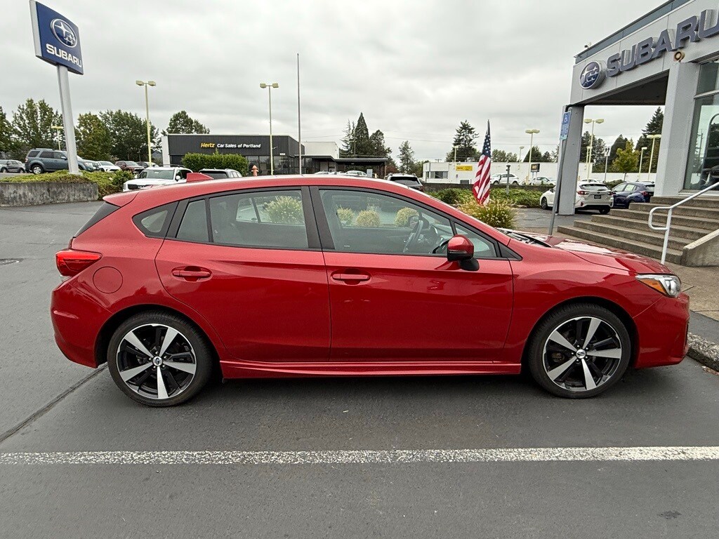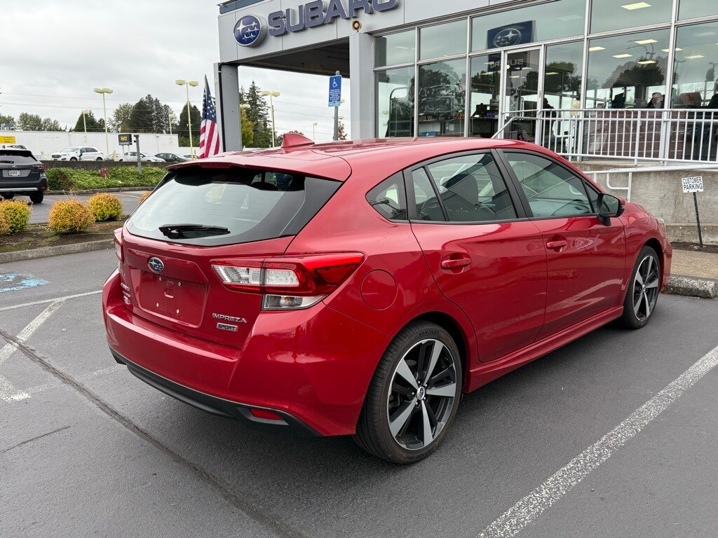 18" Alloy Wheels, 4-Wheel Disc Brakes, 6 Speakers, ABS brakes, Air Conditioning, Alloy wheels, AM/FM radio: SiriusXM, Apple CarPlay/Android Auto, Brake assist, Bumpers: body-color, Cargo Net, CD player, Delay-off headlights, Driver door bin, Driver vanity mirror, Dual front impact airbags, Dual front side impact airbags, Electronic Stability Control, Emergency communication system: STARLINK, Exterior Parking Camera Rear, Four wheel independent suspension, Front anti-roll bar, Front Bucket Seats, Front Center Armrest, Front reading lights, Fully automatic headlights, Heated door mirrors, Heated Front Bucket Seats, Heated front seats, Illuminated entry, Knee airbag, Leather Shift Knob, Low tire pressure warning, Occupant sensing airbag, Outside temperature display, Overhead airbag, Panic alarm, Passenger door bin, Passenger vanity mirror, Power door mirrors, Power steering, Power windows, Radio data system, Radio: Subaru Starlink 8.0" Multimedia Plus System, Rear anti-roll bar, Rear window defroster, Rear window wiper, Remote keyless entry, Security system, Speed control, Speed-sensing steering, Split folding rear seat, Spoiler, Sport Cloth Upholstery, Standard Model, Steering wheel mounted audio controls, Tachometer, Telescoping steering wheel, Tilt steering wheel, Traction control, Trip computer, Turn signal indicator mirrors, Variably intermittent wipers. 2018 Subaru Impreza 2.0i Sport 4D Hatchback 2.0L 4-Cylinder DOHC 16V CVT Lineartronic AWD Lithium Red Pearl