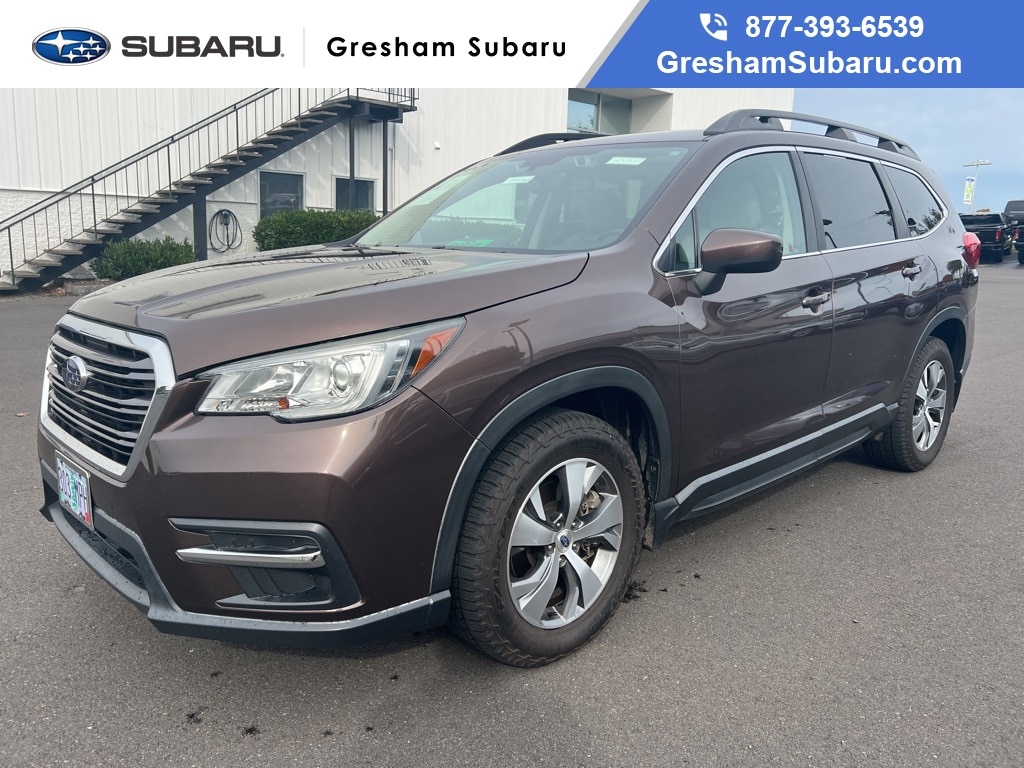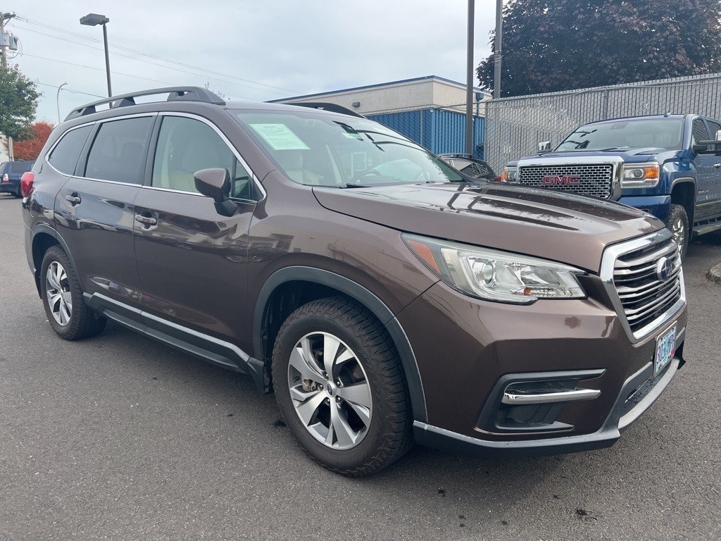 All-Weather Floor Liners, Auto-Dimming Exterior Mirror w/Approach Light, Auto-Dimming Rear View Compass Mirror w/HomeLink, Cargo Tray, Keyless Access w/Push-Button Start, Map & Reading Lights LED Upgrade - 6 Bulb Kit, Popular Package #2A, Power Rear Gate w/Automatic Close & Height Memory, PRG & KAS & ADM & RAB, Rear Bumper Cover, Reverse Automatic Braking (RAB) System, Splash Guards, 3rd row seats: bench, 4-Wheel Disc Brakes, 6 Speakers, ABS brakes, Air Conditioning, Alloy wheels, AM/FM radio: SiriusXM, Automatic temperature control, Axle Ratio: 4.44, Brake assist, Bumpers: body-color, CD player, Delay-off headlights, Driver door bin, Driver vanity mirror, Dual front impact airbags, Dual front side impact airbags, Electronic Stability Control, Emergency communication system: STARLINK Safety and Security, Exterior Parking Camera Rear, Four wheel independent suspension, Front anti-roll bar, Front Bucket Seats, Front Center Armrest, Front dual zone A/C, Front reading lights, Fully automatic headlights, Heated door mirrors, Heated Front Bucket Seats, Heated front seats, Illuminated entry, Knee airbag, Low tire pressure warning, Occupant sensing airbag, Outside temperature display, Overhead airbag, Overhead console, Panic alarm, Passenger door bin, Passenger vanity mirror, Power door mirrors, Power driver seat, Power steering, Power windows, Radio data system, Radio: Subaru STARLINK 8.0" Multimedia Plus System, Rear air conditioning, Rear anti-roll bar, Rear reading lights, Rear seat center armrest, Rear window defroster, Rear window wiper, Remote keyless entry, Roof rack: rails only, Security system, Speed control, Spill Resistant Cloth Upholstery, Split folding rear seat, Spoiler, STARLINK/Apple CarPlay/Android Auto, Steering wheel mounted audio controls, Tachometer, Telescoping steering wheel, Tilt steering wheel, Traction control, Trip computer, Variably intermittent wipers, Wheels: 18" Gray Aluminum Alloy w/Machine Finish, All-Weather Floor Liners, Auto-Dimming Exterior Mirror w/Approach Light, Auto-Dimming Rear View Compass Mirror w/HomeLink, Cargo Tray, Keyless Access w/Push-Button Start, Map & Reading Lights LED Upgrade - 6 Bulb Kit, Popular Package #2A, Power Rear Gate w/Automatic Close & Height Memory, PRG & KAS & ADM & RAB, Rear Bumper Cover, Reverse Automatic Braking (RAB) System, Splash Guards. 2019 Subaru Ascent Premium 4D Sport Utility 2.4L DOHC Lineartronic CVT AWD Cinnamon Brown Pearl