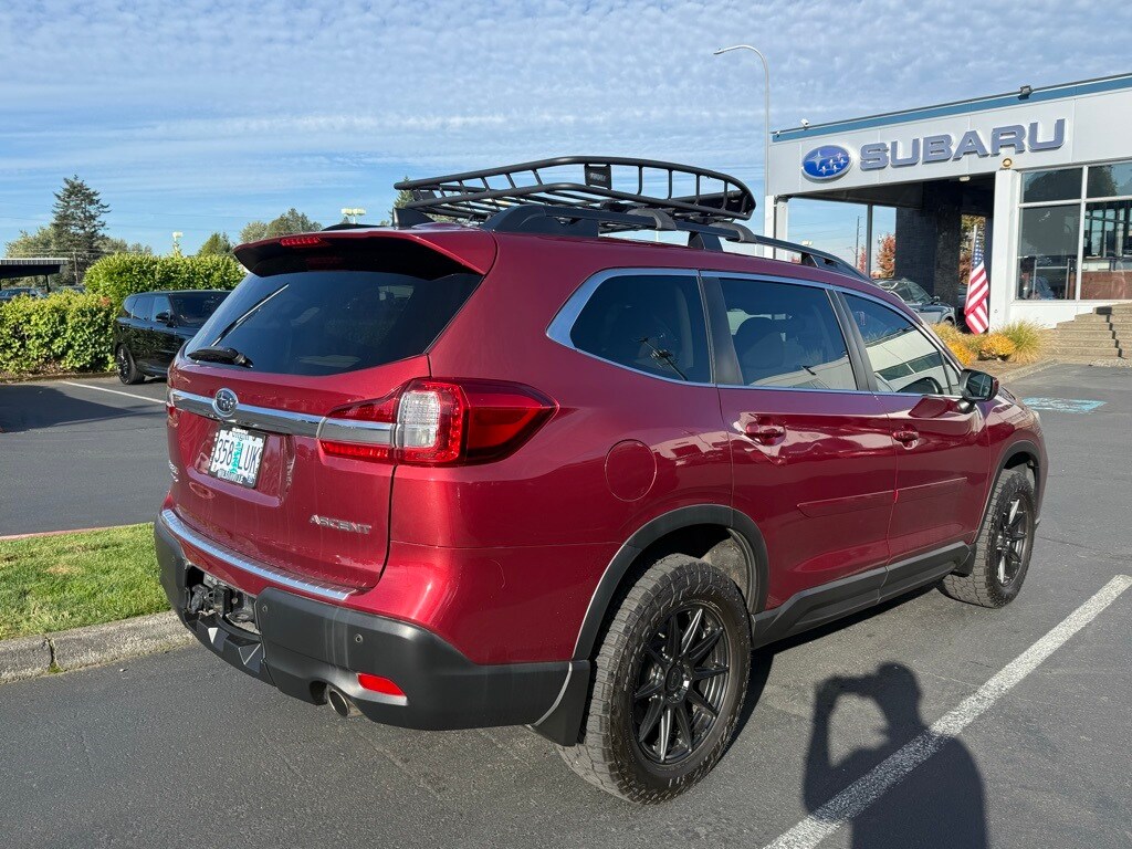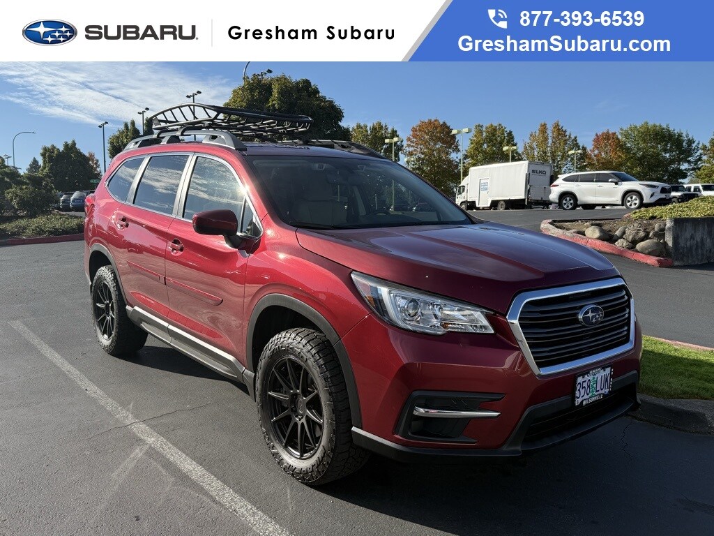 Auto-Dimming Rear View Compass Mirror w/HomeLink, Keyless Access w/Push-Button Start, Power Rear Gate w/Automatic Close & Height Memory, PRG & KAS & ADM & RAB, Reverse Automatic Braking (RAB) System, 3rd row seats: bench, 4-Wheel Disc Brakes, 6 Speakers, ABS brakes, Air Conditioning, Alloy wheels, AM/FM radio: SiriusXM, Automatic temperature control, Axle Ratio: 4.44, Brake assist, Bumpers: body-color, CD player, Delay-off headlights, Driver door bin, Driver vanity mirror, Dual front impact airbags, Dual front side impact airbags, Electronic Stability Control, Emergency communication system: STARLINK Safety and Security, Exterior Parking Camera Rear, Four wheel independent suspension, Front anti-roll bar, Front Bucket Seats, Front Center Armrest, Front dual zone A/C, Front reading lights, Fully automatic headlights, Heated door mirrors, Heated Front Bucket Seats, Heated front seats, Illuminated entry, Knee airbag, Low tire pressure warning, Occupant sensing airbag, Outside temperature display, Overhead airbag, Overhead console, Panic alarm, Passenger door bin, Passenger vanity mirror, Power door mirrors, Power driver seat, Power steering, Power windows, Radio data system, Radio: Subaru STARLINK 8.0" Multimedia Plus System, Rear air conditioning, Rear anti-roll bar, Rear reading lights, Rear window defroster, Rear window wiper, Remote keyless entry, Roof rack: rails only, Security system, Speed control, Spill Resistant Cloth Upholstery, Split folding rear seat, Spoiler, STARLINK/Apple CarPlay/Android Auto, Steering wheel mounted audio controls, Tachometer, Telescoping steering wheel, Tilt steering wheel, Traction control, Trip computer, Variably intermittent wipers, Wheels: 18" Gray Aluminum Alloy w/Machine Finish, Auto-Dimming Rear View Compass Mirror w/HomeLink, Keyless Access w/Push-Button Start, Power Rear Gate w/Automatic Close & Height Memory, PRG & KAS & ADM & RAB, Reverse Automatic Braking (RAB) System. 2019 Subaru Ascent Premium 4D Sport Utility 2.4L DOHC Lineartronic CVT AWD Red Clean CARFAX.