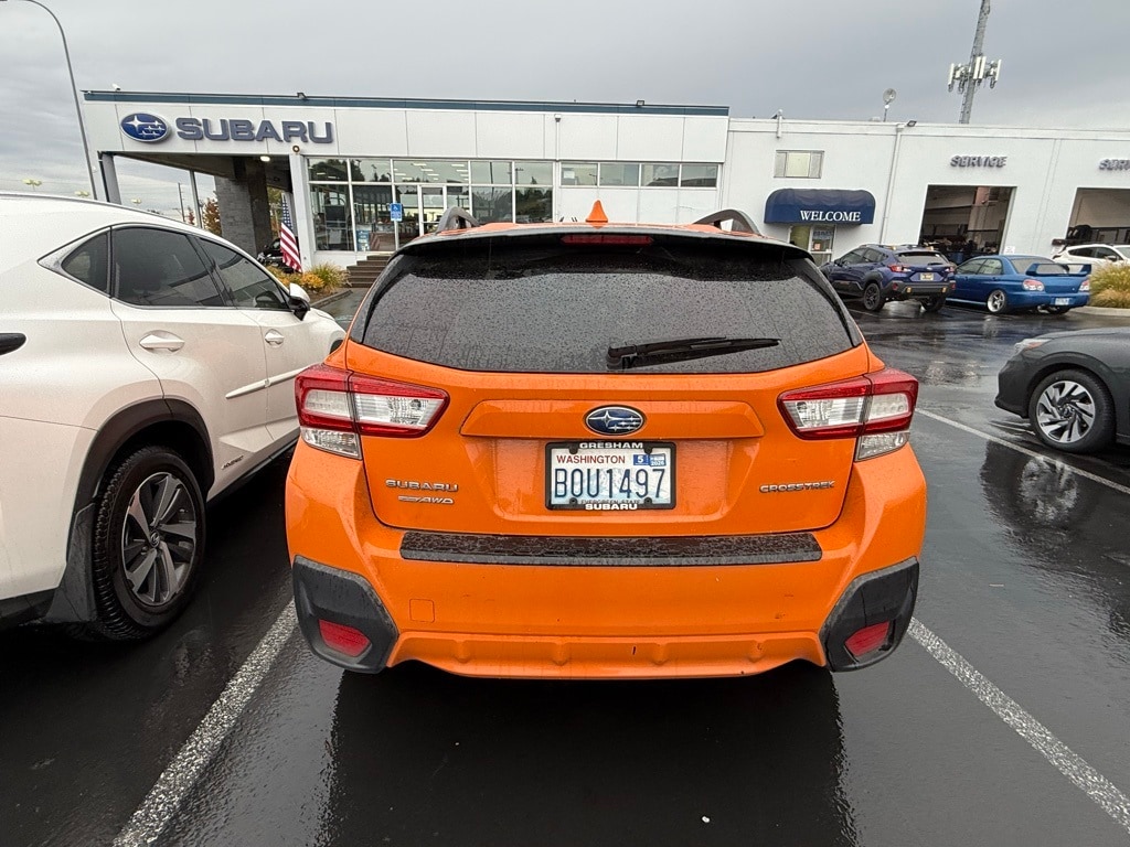 Auto-Dimming Exterior Mirror w/Approach Light, Auto-Dimming Mirror w/Compass & HomeLink, Blind Spot Detection/Rear Cross Traffic Alert, Map & Dome Lights LED Upgrade, Moonroof Package, Popular Package #3, Power Moonroof, Rear Bumper Cover, 17" Alloy Wheels, 3.90 Axle Ratio, 4-Wheel Disc Brakes, 6 Speakers, ABS brakes, Air Conditioning, Alloy wheels, AM/FM radio: SiriusXM, Brake assist, Bumpers: body-color, CD player, Cloth Upholstery, Driver door bin, Driver vanity mirror, Dual front impact airbags, Dual front side impact airbags, Electronic Stability Control, Emergency communication system: STARLINK Safety and Security, Exterior Parking Camera Rear, Four wheel independent suspension, Front anti-roll bar, Front Bucket Seats, Front Center Armrest, Front fog lights, Front reading lights, Fully automatic headlights, Heated door mirrors, Heated Front Bucket Seats, Heated front seats, Illuminated entry, Knee airbag, Leather Shift Knob, Low tire pressure warning, Occupant sensing airbag, Outside temperature display, Overhead airbag, Overhead console, Panic alarm, Passenger door bin, Passenger vanity mirror, Power door mirrors, Power steering, Power windows, Radio data system, Radio: Subaru Starlink 6.5" Multimedia Plus System, Rear anti-roll bar, Rear window defroster, Rear window wiper, Remote keyless entry, Roof rack: rails only, Security system, Speed control, Speed-sensing steering, Split folding rear seat, Spoiler, STARLINK/Apple CarPlay/Android Auto, Steering wheel mounted audio controls, Subaru Starlink Smartphone Integration, Tachometer, Telescoping steering wheel, Tilt steering wheel, Traction control, Trip computer, Variably intermittent wipers, Auto-Dimming Exterior Mirror w/Approach Light, Auto-Dimming Mirror w/Compass & HomeLink, Blind Spot Detection/Rear Cross Traffic Alert, Map & Dome Lights LED Upgrade, Moonroof Package, Popular Package #3, Power Moonroof, Rear Bumper Cover. 2019 Subaru Crosstrek 2.0i Premium 4D Sport Utility 2.0L DOHC Lineartronic CVT AWD Orange Clean CARFAX.