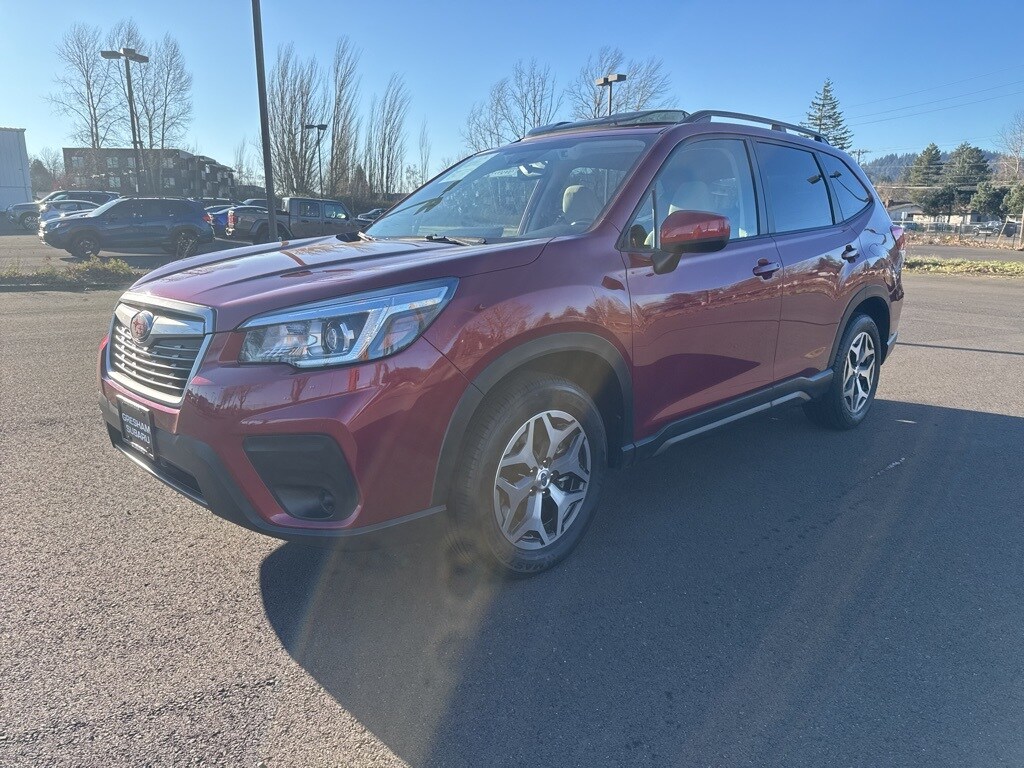 Priced below KBB Fair Purchase Price! Odometer is 29097 miles below market average! CARFAX One-Owner. All-Weather Pkg & BSD & Keyless Access & Start, Blind Spot Detection w/Rear Cross Traffic Alert, Heated Exterior Mirrors, Heated Front Seats, Keyless Access w/Push-Button Start, Windshield Wiper De-Icer, 3.70 Axle Ratio, 4-Wheel Disc Brakes, 6 Speakers, ABS brakes, Active Cruise Control, Air Conditioning, Alloy wheels, AM/FM radio: SiriusXM, Automatic temperature control, Brake assist, Bumpers: body-color, CD player, Cloth Upholstery, Driver door bin, Driver vanity mirror, Dual front impact airbags, Dual front side impact airbags, Electronic Stability Control, Emergency communication system: STARLINK Safety and Security, Exterior Parking Camera Rear, Four wheel independent suspension, Front anti-roll bar, Front Bucket Seats, Front Center Armrest, Front reading lights, Fully automatic headlights, Illuminated entry, Knee airbag, Low tire pressure warning, Occupant sensing airbag, Outside temperature display, Overhead airbag, Overhead console, Panic alarm, Passenger door bin, Passenger vanity mirror, Power door mirrors, Power driver seat, Power moonroof: Panoramic, Power steering, Power windows, Radio data system, Radio: Subaru Starlink 6.5" Multimedia Plus System, Rear anti-roll bar, Rear seat center armrest, Rear window defroster, Rear window wiper, Remote keyless entry, Roof rack: rails only, Security system, Speed control, Speed-sensing steering, Split folding rear seat, Spoiler, STARLINK/Apple CarPlay/Android Auto, Steering wheel mounted audio controls, Tachometer, Telescoping steering wheel, Tilt steering wheel, Traction control, Trip computer, Variably intermittent wipers, Wheels: 17" x 7.0J Black Machine Finish Alloy, All-Weather Pkg & BSD & Keyless Access & Start, Blind Spot Detection w/Rear Cross Traffic Alert, Heated Exterior Mirrors, Heated Front Seats, Keyless Access w/Push-Button Start, Windshield Wiper De-Icer. 2019 Subaru Forester Premium 4D Sport Utility 2.5L 4-Cylinder DOHC 16V VVT Lineartronic CVT AWD Crimson Red Pearl Clean CARFAX.