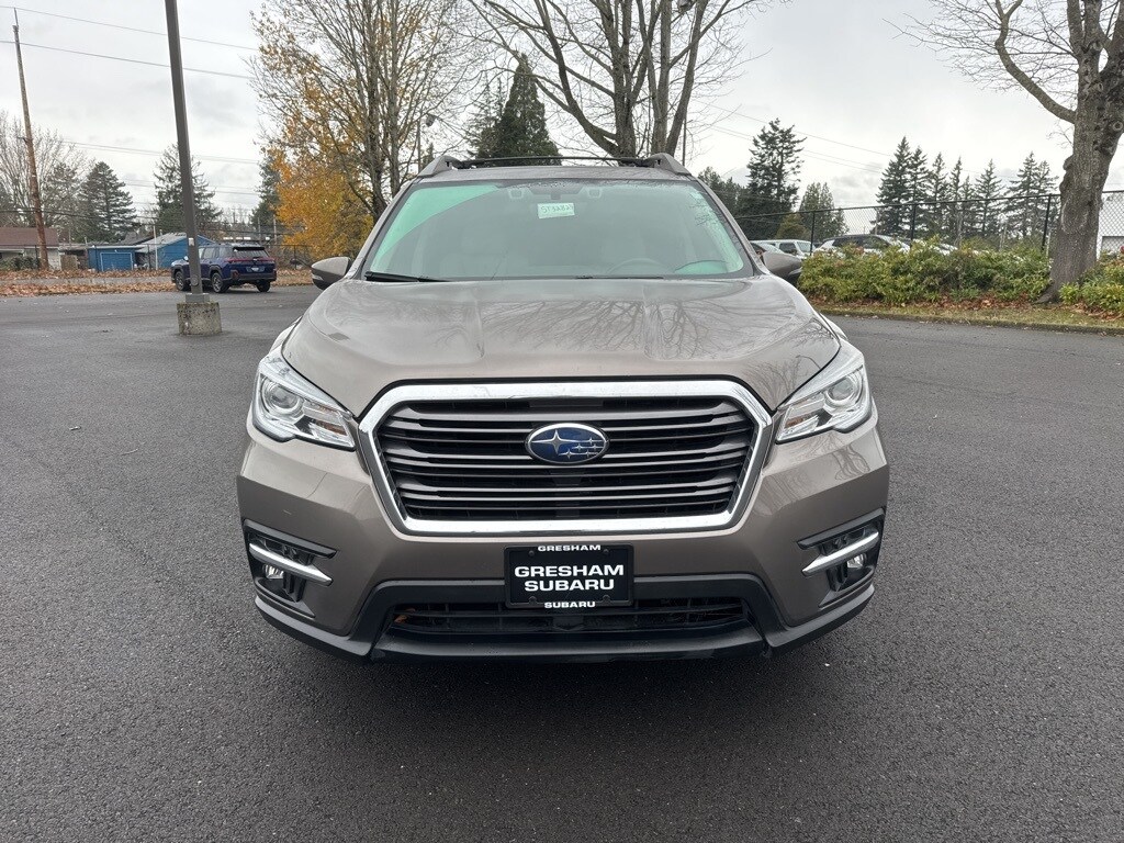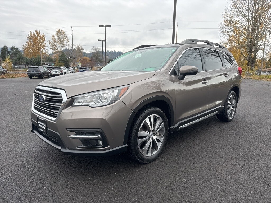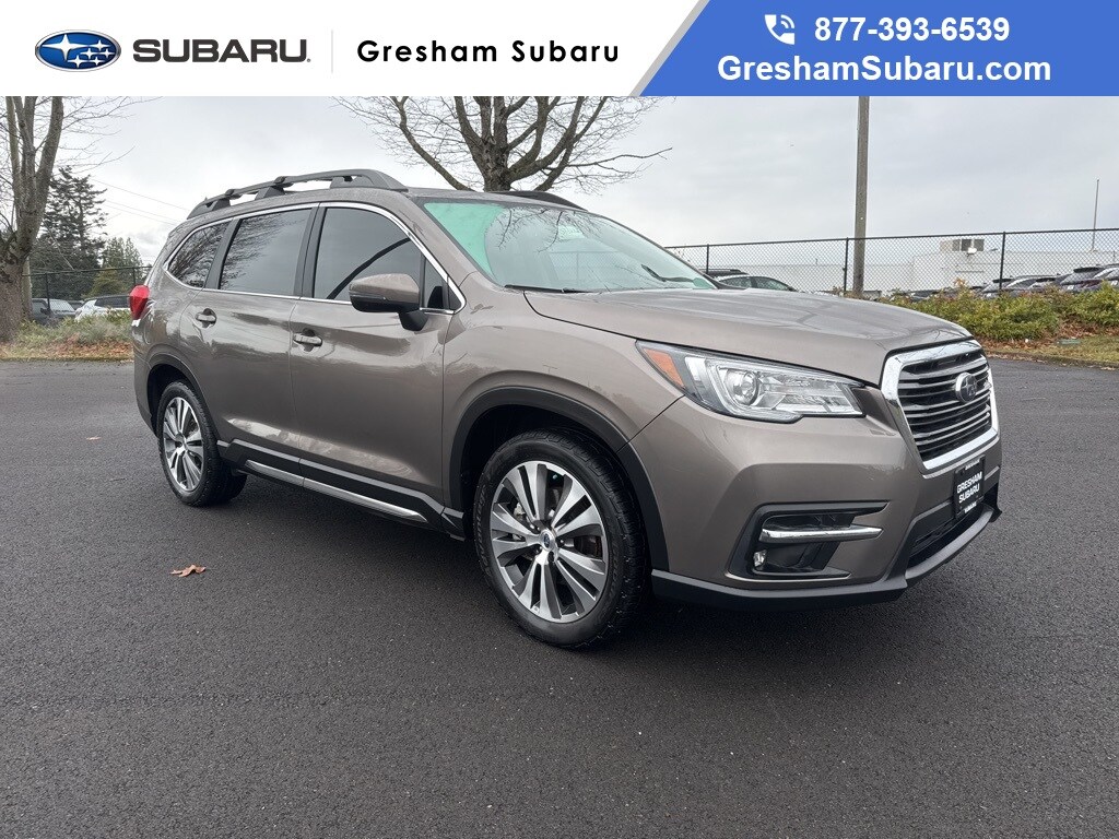 Recent Arrival! Certified. Subaru Certified Pre-Owned Certified, 3rd row seats: bench, 4-Wheel Disc Brakes, 6 Speakers, ABS brakes, Air Conditioning, Alloy wheels, AM/FM radio: SiriusXM, Auto High-beam Headlights, Auto-dimming Rear-View mirror, Automatic temperature control, Axle Ratio: 4.44, Brake assist, Bumpers: body-color, Cargo Area Cover, CD player, Compass, Cup Holder Insert, Delay-off headlights, Driver door bin, Driver vanity mirror, Dual front impact airbags, Dual front side impact airbags, Dual Glass Panoramic Power Moonroof, Electronic Stability Control, Emergency communication system: STARLINK Safety and Security (Subscription Required), Exterior Parking Camera Rear, Four wheel independent suspension, Front anti-roll bar, Front Bucket Seats, Front Center Armrest, Front dual zone A/C, Front fog lights, Front reading lights, Fully automatic headlights, Garage door transmitter: HomeLink, Heated door mirrors, Heated Front Bucket Seats, Heated front seats, Heated rear seats, Heated steering wheel, Illuminated entry, Knee airbag, Low tire pressure warning, Memory seat, Occupant sensing airbag, Outside temperature display, Overhead airbag, Overhead console, Panic alarm, Passenger door bin, Passenger vanity mirror, Perforated Leather-Trimmed Upholstery, Power door mirrors, Power driver seat, Power Liftgate, Power passenger seat, Power steering, Power windows, Radio data system, Radio: Subaru STARLINK 8.0" Multimedia Nav System, Radio: Subaru STARLINK 8.0" Multimedia Plus System, Rear air conditioning, Rear anti-roll bar, Rear reading lights, Rear window defroster, Rear window wiper, Reclining 3rd row seat, Remote keyless entry, Security system, Speed control, Split folding rear seat, Spoiler, STARLINK/Apple CarPlay/Android Auto, Steering wheel mounted audio controls, Tachometer, Technology Package, Telescoping steering wheel, Tilt steering wheel, Traction control, Trip computer, Turn signal indicator mirrors, Variably intermittent wipers, Wheels: 20" x 7.5 J Dk Gray Alloy w/Machine Finish. 2021 Subaru Ascent Limited 4D Sport Utility 2.4L 4-Cylinder DOHC 16V Lineartronic CVT AWD Brilliant Bronze Metallic Subaru Certified Pre-Owned Details: