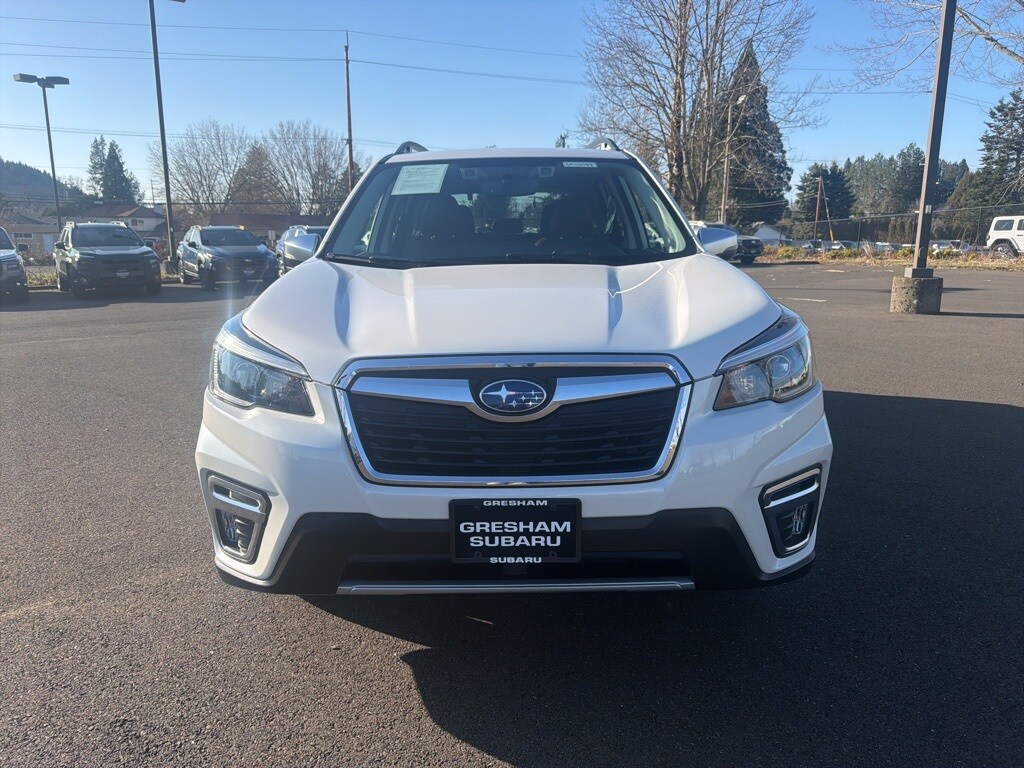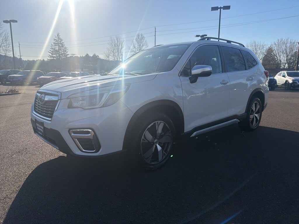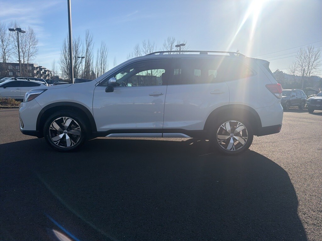Recent Arrival! Odometer is 15589 miles below market average! Certified. Subaru Certified Pre-Owned Certified, 3.70 Axle Ratio, 4-Wheel Disc Brakes, 9 Speakers, ABS brakes, Active Cruise Control, Air Conditioning, All-Weather Floor Liners, Alloy wheels, AM/FM radio: SiriusXM, Auto High-beam Headlights, Auto-Dimming Exterior Mirror w/Approach Lighting, Auto-Dimming Mirror w/Compass & HomeLink, Automatic temperature control, Brake assist, Bumpers: body-color, Cargo Net, CD player, Driver door bin, Driver vanity mirror, Dual front impact airbags, Dual front side impact airbags, Electronic Stability Control, Emergency communication system: STARLINK Safety and Security (Subscription Required), Exterior Parking Camera Rear, Four wheel independent suspension, Front anti-roll bar, Front Bucket Seats, Front Center Armrest, Front dual zone A/C, Front fog lights, Front reading lights, Fully automatic headlights, harman kardon 576W Amp & Speaker System, harman/kardon® Speakers, Heated door mirrors, Heated Front Bucket Seats, Heated front seats, Heated rear seats, Heated steering wheel, HVAC memory, Illuminated entry, Knee airbag, Leather Shift Knob, Low tire pressure warning, Memory seat, Navigation System, Occupant sensing airbag, Outside temperature display, Overhead airbag, Overhead console, Paddle-Shift Control Switches, Panic alarm, Passenger door bin, Passenger vanity mirror, Perforated Leather-Trimmed Upholstery, Popular Package #2, Power door mirrors, Power driver seat, Power Liftgate, Power moonroof: Panoramic, Power passenger seat, Power steering, Power windows, Premium audio system: harman/kardon, Radio data system, Radio: Subaru Starlink 8.0" Multimedia Nav System, Rear anti-roll bar, Rear Bumper Cover, Rear seat center armrest, Rear window defroster, Rear window wiper, Remote keyless entry, Roof rack: rails only, Security system, Speed control, Speed-sensing steering, Split folding rear seat, Spoiler, Standard Model, STARLINK/Apple CarPlay/Android Auto, Steering wheel mounted audio controls, Tachometer, Telescoping steering wheel, Tilt steering wheel, Traction control, Trip computer, Turn signal indicator mirrors, Variably intermittent wipers, Wheels: 18" x 7.0J Blk Machine Touring Alum Alloy. 2021 Subaru Forester Touring 4D Sport Utility 2.5L 4-Cylinder DOHC 16V VVT Lineartronic CVT AWD Crystal White Pearl Subaru Certified Pre-Owned Details: