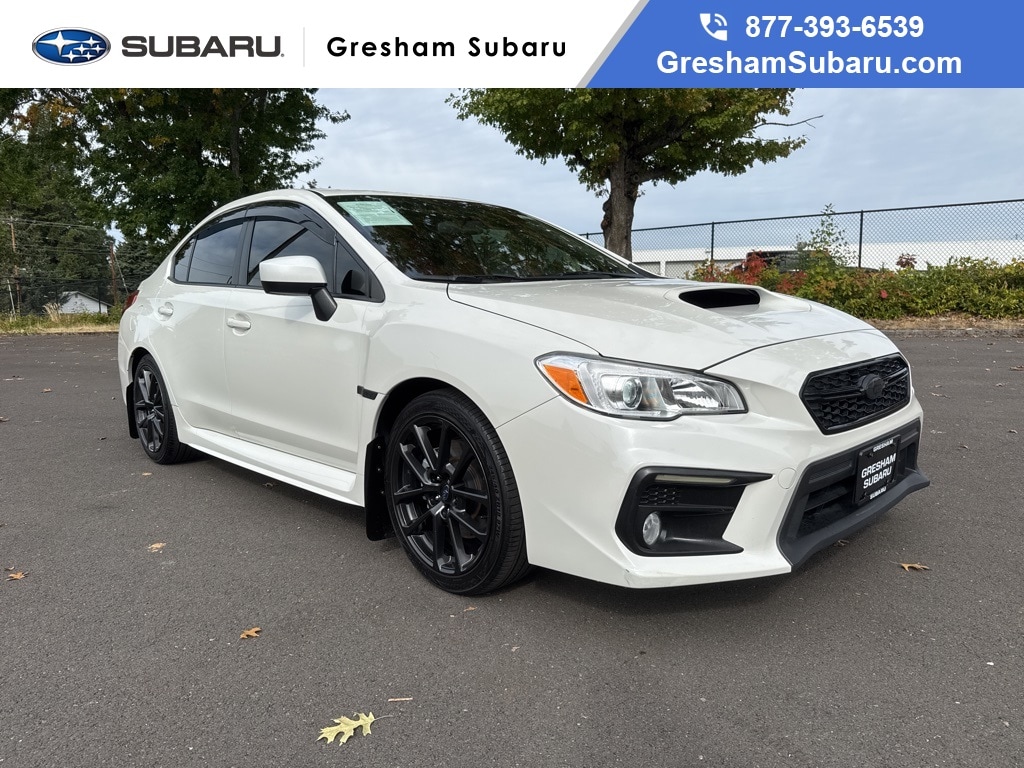 4-Wheel Disc Brakes, 6 Speakers, ABS brakes, Air Conditioning, Alloy wheels, AM/FM radio: SiriusXM, Automatic temperature control, Brake assist, Bumpers: body-color, CD player, Checkered Cloth Upholstery, Driver door bin, Driver vanity mirror, Dual front impact airbags, Dual front side impact airbags, Electronic Stability Control, Exterior Parking Camera Rear, Four wheel independent suspension, Front anti-roll bar, Front Bucket Seats, Front Center Armrest, Front fog lights, Front reading lights, Heated door mirrors, Heated front seats, Illuminated entry, Knee airbag, Leather Shift Knob, Leather steering wheel, Low tire pressure warning, Occupant sensing airbag, Outside temperature display, Overhead airbag, Overhead console, Panic alarm, Passenger door bin, Passenger vanity mirror, Performance Design Heated Front Bucket Seats, Power door mirrors, Power moonroof, Power steering, Power windows, Radio data system, Radio: Subaru STARLINK 7.0" Multimedia Plus System, Rear anti-roll bar, Rear seat center armrest, Rear window defroster, Remote keyless entry, Security system, Speed control, Speed-sensing steering, Split folding rear seat, Spoiler, Sport steering wheel, STARLINK/Apple CarPlay/Android Auto, Steering wheel mounted audio controls, Tachometer, Telescoping steering wheel, Tilt steering wheel, Traction control, Trip computer, Variably intermittent wipers, Wheels: 18" x 8.5" High Luster Finish Alum Alloy. 2021 Subaru WRX Premium 4D Sedan 2.0L DOHC Intercooled Turbocharged CVT AWD White Subaru Certified Pre-Owned Details: