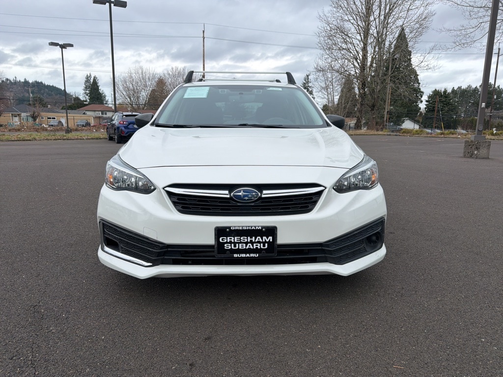 4 Speakers, 4-Wheel Disc Brakes, ABS brakes, Air Conditioning, All-Weather Floor Liners, AM/FM radio, Anti-whiplash front head restraints, Auto-Dimming Exterior Mirror w/Approach Light, Auto-Dimming Mirror w/Compass & HomeLink, Brake assist, Bumpers: body-color, Cargo Cover, Cargo Net, Cargo Tray, Cloth Upholstery, Driver door bin, Driver vanity mirror, Dual front impact airbags, Dual front side impact airbags, Electronic Stability Control, Exterior Parking Camera Rear, EyeSight System, Four wheel independent suspension, Front anti-roll bar, Front Bucket Seats, Front Center Armrest, Front reading lights, High Grade Combination Meter w/Color LCD Display, Illuminated entry, Knee airbag, Low tire pressure warning, Occupant sensing airbag, Outside temperature display, Overhead airbag, Overhead console, Overhead Console Shower Light, Panic alarm, Passenger door bin, Passenger vanity mirror, Popular Package #2, Power door mirrors, Power steering, Power windows, Radio data system, Radio: Subaru STARLINK 6.5" Multimedia System, Rear Bumper Applique, Rear Seat Reminder, Rear Seatback Protector, Rear window defroster, Rear window wiper, Remote keyless entry, Security system, Speed control, Speed-sensing steering, Split folding rear seat, Spoiler, Standard Model w/CVT, STARLINK/Apple CarPlay/Android Auto, Steering wheel mounted audio controls, Tachometer, Telescoping steering wheel, Tilt steering wheel, Tire Pressure Monitoring System, Traction control, Trip computer, Variably intermittent wipers, Wheels: 16" x 6.5" Black Finish J Steel. 2022 Subaru Impreza 4D Hatchback 2.0L DOHC CVT Lineartronic AWD Crystal White Pearl Clean CARFAX.