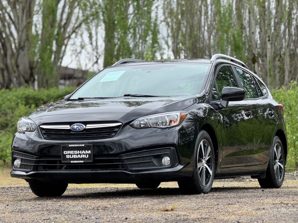 Recent Arrival! New Price! Odometer is 13422 miles below market average! CARFAX One-Owner. ***30+ MPG***, ***ACCIDENT-FREE CARFAX***, ***ALL WHEEL DRIVE (AWD)***, ***CARFAX 1-OWNER***, ***LOCAL TRADE***, 4-Wheel Disc Brakes, 6 Speakers, ABS brakes, Air Conditioning, Alloy wheels, AM/FM radio: SiriusXM, Anti-whiplash front head restraints, Brake assist, Bumpers: body-color, CD player, Cloth Upholstery, Delay-off headlights, Driver door bin, Driver vanity mirror, Dual front impact airbags, Dual front side impact airbags, Electronic Stability Control, Emergency communication system, Exterior Parking Camera Rear, Four wheel independent suspension, Front anti-roll bar, Front Bucket Seats, Front Center Armrest, Front fog lights, Front reading lights, Fully automatic headlights, Heated door mirrors, Heated Front Bucket Seats, Heated front seats, Illuminated entry, Knee airbag, Low tire pressure warning, Occupant sensing airbag, Outside temperature display, Overhead airbag, Overhead console, Panic alarm, Passenger door bin, Passenger vanity mirror, Power door mirrors, Power steering, Power windows, Radio data system, Radio: Subaru STARLINK 6.5" Multimedia Plus System, Rear anti-roll bar, Rear window defroster, Rear window wiper, Remote keyless entry, Security system, Speed control, Speed-sensing steering, Split folding rear seat, Spoiler, STARLINK/Apple CarPlay/Android Auto, Steering wheel mounted audio controls, Tachometer, Telescoping steering wheel, Tilt steering wheel, Traction control, Trip computer, Variably intermittent wipers, Wheels: 16" x 6.5" Machine Finish J Aluminum-Alloy. 2022 Subaru Impreza Premium 4D Hatchback 2.0L DOHC CVT Lineartronic AWD Crystal Black Silica Clean CARFAX.
