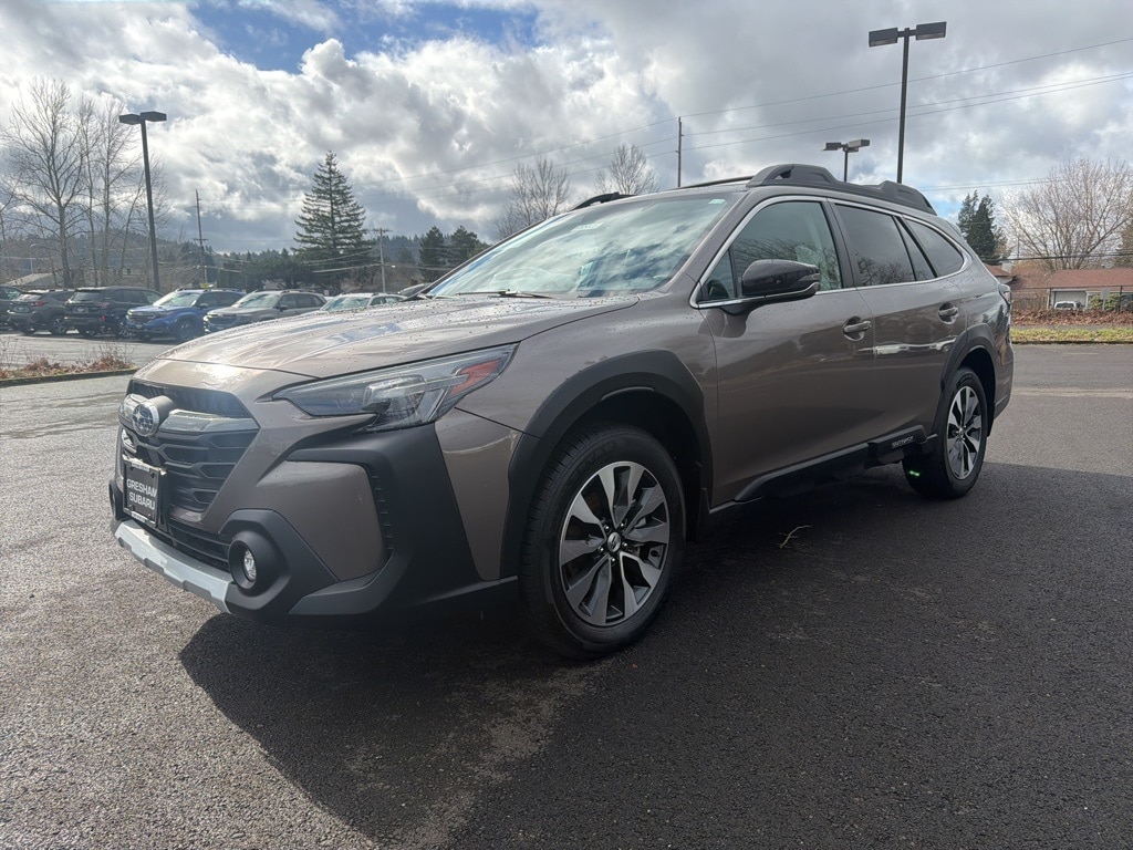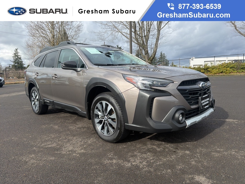 DriverFocus (Driver Monitoring System), Heated Steering Wheel, Power Moonroof, Power Moonroof & HSW & Navigation System, Radio: Subaru STARLINK 11.6" Multimedia Nav System, 12 Speakers, 3.90 Axle Ratio, 4-Wheel Disc Brakes, ABS brakes, Air Conditioning, Alloy wheels, AM/FM radio: SiriusXM, Auto High-beam Headlights, Auto-dimming Rear-View mirror, Automatic temperature control, Brake assist, Bumpers: body-color, Compass, Driver door bin, Driver vanity mirror, Dual front impact airbags, Dual front side impact airbags, Electronic Stability Control, Emergency communication system: STARLINK Safety Plus (3-year free trial), Exterior Parking Camera Rear, Four wheel independent suspension, Front anti-roll bar, Front Bucket Seats, Front Center Armrest w/Storage, Front dual zone A/C, Front fog lights, Front reading lights, Fully automatic headlights, Garage door transmitter: HomeLink, harman/kardon® Speakers, Heated door mirrors, Heated Front Bucket Seats, Heated front seats, Heated rear seats, Illuminated entry, Knee airbag, Leather Shift Knob, Leather steering wheel, Low tire pressure warning, Memory seat, Occupant sensing airbag, Outside temperature display, Overhead airbag, Overhead console, Panic alarm, Passenger door bin, Passenger vanity mirror, Perforated Leather-Trimmed Upholstery, Power door mirrors, Power driver seat, Power Liftgate, Power passenger seat, Power steering, Power windows, Radio: Subaru STARLINK 11.6" Multimedia Plus Sys, Rear anti-roll bar, Rear seat center armrest, Rear window defroster, Rear window wiper, Remote keyless entry, Roof rack, Security system, Speed control, Speed-sensing steering, Split folding rear seat, Spoiler, Steering wheel mounted audio controls, Steering Wheel Paddle Shift Control Switches, Tachometer, Telescoping steering wheel, Tilt steering wheel, Traction control, Trip computer, Turn signal indicator mirrors, Variably intermittent wipers, Wheels: 18" x 7J Black Aluminum Alloy, DriverFocus (Driver Monitoring System), Heated Steering Wheel, Power Moonroof, Power Moonroof & HSW & Navigation System, Radio: Subaru STARLINK 11.6" Multimedia Nav System. 2023 Subaru Outback Limited 4D Sport Utility 2.5L 4-Cylinder DOHC 16V CVT Lineartronic AWD Gray Subaru Certified Pre-Owned Details: