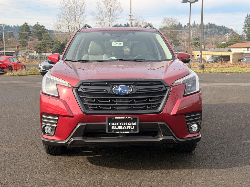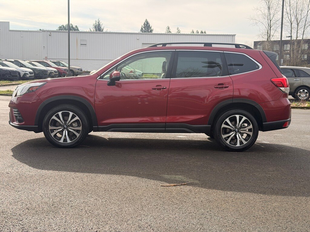 Recent Arrival! Odometer is 18463 miles below market average! CARFAX One-Owner. Certified. Subaru Certified Pre-Owned Certified, 3.70 Axle Ratio, 4-Wheel Disc Brakes, 6 Speakers, ABS brakes, Air Conditioning, Alloy wheels, AM/FM radio: SiriusXM, Anti-whiplash front head restraints, Auto High-beam Headlights, Automatic temperature control, Brake assist, Bumpers: body-color, Driver door bin, Driver vanity mirror, Dual front impact airbags, Dual front side impact airbags, Electronic Stability Control, Emergency communication system: STARLINK Safety and Security (Subscription Required), Exterior Parking Camera Rear, Four wheel independent suspension, Front anti-roll bar, Front Bucket Seats, Front Center Armrest, Front dual zone A/C, Front fog lights, Front reading lights, Fully automatic headlights, Heated door mirrors, Heated Front Bucket Seats, Heated front seats, Illuminated entry, Knee airbag, Leather Shift Knob, Leather steering wheel, Low tire pressure warning, Occupant sensing airbag, Outside temperature display, Overhead airbag, Overhead console, Panic alarm, Passenger door bin, Passenger vanity mirror, Perforated Leather-Trimmed Upholstery, Power door mirrors, Power driver seat, Power Liftgate, Power moonroof: Panoramic, Power steering, Power windows, Radio data system, Radio: Subaru STARLINK 8.0" Multimedia Plus System, Rear anti-roll bar, Rear seat center armrest, Rear window defroster, Rear window wiper, Remote keyless entry, Roof rack: rails only, Security system, Speed control, Speed-sensing steering, Split folding rear seat, Spoiler, STARLINK/Apple CarPlay/Android Auto, Steering wheel mounted audio controls, Tachometer, Telescoping steering wheel, Tilt steering wheel, Traction control, Trip computer, Turn signal indicator mirrors, Variably intermittent wipers, Wheels: 18" x 7.0 J Black Machine Finish Alloy. 2024 Subaru Forester Limited 4D Sport Utility 2.5L 4-Cylinder DOHC 16V Lineartronic CVT AWD Crimson Red Pearl Subaru Certified Pre-Owned Details: