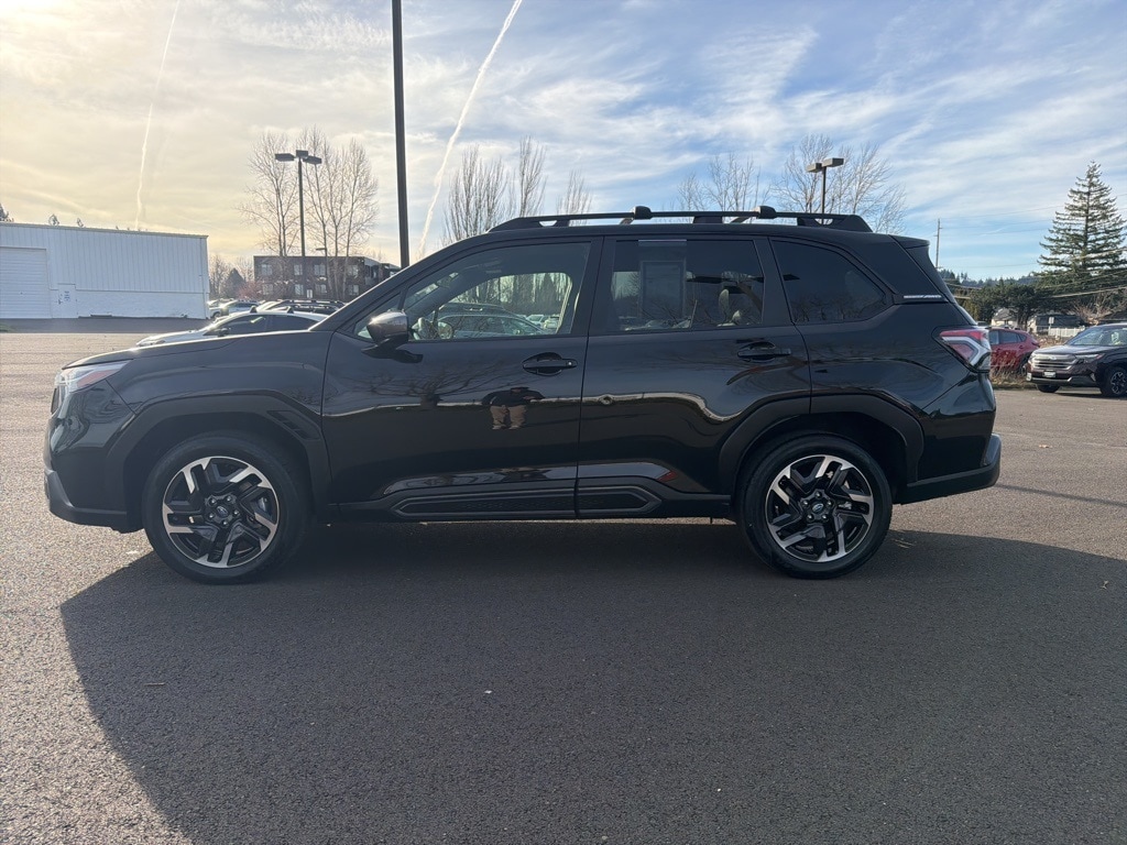 Priced below KBB Fair Purchase Price! CARFAX One-Owner. Certified. Subaru Certified Pre-Owned Certified, 4-Wheel Disc Brakes, 6 Speakers, ABS brakes, Air Conditioning, Alloy wheels, AM/FM radio: SiriusXM with 360L, Anti-whiplash front head restraints, Auto High-beam Headlights, Automatic temperature control, Brake assist, Bumpers: body-color, Driver door bin, Driver vanity mirror, Dual front impact airbags, Dual front side impact airbags, Electronic Stability Control, Emergency communication system: MySubaru Safety (3-year free trial), Exterior Parking Camera Rear, Four wheel independent suspension, Front anti-roll bar, Front Bucket Seats, Front Center Armrest, Front dual zone A/C, Front fog lights, Front reading lights, Fully automatic headlights, Heated door mirrors, Heated Front Bucket Seats, Heated front seats, Heated steering wheel, Illuminated entry, Knee airbag, Leather steering wheel, Low tire pressure warning, Occupant sensing airbag, Outside temperature display, Overhead airbag, Overhead console, Panic alarm, Passenger door bin, Passenger vanity mirror, Perforated Leather-Trimmed Upholstery, Power door mirrors, Power driver seat, Power Liftgate, Power moonroof: Panoramic, Power passenger seat, Power steering, Power windows, Radio data system, Radio: Subaru 11.6" Multimedia Plus System, Rear anti-roll bar, Rear seat center armrest, Rear window defroster, Rear window wiper, Remote keyless entry, Security system, Speed control, Speed-sensing steering, Split folding rear seat, Spoiler, Steering wheel mounted audio controls, Tachometer, Telescoping steering wheel, Tilt steering wheel, Traction control, Trip computer, Turn signal indicator mirrors, Variably intermittent wipers, Wheels: 18" x 7.0 J Dark Metallic Aluminum-Alloy. 2025 Subaru Forester Limited 4D Sport Utility 2.5L 4-Cylinder DOHC 16V Lineartronic CVT AWD Crystal Black Silica Subaru Certified Pre-Owned Details: