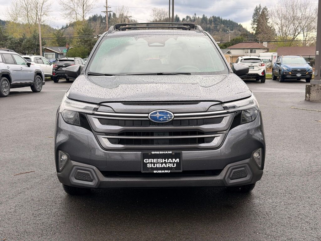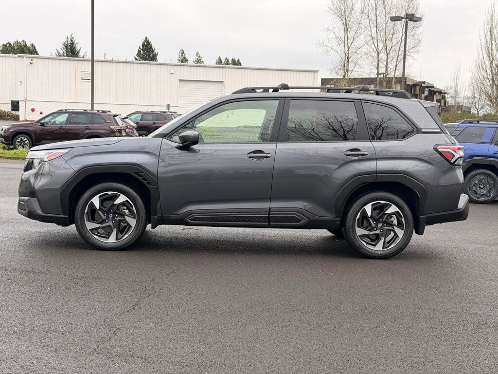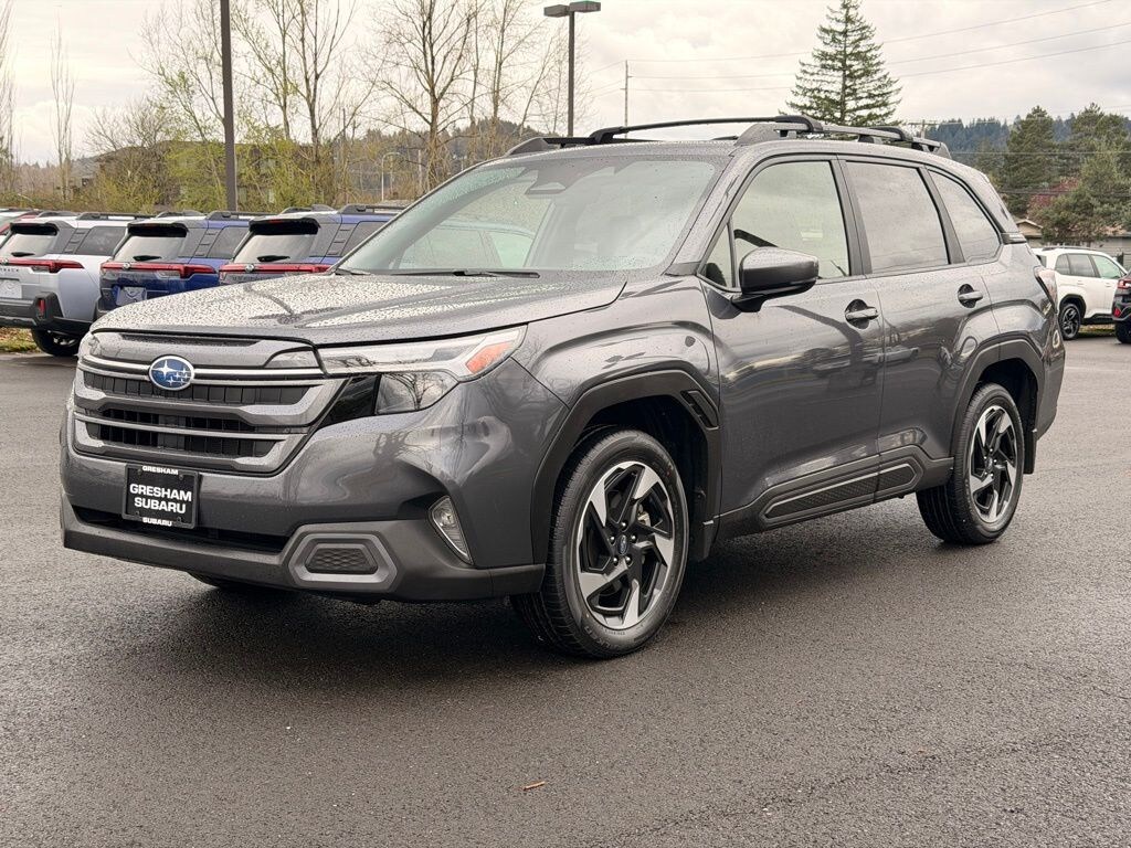 Subaru Certified Pre-Owned Certified, 4-Wheel Disc Brakes, 6 Speakers, ABS brakes, Air Conditioning, All-Weather Floor Liners, Alloy wheels, AM/FM radio: SiriusXM with 360L, Anti-whiplash front head restraints, Auto High-beam Headlights, Auto-Dimming Exterior Mirror w/Approach Light, Auto-Dimming Mirror w/Compass & HomeLink, Automatic temperature control, Brake assist, Bumpers: body-color, Cargo Tray, Crossbar Set - Aero, Driver door bin, Driver vanity mirror, Dual front impact airbags, Dual front side impact airbags, Electronic Stability Control, Emergency communication system: MySubaru Safety (3-year free trial), Exterior Parking Camera Rear, Four wheel independent suspension, Front anti-roll bar, Front Bucket Seats, Front Center Armrest, Front dual zone A/C, Front fog lights, Front reading lights, Fully automatic headlights, harman/kardon Audio & Navigation & RAB, Heated door mirrors, Heated Front Bucket Seats, Heated front seats, Heated steering wheel, Illuminated entry, Knee airbag, Leather steering wheel, LED Upgrade, Low tire pressure warning, Occupant sensing airbag, Outside temperature display, Overhead airbag, Overhead console, Panic alarm, Passenger door bin, Passenger vanity mirror, Perforated Leather-Trimmed Upholstery, Power door mirrors, Power driver seat, Power Liftgate, Power moonroof: Panoramic, Power passenger seat, Power steering, Power windows, Radio data system, Radio: Subaru 11.6" Multimedia Navigation System, Radio: Subaru 11.6" Multimedia Plus System, Rear anti-roll bar, Rear seat center armrest, Rear Seatback Protector, Rear window defroster, Rear window wiper, Remote keyless entry, Reverse Automatic Braking (RAB) System, Security system, Speed control, Speed-sensing steering, Splash Guards, Split folding rear seat, Spoiler, Steering wheel mounted audio controls, Tachometer, Telescoping steering wheel, Tilt steering wheel, Traction control, Trip computer, Turn signal indicator mirrors, Variably intermittent wipers, Wheels: 18" x 7.0 J Dark Metallic Aluminum-Alloy. 2025 Subaru Forester Limited 4D Sport Utility Lineartronic CVT 2.5L 4-Cylinder DOHC 16V AWD Magnetite Gray Metallic