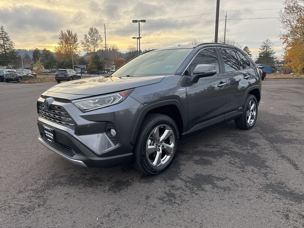 Recent Arrival! Odometer is 8127 miles below market average! 2.5L 4-Cylinder, Active Cruise Control, Apple CarPlay, Automatic temperature control, Heated 3-Spoke Leather Steering Wheel, Limited Grade Weather Package, Navigation System, Power Liftgate, Power moonroof, Power windows, Radio: Entune 3.0 Premium Audio w/Navigation, Rain Sensing Front Wipers, Rear Outboard Seat Heating, Speed control, 4-Wheel Disc Brakes, 6 Speakers, ABS brakes, Air Conditioning, Alloy wheels, AM/FM radio: SiriusXM, Auto High-beam Headlights, Auto-dimming Rear-View mirror, Axle Ratio: TBD, Brake assist, Bumpers: body-color, Delay-off headlights, Driver door bin, Driver vanity mirror, Dual front impact airbags, Dual front side impact airbags, Electronic Stability Control, Emergency communication system: Safety Connect, Four wheel independent suspension, Front anti-roll bar, Front Bucket Seats, Front Center Armrest, Front dual zone A/C, Front fog lights, Front reading lights, Fully automatic headlights, Garage door transmitter: HomeLink, Heated door mirrors, Heated Front Seats, Heated front seats, Illuminated entry, Knee airbag, Leather Shift Knob, Low tire pressure warning, Memory seat, Occupant sensing airbag, Outside temperature display, Overhead airbag, Overhead console, Panic alarm, Passenger door bin, Passenger vanity mirror, Power door mirrors, Power driver seat, Power steering, Radio data system, Rear anti-roll bar, Rear seat center armrest, Rear window defroster, Rear window wiper, Remote keyless entry, Roof rack: rails only, Security system, SofTex Seat Trim, Speed-sensing steering, Split folding rear seat, Spoiler, Steering wheel mounted audio controls, Telescoping steering wheel, Tilt steering wheel, Traction control, Trip computer, Turn signal indicator mirrors, Variably intermittent wipers, Wheels: 18" x 7.0J Chrome-Finished Aluminum Alloy, 2.5L 4-Cylinder, Active Cruise Control, Apple CarPlay, Automatic temperature control, Heated 3-Spoke Leather Steering Wheel, Limited Grade Weather Package, Navigation System, Power Liftgate, Power moonroof, Power windows, Radio: Entune 3.0 Premium Audio w/Navigation, Rain Sensing Front Wipers, Rear Outboard Seat Heating, Speed control. 2019 Toyota RAV4 Hybrid Limited 4D Sport Utility 2.5L 4-Cylinder eCVT AWD Magnetic Gray Metallic w/Black Roof Clean CARFAX.