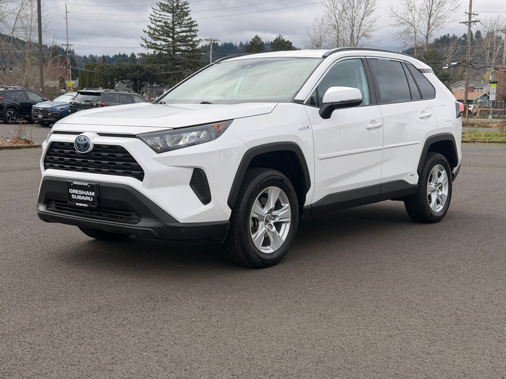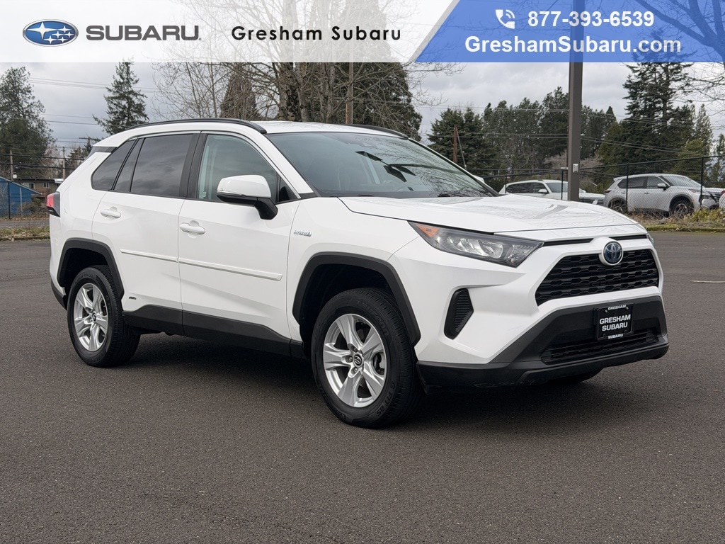 Recent Arrival! Odometer is 27949 miles below market average! ***4X4***, ***ACCIDENT-FREE CARFAX***, ***FULLY SERVICED***, 2.5L 4-Cylinder, 4-Wheel Disc Brakes, 6 Speakers, ABS brakes, Air Conditioning, Alloy wheels, AM/FM radio, Apple CarPlay, Auto High-beam Headlights, Automatic temperature control, Axle Ratio: TBD, Brake assist, Bumpers: body-color, Driver door bin, Driver vanity mirror, Dual front impact airbags, Dual front side impact airbags, Electronic Stability Control, Emergency communication system: Safety Connect, Exterior Parking Camera Rear, Fabric Seat Trim, Four wheel independent suspension, Front anti-roll bar, Front Bucket Seats, Front Center Armrest, Front dual zone A/C, Front reading lights, Front Sport Seats, Illuminated entry, Knee airbag, Low tire pressure warning, Occupant sensing airbag, Outside temperature display, Overhead airbag, Overhead console, Panic alarm, Passenger door bin, Passenger vanity mirror, Power door mirrors, Power steering, Power windows, Radio data system, Radio: Entune Audio w/App Suite, Rear anti-roll bar, Rear seat center armrest, Rear window defroster, Rear window wiper, Remote keyless entry, Roof rack: rails only, Speed control, Speed-sensing steering, Split folding rear seat, Spoiler, Steering wheel mounted audio controls, Telescoping steering wheel, Tilt steering wheel, Traction control, Trip computer, Wheels: 17" x 7.0J Silver Aluminum Alloy, 2.5L 4-Cylinder. 2019 Toyota RAV4 Hybrid LE 4D Sport Utility 2.5L 4-Cylinder eCVT AWD Super White Clean CARFAX.
