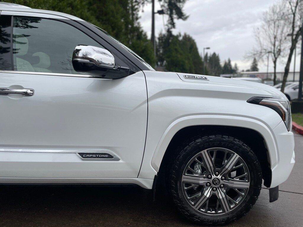 2023 Toyota Sequoia Capstone V6 Hybrid 14 Speakers, 3.31 Axle Ratio, 3rd row seats: split-bench, 4-Wheel Disc Brakes, ABS brakes, Air Conditioning, Alloy wheels, AM/FM radio: SiriusXM, Anti-whiplash front head restraints, Apple CarPlay/Android Auto, Auto High-beam Headlights, Auto tilt-away steering wheel, Auto-dimming door mirrors, Auto-dimming Rear-View mirror, Automatic Power Extending Running Boards, Automatic temperature control, Brake assist, Bumpers: body-color, Compass, Delay-off headlights, Driver door bin, Driver vanity mirror, Dual front impact airbags, Dual front side impact airbags, Electronic Stability Control, Emergency communication system: Safety Connect (10-year trial), Front anti-roll bar, Front Bucket Seats, Front Center Armrest w/Storage, Front dual zone A/C, Front fog lights, Front reading lights, Front wheel independent suspension, Fully automatic headlights, Garage door transmitter: HomeLink, Genuine wood door panel insert, Head Up Display (HUD), Headlight cleaning, Heads-Up Display, Heated & Ventilated Front Seats, Heated door mirrors, Heated front seats, Heated Power Auto-Dimming Outside Mirrors, Heated rear seats, Heated steering wheel, Illuminated entry, Knee airbag, Leather Shift Knob, Leather steering wheel, Low tire pressure warning, Memory seat, Navigation system: Drive Connect (1 year trial) includes Cloud Navigation with real time traffic and Google POI, Occupant sensing airbag, Outside temperature display, Overhead airbag, Overhead console, Panic alarm, Passenger door bin, Passenger vanity mirror, Power door mirrors, Power driver seat, Power Liftgate, Power moonroof, Power passenger seat, Power steering, Power windows, Premium audio system: JBL, Radio: JBL Premium Audio System, Rain sensing wipers, Rear air conditioning, Rear reading lights, Rear seat center armrest, Rear window defroster, Rear window wiper, Reclining 3rd row seat, Remote keyless entry, Security system, Semi-Aniline Leather Seat Trim, Speed control, Speed-sensing steering, Split folding rear seat, Spoiler, Sport steering wheel, Steering wheel mounted audio controls, Tachometer, Telescoping steering wheel, Tilt steering wheel, Traction control, Trip computer, Turn signal indicator mirrors, Variably intermittent wipers, Ventilated front seats, Ventilated rear seats, Voltmeter, Wheels: 22" Machined-Finish Alloy.