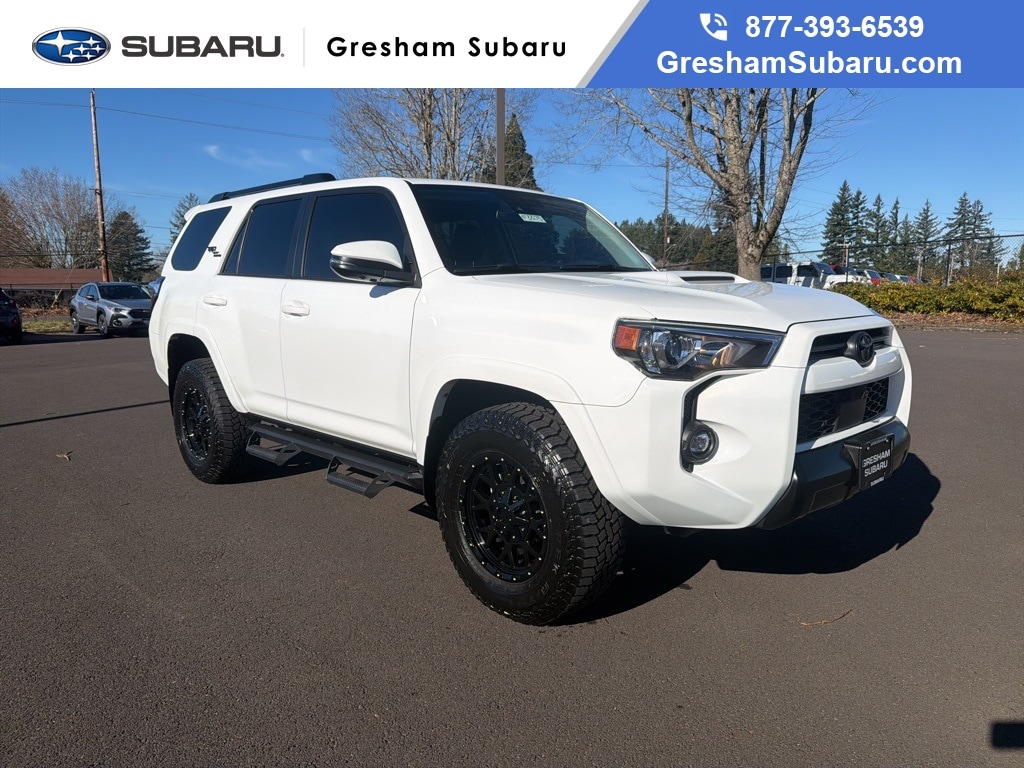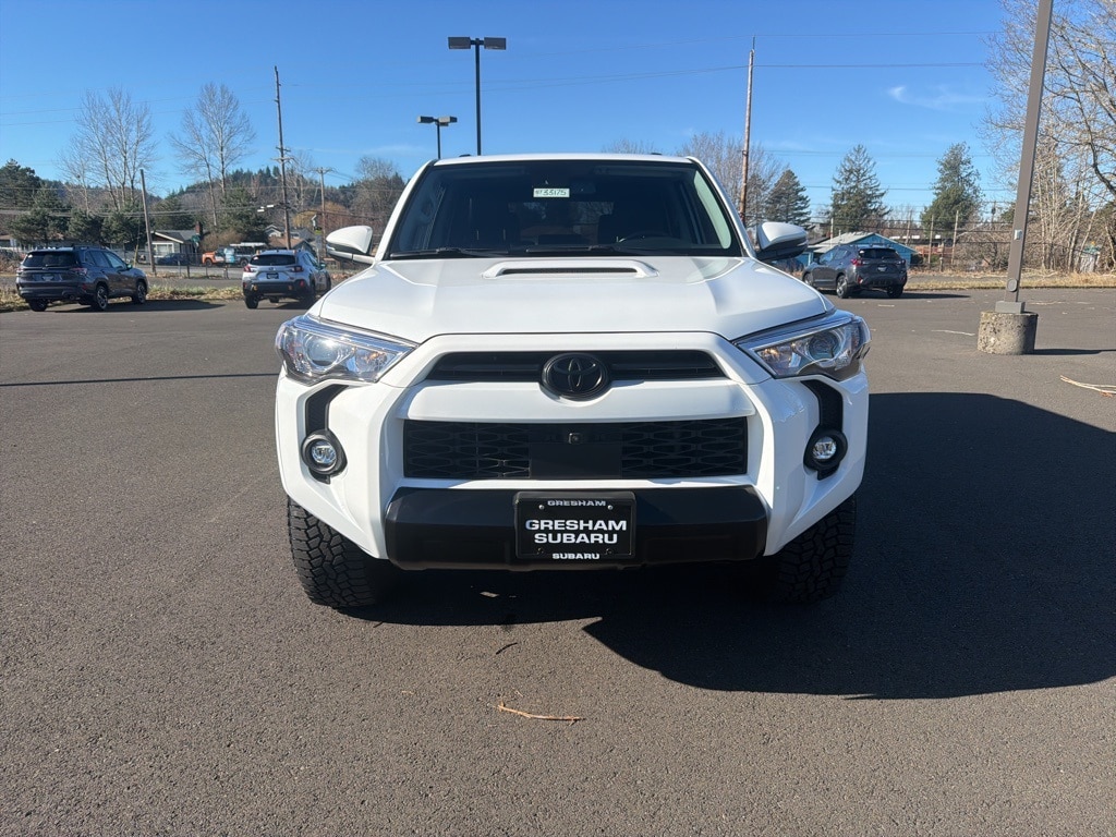 Recent Arrival! Odometer is 7574 miles below market average! CARFAX One-Owner! 4WD, Black/Graphite w/SofTex Seat Trim, Garage Door Opener, Moonroof Package, Moonroof w/Tilt Up & Slide, Off Road Premium Package, 4-Wheel Disc Brakes, 8 Speakers, ABS brakes, Air Conditioning, Alloy wheels, AM/FM radio: SiriusXM, Anti-whiplash front head restraints, Apple CarPlay/Android Auto, Auto High-beam Headlights, Auto-dimming Rear-View mirror, Black Roof Rails, Brake assist, Bumpers: body-color, Compass, Driver door bin, Driver vanity mirror, Dual front impact airbags, Dual front side impact airbags, Electronic Stability Control, Emergency communication system: Safety Connect (1-year trial), Exterior Parking Camera Rear, Front anti-roll bar, Front Bucket Seats, Front Center Armrest, Front fog lights, Front reading lights, Front wheel independent suspension, Garage door transmitter: HomeLink, Heated door mirrors, Heated Front Bucket Seats, Heated front seats, Heated Outside Rear-View Mirrors, Heated steering wheel, Illuminated entry, Knee airbag, Leather Shift Knob, Low tire pressure warning, Navigation System, Occupant sensing airbag, Outside temperature display, Overhead airbag, Overhead console, Panic alarm, Passenger door bin, Passenger vanity mirror, Power door mirrors, Power driver seat, Power passenger seat, Power steering, Power windows, Radio: Premium Audio, Rear anti-roll bar, Rear seat center armrest, Rear window defroster, Rear window wiper, Remote keyless entry, Security system, SofTex Seat Trim, Speed control, Speed-sensing steering, Split folding rear seat, Spoiler, Steering wheel mounted audio controls, Tachometer, Telescoping steering wheel, Tilt steering wheel, Traction control, Trip computer, Turn signal indicator mirrors, Variably intermittent wipers, Wheels: 17" Unique 7-Spoke Off-Road Alloy, 4WD, Black/Graphite w/SofTex Seat Trim, Garage Door Opener, Moonroof Package, Moonroof w/Tilt Up & Slide, Off Road Premium Package. 2024 Toyota 4Runner TRD Off-Road Premium 4D Sport Utility 4.0L V6 DOHC 24V 5-Speed with ECT 4WD Ice Cap