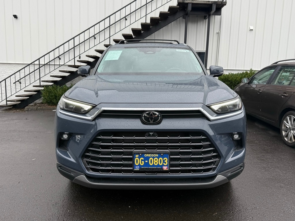 11 Speakers, 20" Aluminum Alloy Wheels, 3.33 Axle Ratio, 3rd row seats: split-bench, 4-Wheel Disc Brakes, ABS brakes, Air Conditioning, Alloy wheels, AM/FM radio: SiriusXM, Apple CarPlay/Android Auto, Auto High-beam Headlights, Auto-dimming Rear-View mirror, Automatic temperature control, Brake assist, Bumpers: body-color, Delay-off headlights, Driver door bin, Driver vanity mirror, Dual front impact airbags, Dual front side impact airbags, Electronic Stability Control, Emergency communication system: Safety Connect (up to 10-year trial subscription), Exterior Parking Camera Rear, Four wheel independent suspension, Front anti-roll bar, Front Bucket Seats, Front Center Armrest, Front dual zone A/C, Front fog lights, Front reading lights, Fully automatic headlights, Garage door transmitter: HomeLink, Heated & Ventilated Front Seats w/Memory, Heated door mirrors, Heated front seats, Heated rear seats, Heated steering wheel, Illuminated entry, Knee airbag, Leather Seat Trim, Leather Shift Knob, Leather steering wheel, Low tire pressure warning, Memory seat, Navigation system: Drive Connect Cloud Navigation (1-year trial subscription), Occupant sensing airbag, Outside temperature display, Overhead airbag, Overhead console, Panic alarm, Passenger door bin, Passenger vanity mirror, Power door mirrors, Power driver seat, Power Liftgate, Power passenger seat, Power steering, Power windows, Radio: 12.3" Toyota Audio Multimedia w/JBL Premium, Rain sensing wipers, Rear air conditioning, Rear anti-roll bar, Rear reading lights, Rear window defroster, Rear window wiper, Reclining 3rd row seat, Remote keyless entry, Security system, Speed control, Speed-sensing steering, Split folding rear seat, Spoiler, Steering wheel mounted audio controls, Tachometer, Telescoping steering wheel, Tilt steering wheel, Traction control, Trip computer, Turn signal indicator mirrors, Variably intermittent wipers, Ventilated front seats. 2024 Toyota Grand Highlander Limited 4D Sport Utility 2.4L 4-Cylinder 8-Speed Automatic AWD Storm Cloud