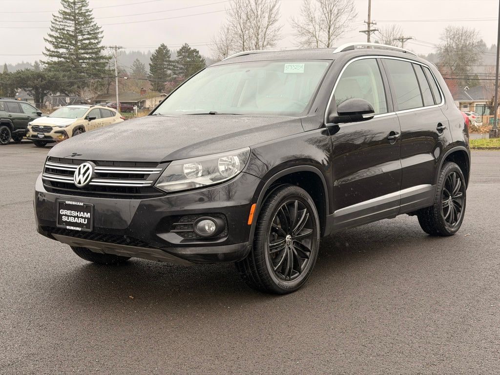 ***ALL WHEEL DRIVE (AWD)***, ***HEATED SEATS***, Sunroof/Moonroof, AWD, 3.45 Axle Ratio, 4-Wheel Disc Brakes, ABS brakes, Air Conditioning, Alloy wheels, Brake assist, Bumpers: body-color, CD player, Driver door bin, Driver vanity mirror, Dual front impact airbags, Dual front side impact airbags, Electronic Stability Control, Four wheel independent suspension, Front anti-roll bar, Front Bucket Seats, Front Center Armrest, Front reading lights, Heated door mirrors, Illuminated entry, Leather Shift Knob, Leather steering wheel, Low tire pressure warning, Occupant sensing airbag, Outside temperature display, Overhead airbag, Overhead console, Panic alarm, Passenger door bin, Passenger vanity mirror, Power door mirrors, Power steering, Power windows, Rear anti-roll bar, Rear reading lights, Rear seat center armrest, Rear window defroster, Rear window wiper, Remote keyless entry, Security system, Speed control, Speed-sensing steering, Split folding rear seat, Spoiler, Steering wheel mounted audio controls, Tachometer, Telescoping steering wheel, Tilt steering wheel, Traction control, Trip computer, Turn signal indicator mirrors, Variably intermittent wipers, AWD. 2014 Volkswagen Tiguan SEL 4Motion 4D Sport Utility 2.0L TSI 6-Speed Automatic with Tiptronic AWD Deep Black