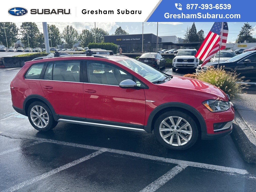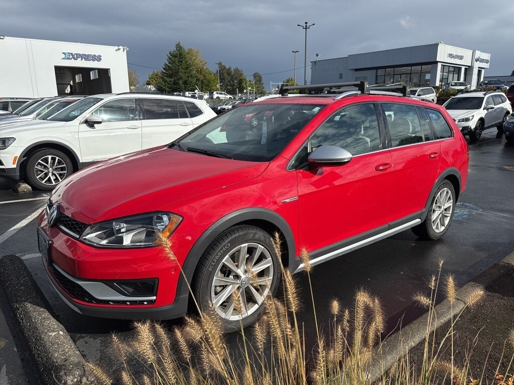 4-Wheel Disc Brakes, 8 Speakers, ABS brakes, Air Conditioning, Alloy wheels, AM/FM radio: SiriusXM, Anti-whiplash front head restraints, Brake assist, Bumpers: body-color, CD player, Compass, Driver door bin, Driver vanity mirror, Dual front impact airbags, Dual front side impact airbags, Electronic Stability Control, Emergency communication system: VW Car-Net, Exterior Parking Camera Rear, Four wheel independent suspension, Front anti-roll bar, Front Bucket Seats, Front Center Armrest, Front fog lights, Front reading lights, Heated door mirrors, Heated Front Comfort Seats, Heated front seats, Illuminated entry, Leather Shift Knob, Leatherette Seating Surfaces, Low tire pressure warning, Occupant sensing airbag, Outside temperature display, Overhead airbag, Overhead console, Panic alarm, Passenger door bin, Passenger vanity mirror, Power door mirrors, Power driver seat, Power passenger seat, Power steering, Power windows, Radio data system, Radio: Composition Media w/6.5" Touchscreen, Rear anti-roll bar, Rear reading lights, Rear seat center armrest, Rear window defroster, Rear window wiper, Remote keyless entry, Roof rack: rails only, Security system, Speed control, Speed-sensing steering, Split folding rear seat, Spoiler, Steering wheel mounted audio controls, Tachometer, Telescoping steering wheel, Tilt steering wheel, Traction control, Trip computer, Turn signal indicator mirrors, Variably intermittent wipers, Wheels: 17" Valley Alloy, Adaptive Cruise Control, Forward Collision Warning, Park Distance Control (Park Pilot) Front & Rear, S & SE Driver Assistant Package. 2017 Volkswagen Golf Alltrack TSI S 4Motion 4D Wagon 1.8L I4 Turbocharged DOHC 16V SULEV II 170hp 6-Speed DSG Automatic with Tiptronic AWD Red