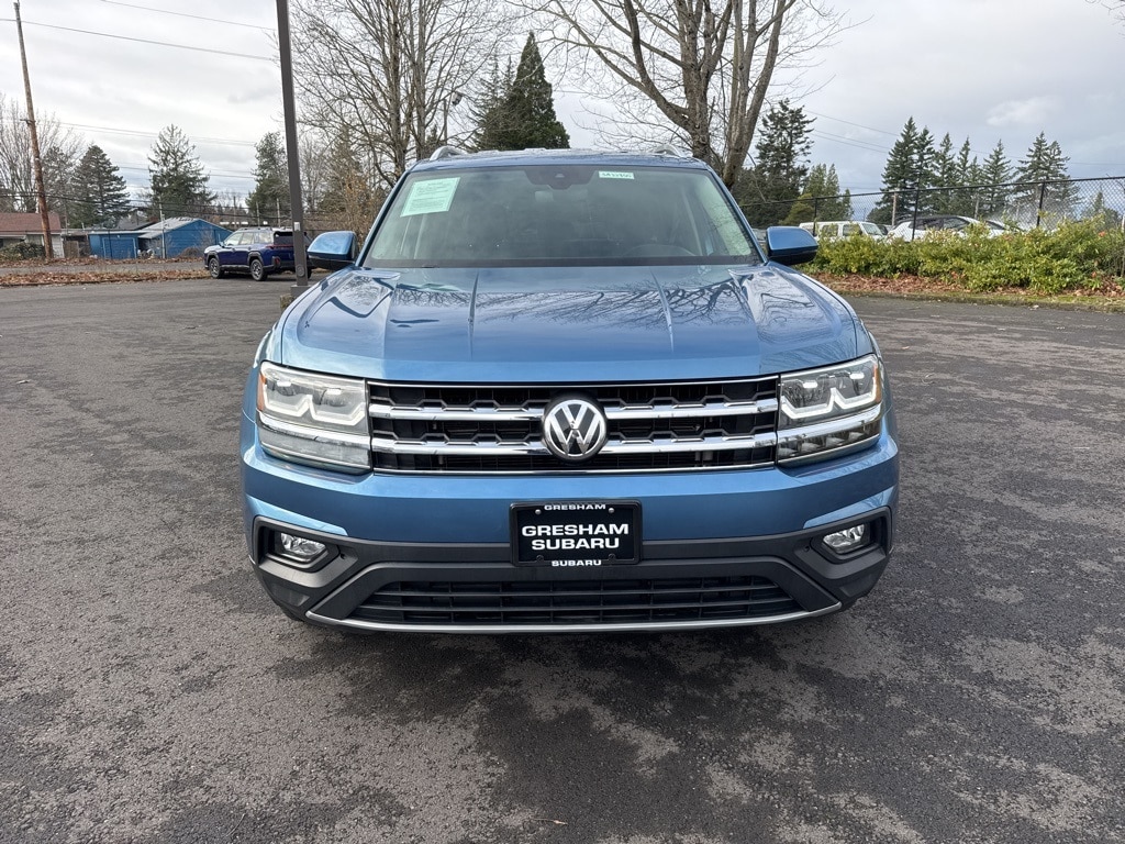 Priced below KBB Fair Purchase Price! Odometer is 9712 miles below market average! 18" 5-Spoke Wheels, 3.60 Axle Ratio, 3rd row seats: split-bench, 4-Wheel Disc Brakes, 8 Speakers, ABS brakes, Active Blind Spot Monitor, Air Conditioning, Alloy wheels, AM/FM radio: SiriusXM, Auto-dimming Rear-View mirror, Automatic temperature control, Brake assist, Bumpers: body-color, Compass, Delay-off headlights, Driver door bin, Driver vanity mirror, Dual front impact airbags, Dual front side impact airbags, Electronic Stability Control, Emergency communication system: VW Car-Net services (capabilities require enrollment or subscription), Exterior Parking Camera Rear, Forward collision: FCW w/Autonomous Emergency Braking mitigation, Four wheel independent suspension, Front anti-roll bar, Front Bucket Seats, Front Center Armrest, Front dual zone A/C, Front fog lights, Front reading lights, Heated Comfort Front Bucket Seats, Heated door mirrors, Heated front seats, Illuminated entry, Low tire pressure warning, Occupant sensing airbag, Outside temperature display, Overhead airbag, Overhead console, Panic alarm, Passenger door bin, Passenger vanity mirror, Power door mirrors, Power driver seat, Power Liftgate, Power steering, Power windows, Radio data system, Radio: Composition Media 8.0" Touchscreen, Rain sensing wipers, Rear air conditioning, Rear anti-roll bar, Rear reading lights, Rear seat center armrest, Rear window defroster, Rear window wiper, Remote CD player, Remote keyless entry, Roof rack: rails only, Security system, Speed control, Speed-sensing steering, Split folding rear seat, Spoiler, Standard Suspension, Steering wheel mounted audio controls, Tachometer, Telescoping steering wheel, Tilt steering wheel, Traction control, Trip computer, Turn signal indicator mirrors, V-Tex Leatherette Seating Surfaces, Variably intermittent wipers. 2019 Volkswagen Atlas 3.6L V6 SE w/Technology 4D Sport Utility 3.6L VR6 8-Speed Automatic with Tiptronic AWD Pacific Blue Metallic