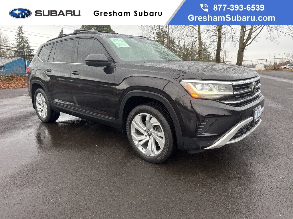 Odometer is 36893 miles below market average! 2nd-Row Dual Captain's Chairs, 3.60 Axle Ratio, 3rd row seats: split-bench, 4-Wheel Disc Brakes, 6 Speakers, ABS brakes, Air Conditioning, Alloy wheels, Auto-dimming Rear-View mirror, Automatic temperature control, Base Carrier Bars Roof Rack (Set of 2), Brake assist, Bumpers: body-color, Compass, Delay-off headlights, Driver door bin, Driver vanity mirror, Dual front impact airbags, Dual front side impact airbags, Electronic Stability Control, Emergency communication system: VW Car-Net services (capabilities require enrollment or subscription), Exterior Parking Camera Rear, Forward collision: FCW w/Autonomous Emergency Braking mitigation, Four wheel independent suspension, Front anti-roll bar, Front Bucket Seats, Front Center Armrest, Front dual zone A/C, Front fog lights, Front reading lights, Fully automatic headlights, Heated Comfort Front Bucket Seats, Heated door mirrors, Heated front seats, Heavy Duty Trunk Liner w/VW CarGo Blocks, Illuminated entry, Leather Shift Knob, Low tire pressure warning, Occupant sensing airbag, Outside temperature display, Overhead airbag, Overhead console, Panic alarm, Panoramic Sunroof, Panoramic Sunroof Package, Passenger door bin, Passenger vanity mirror, Perforated V-Tex Leatherette Seating Surfaces, Power door mirrors, Power driver seat, Power Liftgate, Power steering, Power windows, Privacy Cover, Radio data system, Rain sensing wipers, Rear air conditioning, Rear anti-roll bar, Rear reading lights, Rear seat center armrest, Rear window defroster, Rear window wiper, Remote keyless entry, Roadside Assistance Kit, Roof rack: rails only, Rubber Mats Kit - Captain's Chairs, Security system, Speed control, Speed-sensing steering, Split folding rear seat, Spoiler, Standard Suspension, Steering wheel mounted audio controls, Tachometer, Telescoping steering wheel, Tilt steering wheel, Towing Package, Traction control, Trip computer, Turn signal indicator mirrors, Variably intermittent wipers, Wheels: 20" 5-Spoke Silver Alloy. 2021 Volkswagen Atlas 3.6L V6 SE w/Technology 4D Sport Utility 3.6L VR6 8-Speed Automatic with Tiptronic AWD Deep Black Clean CARFAX.