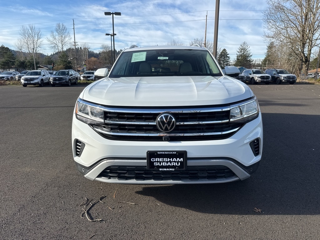 CARFAX One-Owner. 12 Speakers, 3.60 Axle Ratio, 3rd row seats: split-bench, 4-Wheel Disc Brakes, ABS brakes, Active Blind Spot Monitor, Active Cruise Control, Air Conditioning, Alloy wheels, AM/FM radio: SiriusXM with 360L, Auto High-beam Headlights, Auto-dimming Rear-View mirror, Automatic temperature control, Brake assist, Bumpers: body-color, Compass, Delay-off headlights, Driver door bin, Driver vanity mirror, Dual front impact airbags, Dual front side impact airbags, Electronic Stability Control, Emergency communication system: VW Car-Net services (capabilities require enrollment or subscription), First Aid Kit, Four wheel independent suspension, Frameless Self-Dimming Rearview Mirror, Front anti-roll bar, Front Bucket Seats, Front Center Armrest, Front dual zone A/C, Front fog lights, Front reading lights, Fully automatic headlights, Heated door mirrors, Heated front seats, Heated rear seats, Heated steering wheel, Heavy Duty Trunk Liner w/VW CarGo Blocks, Htd/Actively Ventilated Comfort Front Sport Seats, Illuminated entry, Leather Shift Knob, Low tire pressure warning, Luggage Net, Memory seat, Navigation System, Occupant sensing airbag, Outside temperature display, Overhead airbag, Overhead console, Panic alarm, Passenger door bin, Passenger vanity mirror, Perforated Vienna Leather Seating Surfaces, Power door mirrors, Power driver seat, Power Liftgate, Power moonroof, Power passenger seat, Power steering, Power windows, Privacy Cover, Radio data system, Radio: MIB3 Discover Media w/8" Touchscreen Navigation, Rain sensing wipers, Rear air conditioning, Rear anti-roll bar, Rear audio controls, Rear Bumper Applique in Chrome, Rear reading lights, Rear seat center armrest, Rear window defroster, Rear window wiper, Remote keyless entry, Roadside Assistance Kit, Roof rack: rails only, Rubber Mats Kit - Bench Seat, Security system, Speed control, Speed-sensing steering, Split folding rear seat, Spoiler, Standard Suspension, Steering wheel mounted audio controls, Tachometer, Telescoping steering wheel, Tilt steering wheel, Traction control, Trip computer, Turn signal indicator mirrors, Variably intermittent wipers, Ventilated front seats, Wheels: 20" 5-Spoke 2-Tone Machined Alloy. 2021 Volkswagen Atlas SEL Premium 4D Sport Utility 3.6L V6 8-Speed Automatic with Tiptronic AWD Pure White