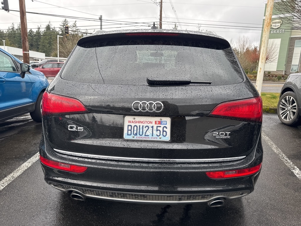 2017 Audi Q5 2.0T Premium Plus quattro 4D Sport Utility 2.0L 4-Cylinder TFSI 8-Speed Automatic with Tiptronic quattro Brilliant Black 10 Speakers, 2.84 Axle Ratio, 4-Wheel Disc Brakes, ABS brakes, Air Conditioning, Alloy wheels, AM/FM radio, Automatic temperature control, Brake assist, Bumpers: body-color, CD player, Delay-off headlights, Driver door bin, Driver vanity mirror, Dual front impact airbags, Dual front side impact airbags, Electronic Stability Control, Four wheel independent suspension, Front anti-roll bar, Front Bucket Seats, Front Center Armrest, Front dual zone A/C, Front fog lights, Front reading lights, Garage door transmitter: HomeLink, Genuine wood console insert, Genuine wood dashboard insert, Genuine wood door panel insert, Heated door mirrors, High intensity discharge headlights: Xenon plus, Illuminated entry, Leather Seating Surfaces, Leather Shift Knob, Leather steering wheel, Low tire pressure warning, Occupant sensing airbag, Outside temperature display, Overhead airbag, Overhead console, Panic alarm, Passenger door bin, Passenger vanity mirror, Power door mirrors, Power driver seat, Power Front Bucket Seats, Power Liftgate, Power moonroof, Power passenger seat, Power steering, Power windows, Radio data system, Radio: MMI Plus System w/6.5" Color Screen, Rain sensing wipers, Rear air conditioning, Rear anti-roll bar, Rear fog lights, Rear reading lights, Rear seat center armrest, Rear window defroster, Rear window wiper, Remote keyless entry, Roof rack, Security system, Speed control, Speed-sensing steering, Speed-Sensitive Wipers, Split folding rear seat, Spoiler, Steering wheel mounted audio controls, Tachometer, Telescoping steering wheel, Tilt steering wheel, Traction control, Trip computer, Turn signal indicator mirrors, Variably intermittent wipers, Wheels: 8.0" x 18" 5-V-Spoke-Design.